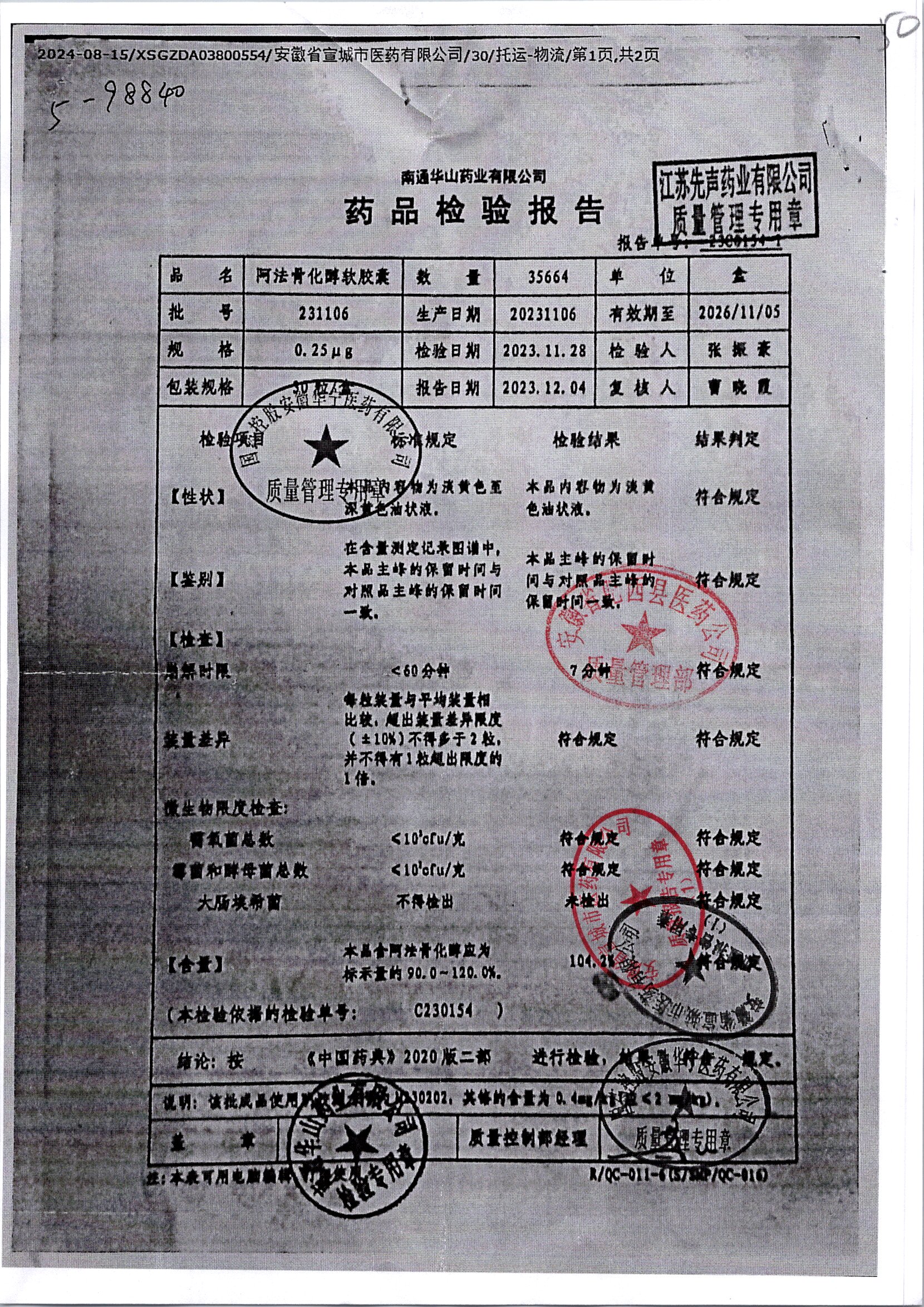 阿法骨化醇软胶囊 | 0.25ug*20粒 | 231106 | 查看详情 |