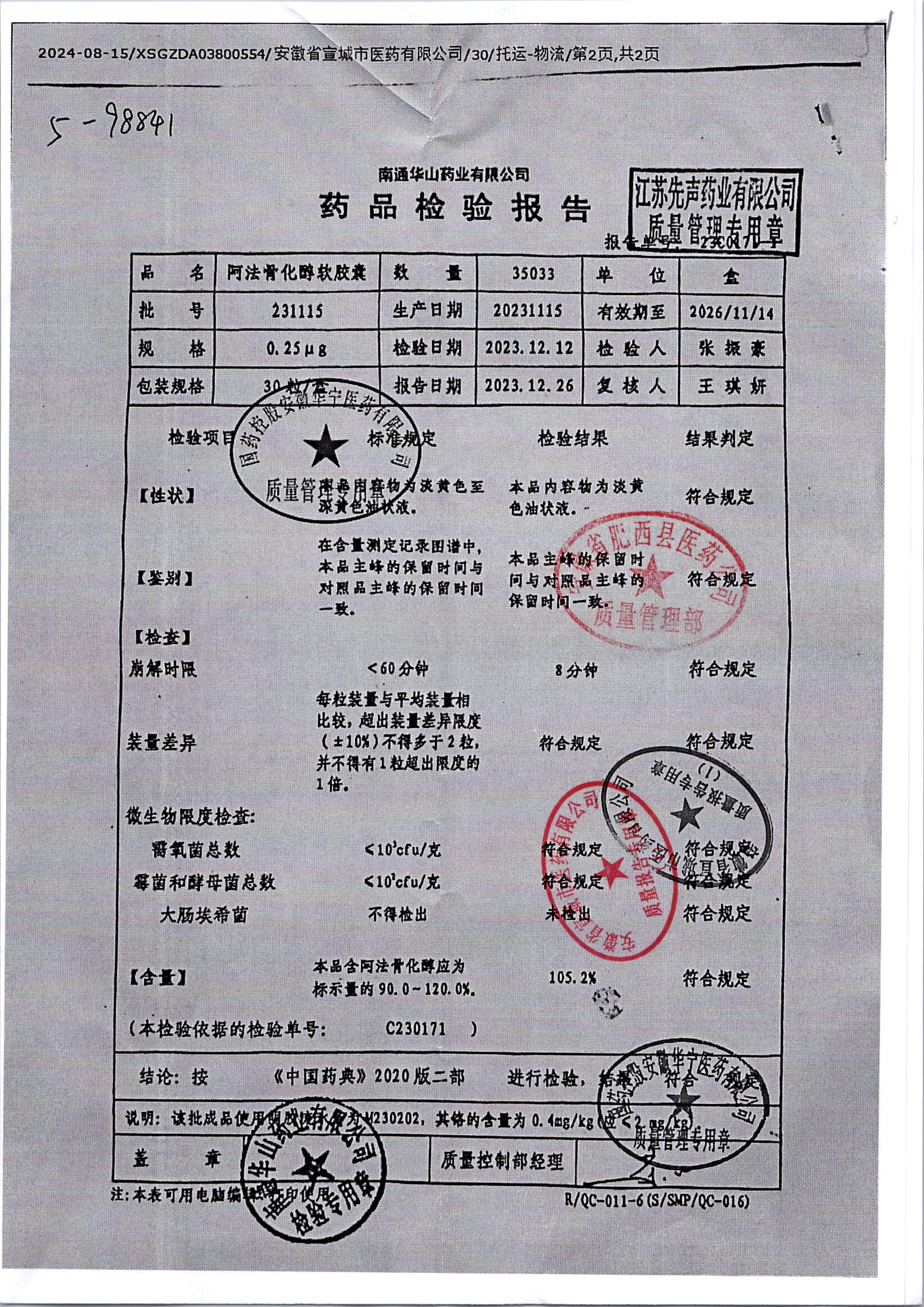 阿法骨化醇软胶囊 | 0.25ug*20粒 | 231115 | 查看详情 |