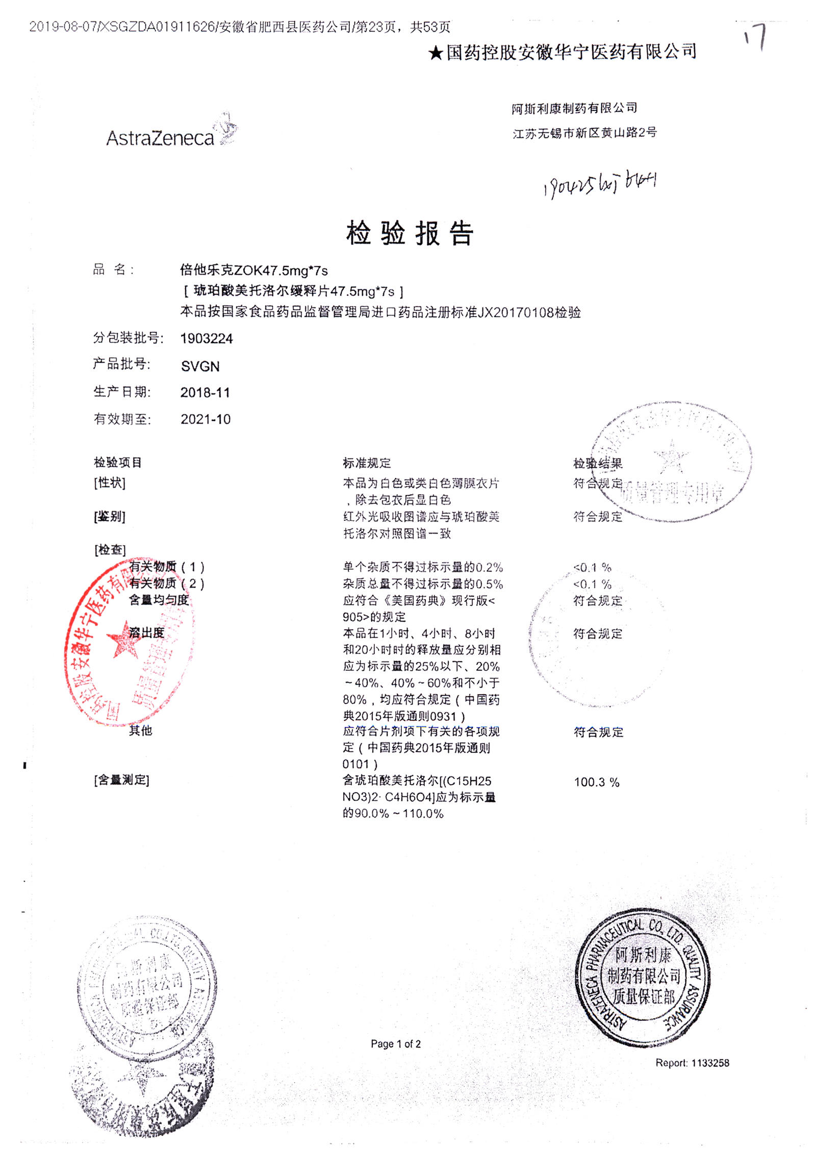 琥珀酸美托洛尔缓释片 | 47.5mg*7s | SXWP/2 | 查看详情 |