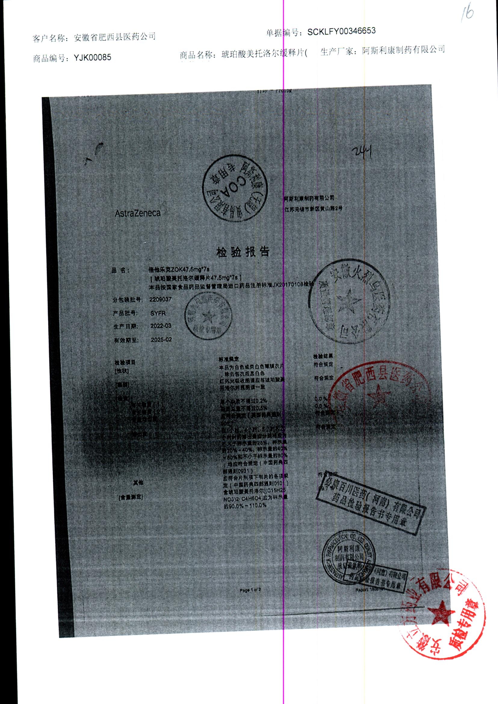 琥珀酸美托洛尔缓释片 | 47.5mg*7s | SYFR/2 | 查看详情 |