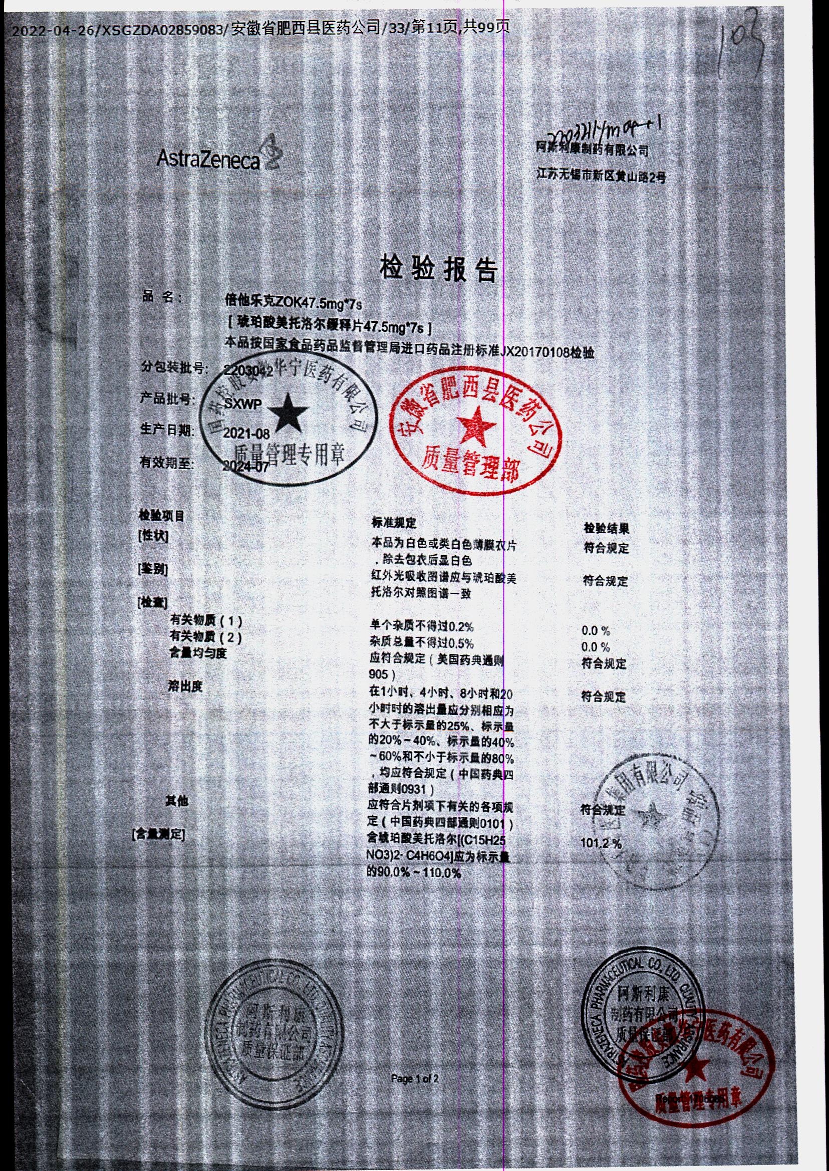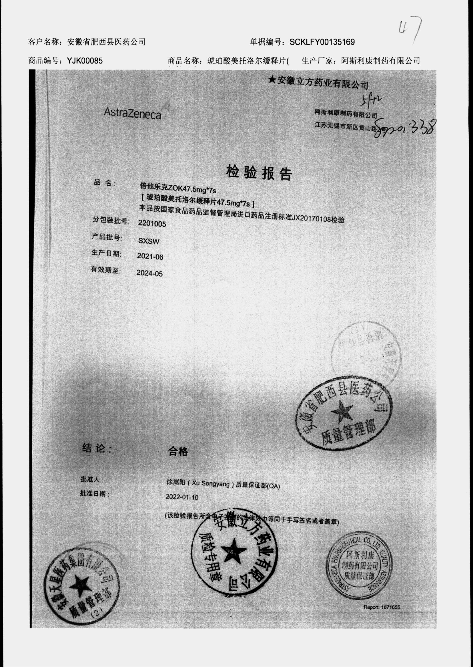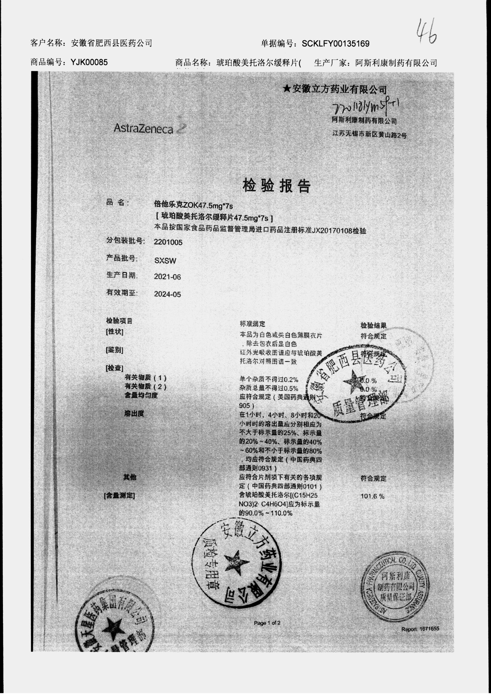 琥珀酸美托洛尔缓释片 | 47.5mg*7s | SXXP/2 | 查看详情 |