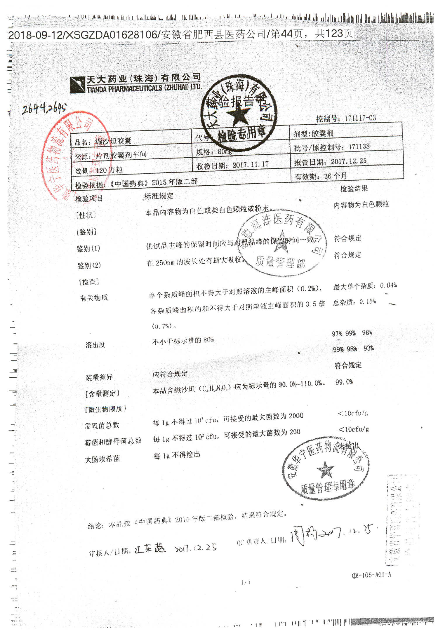 缬沙坦胶囊 | 80mg | 171138(2/3) | 查看详情 |