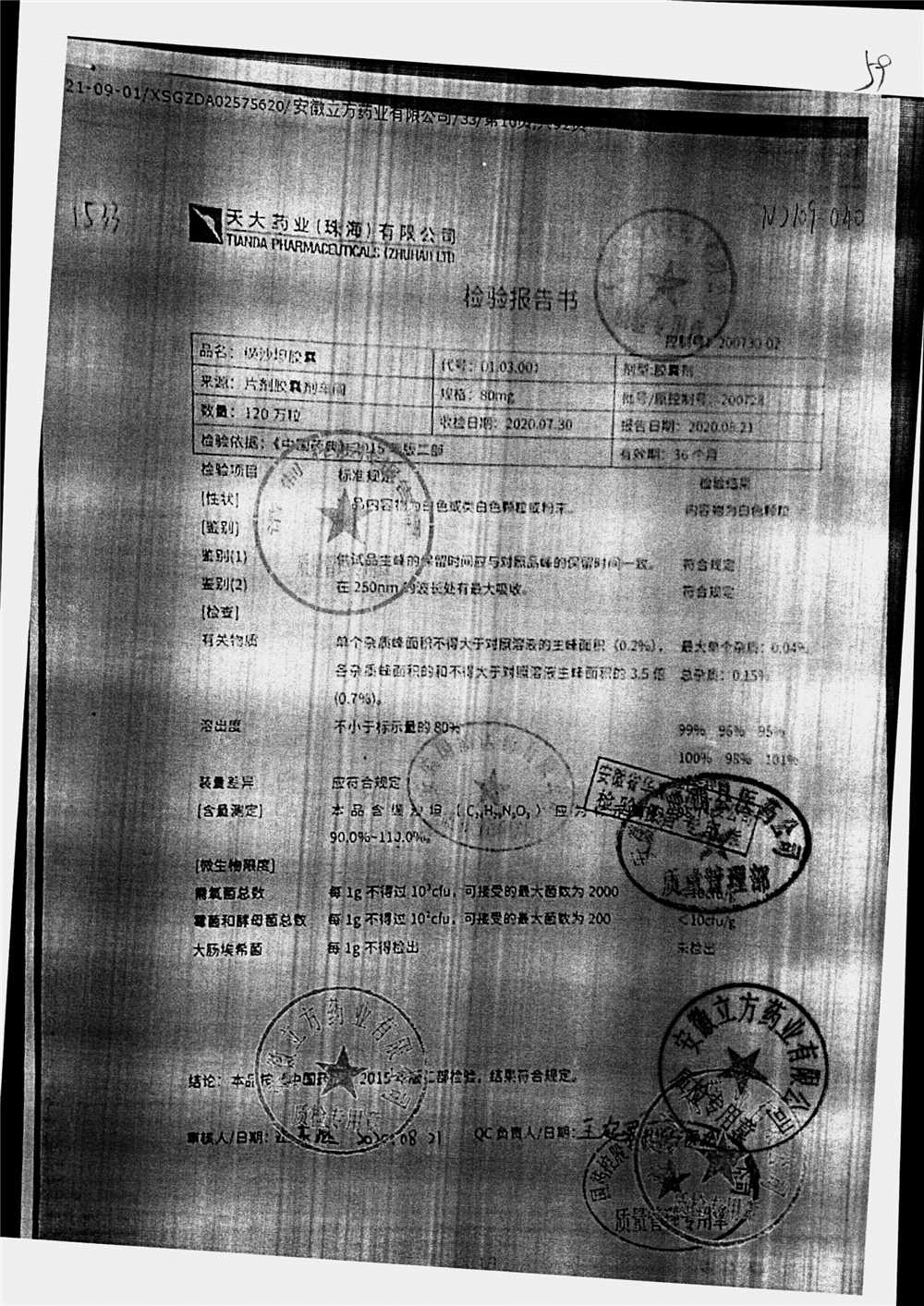 缬沙坦胶囊 | 80mg | 200728(2/3) | 查看详情 |