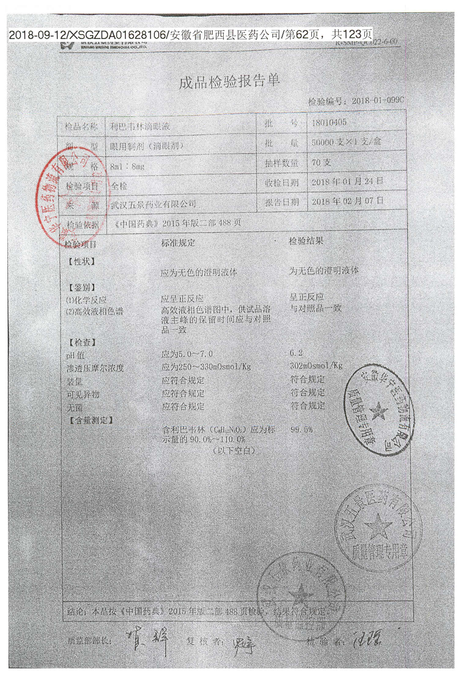 利巴韦林滴眼液 | 8ml:8mg | 18080401 | 查看详情 |