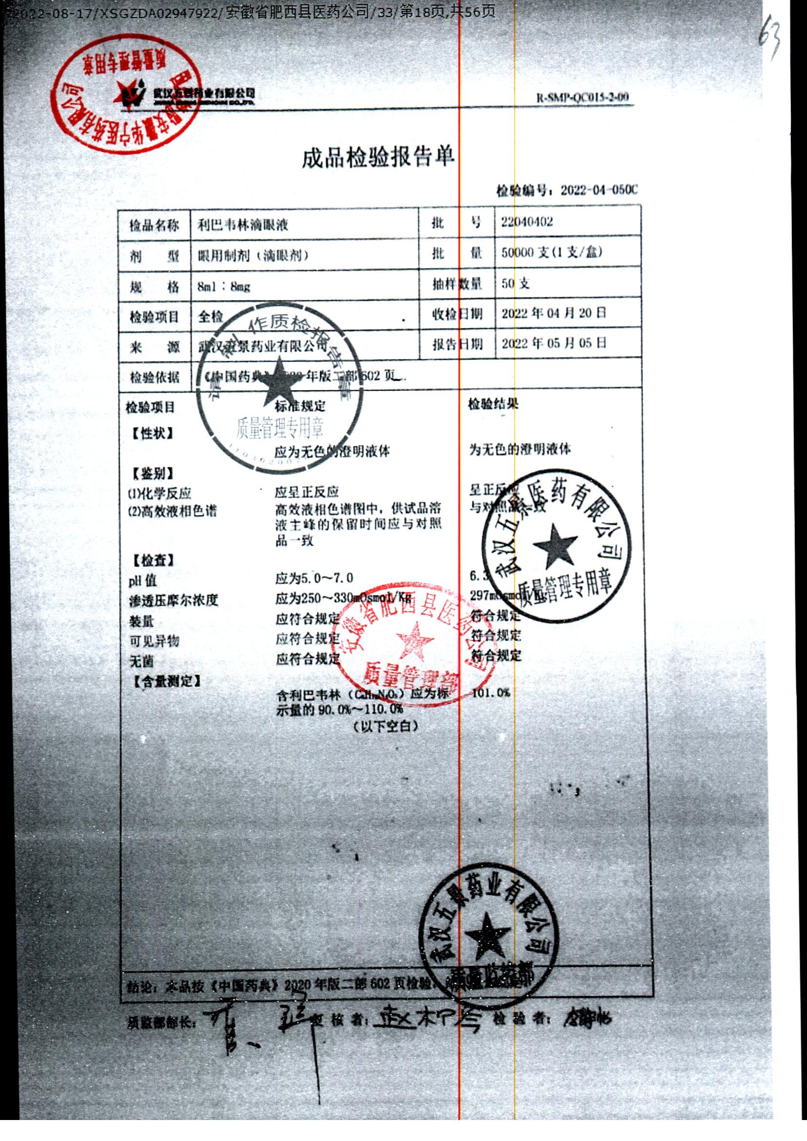 利巴韦林滴眼液 | 8ml:8mg | 22040402 | 查看详情 |