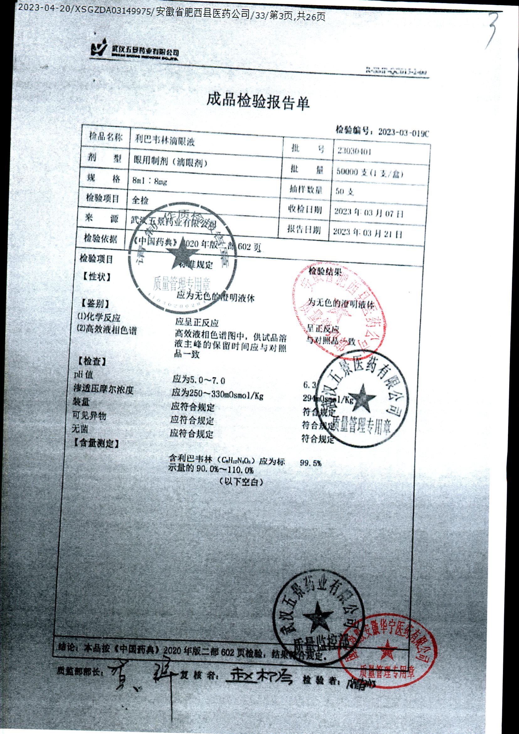 利巴韦林滴眼液 | 8ml:8mg | 23030401 | 查看详情 |