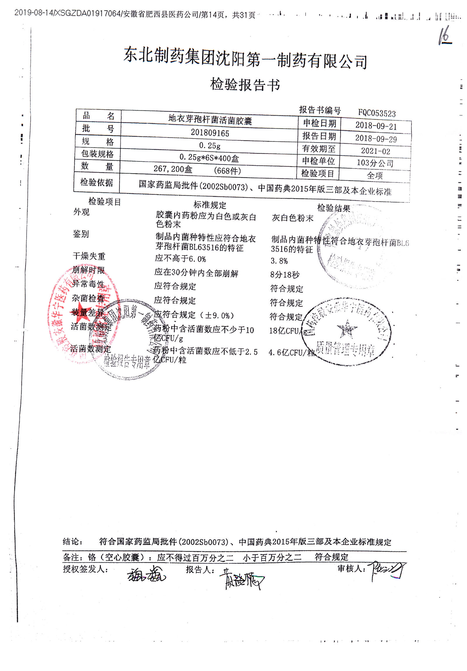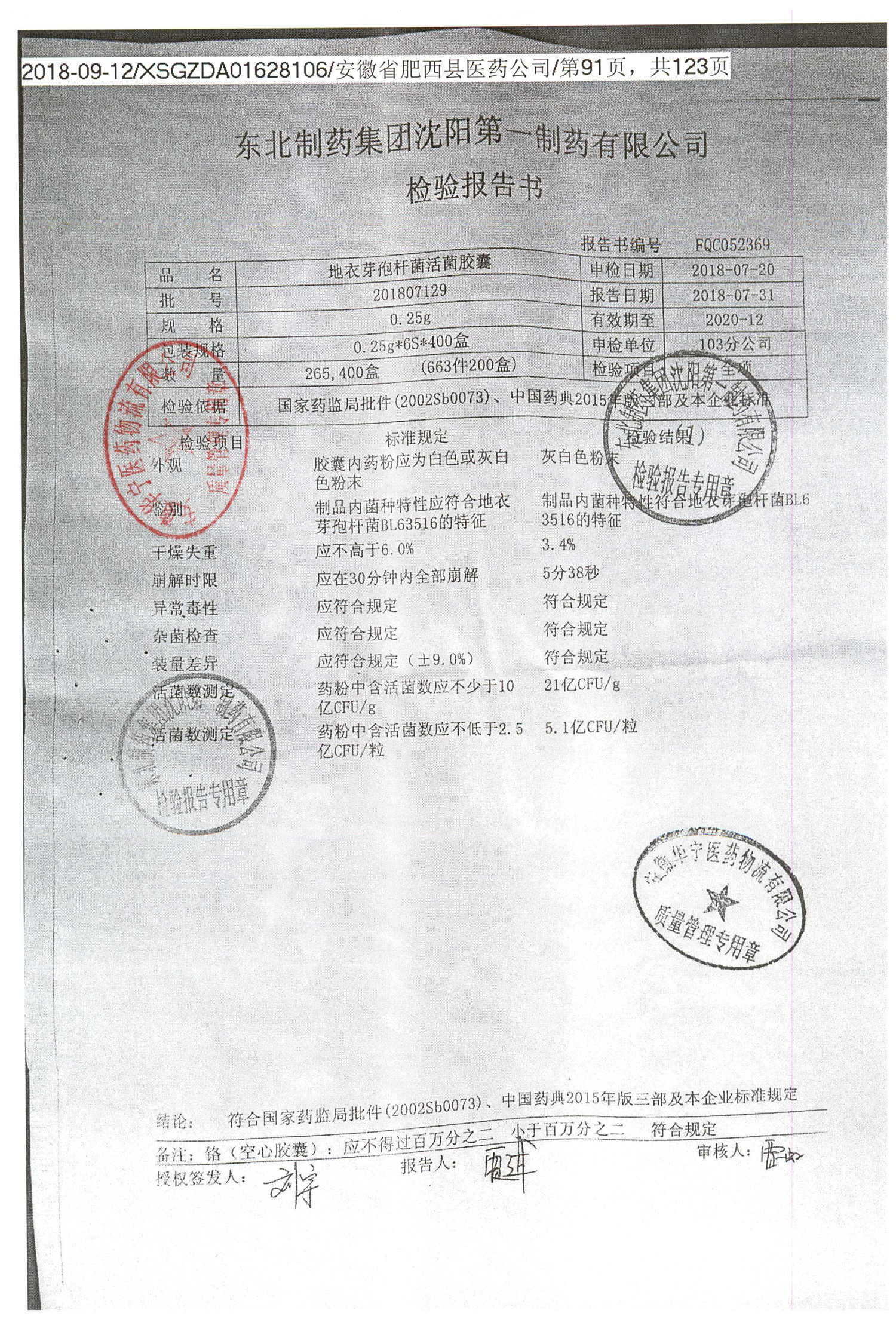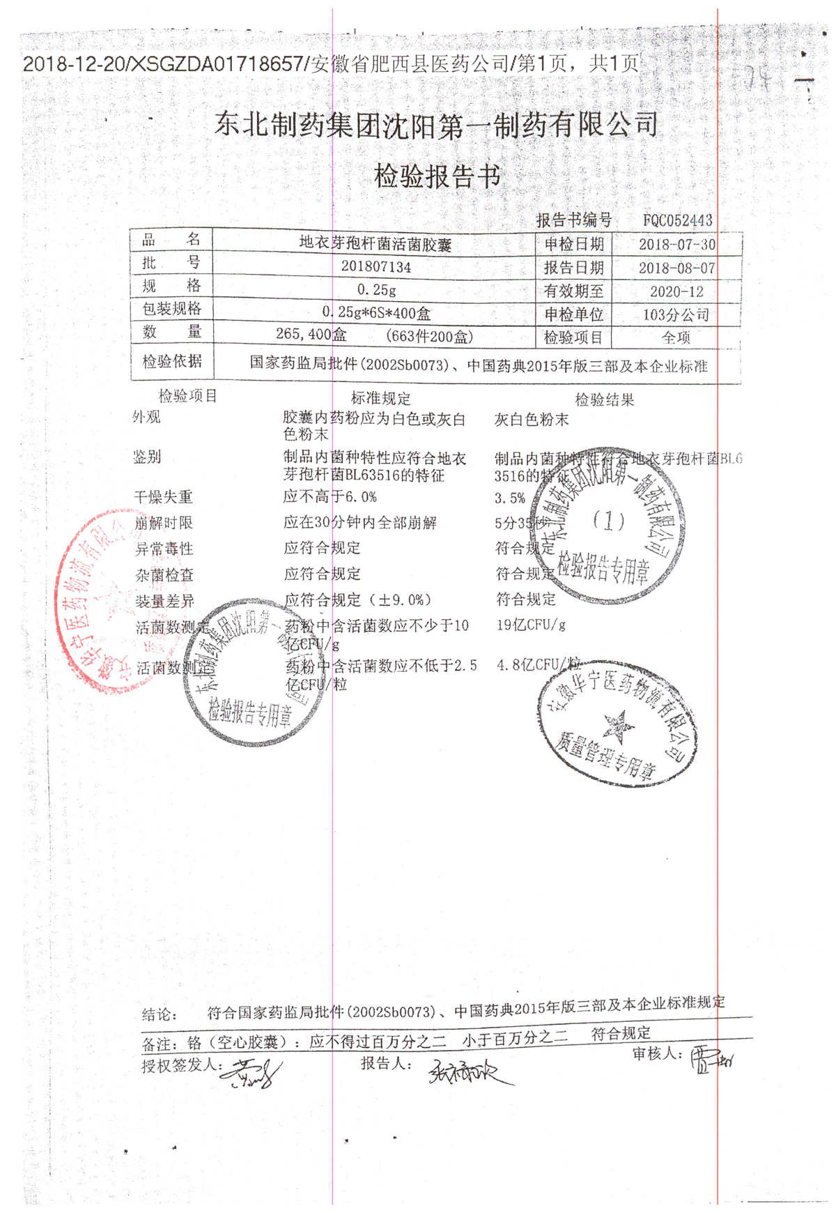 地衣芽孢杆菌活菌胶囊 | 0.25g*6s | 201807129 | 查看详情 |