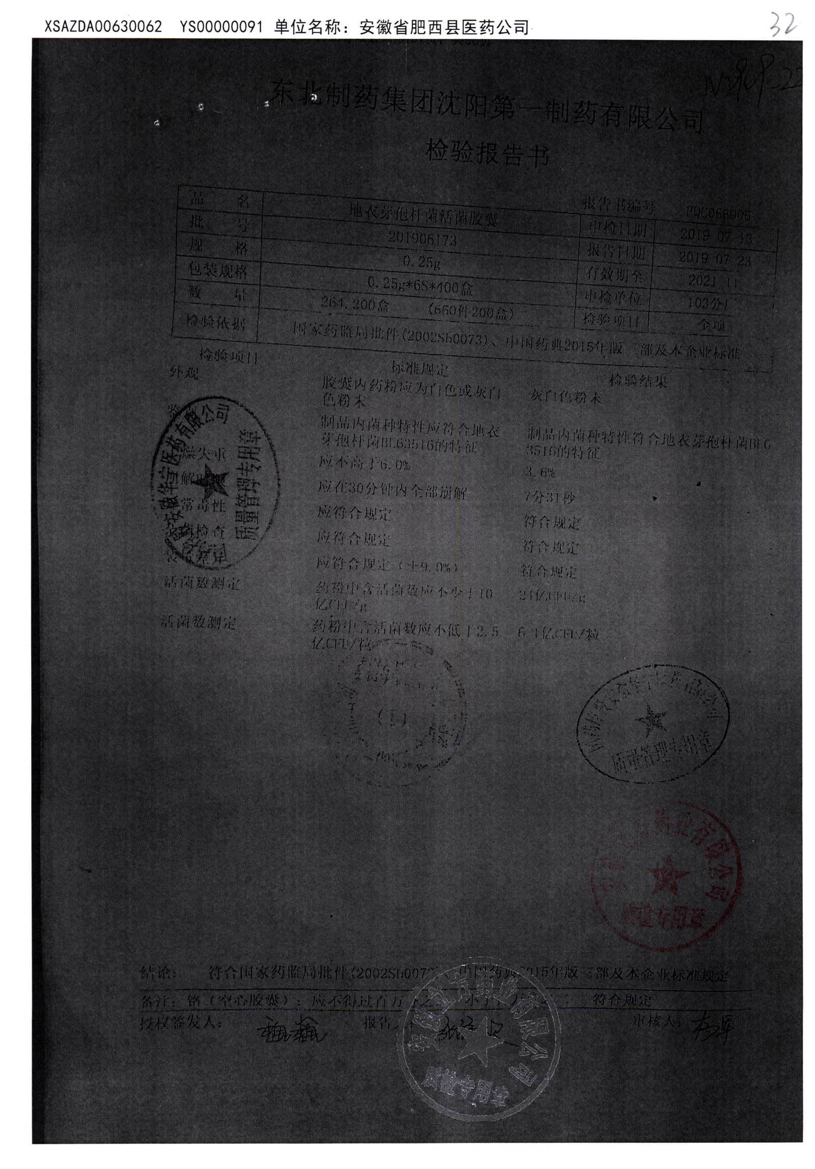 地衣芽孢杆菌活菌胶囊 | 0.25g*6s | 201910222 | 查看详情 |