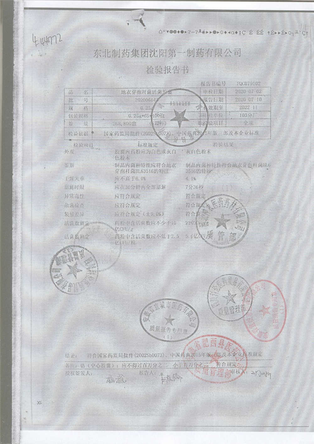 地衣芽孢杆菌活菌胶囊 | 0.25g*6s | 202107162 | 查看详情 |