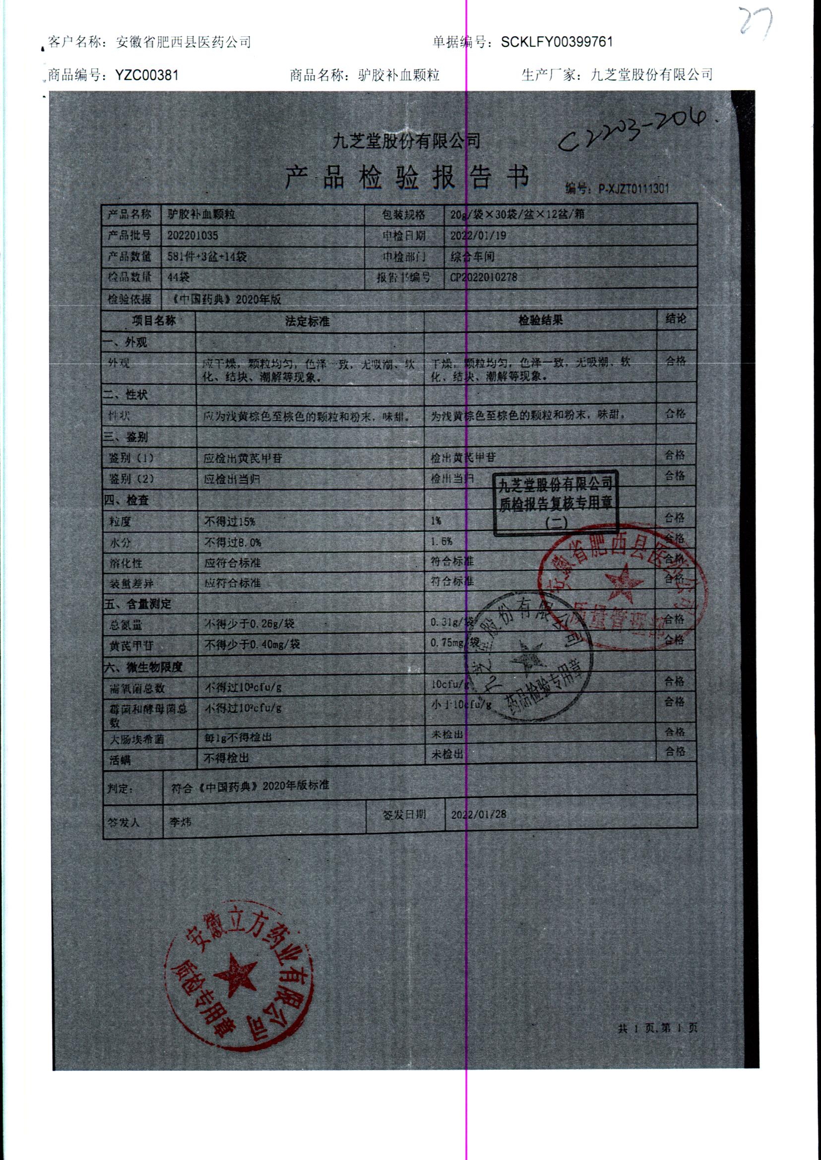 驴胶补血颗粒 | 20g*30袋 | 202204008 | 查看详情 |