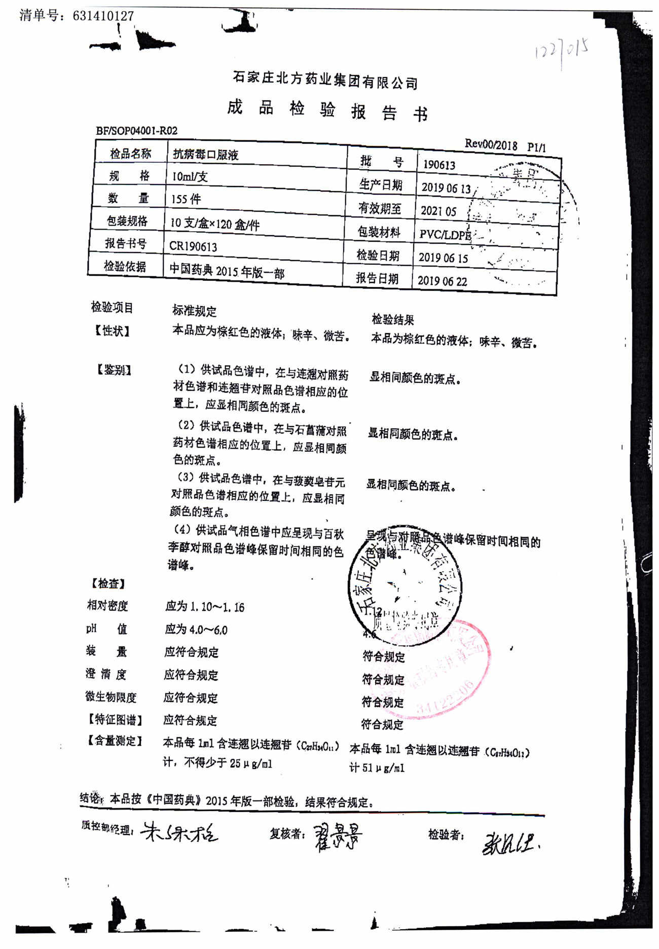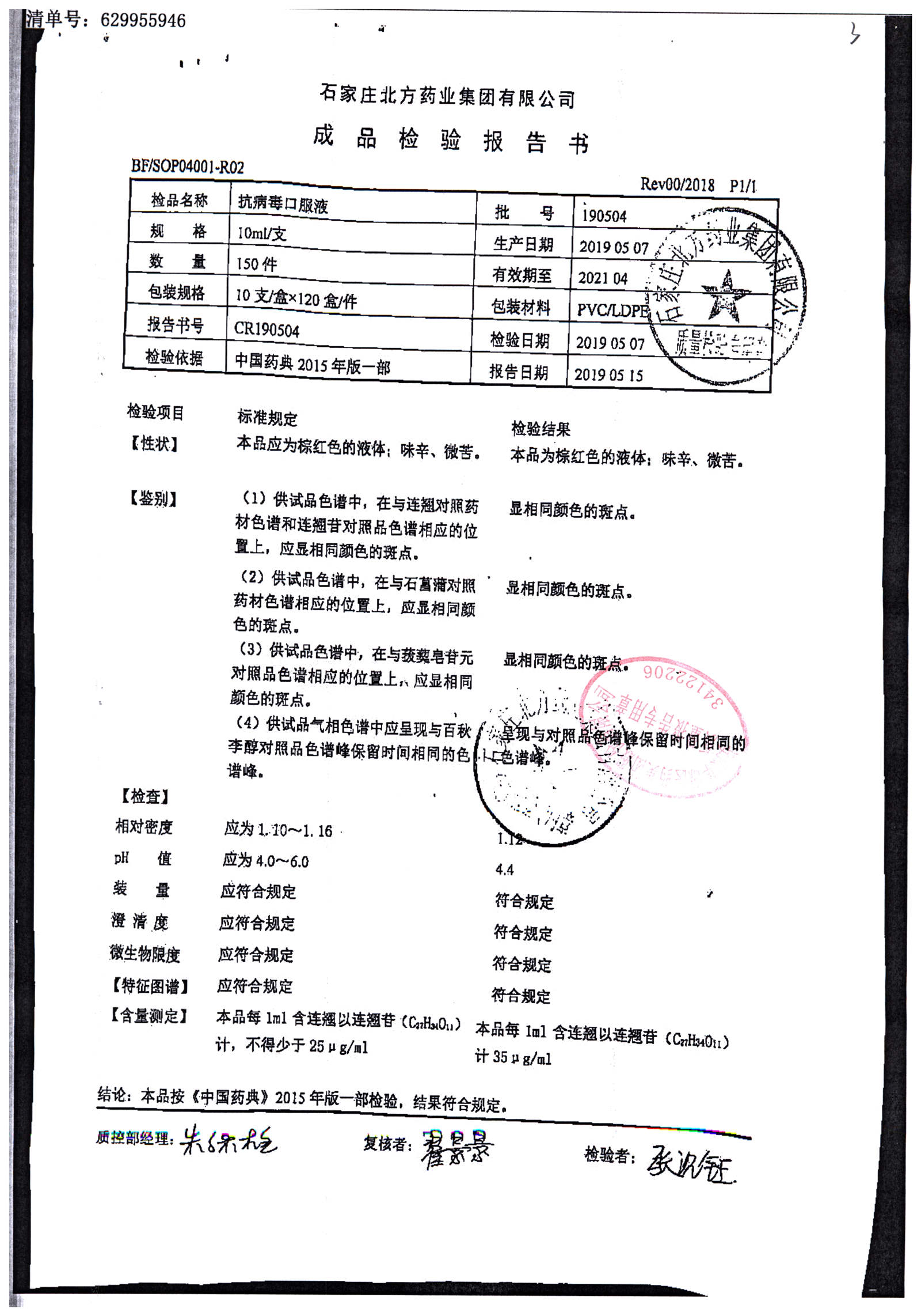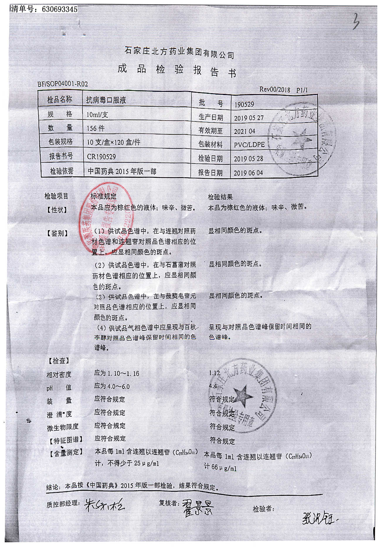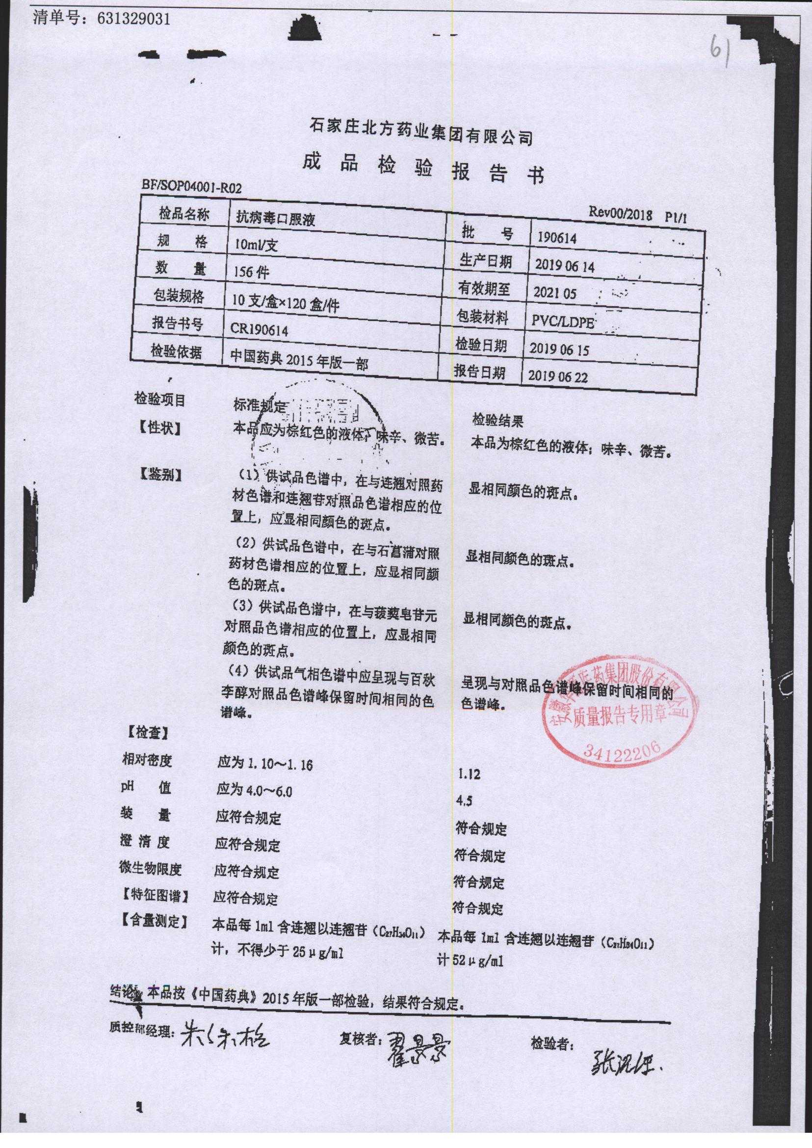 抗病毒口服液 | 10ml | 190529 | 查看详情 |