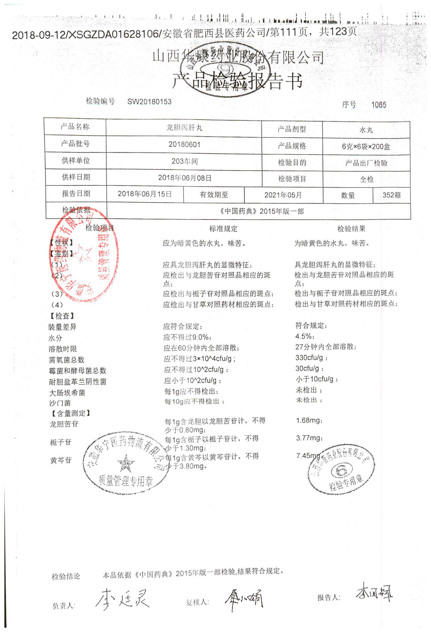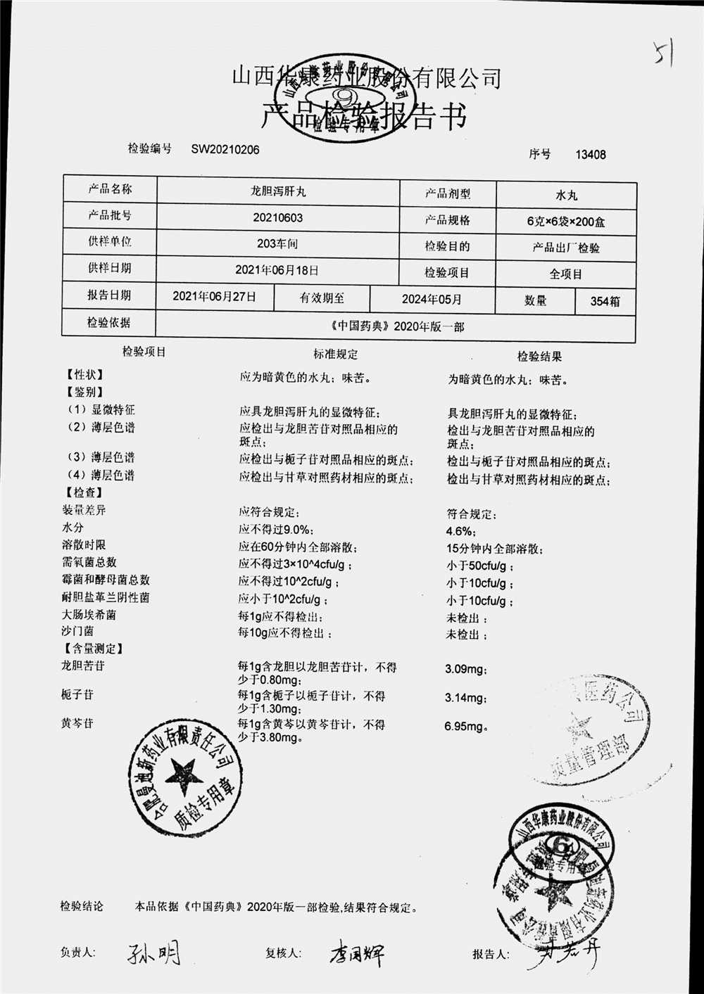 龙胆泻肝丸 | 6g*6袋 | 20210603 | 查看详情 |