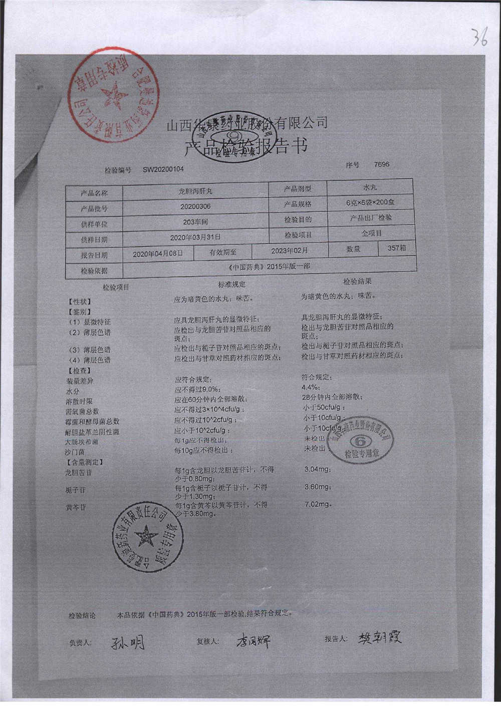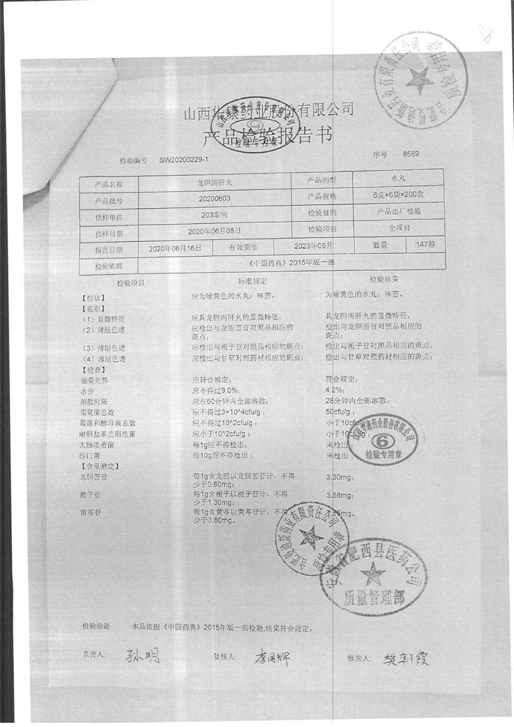 龙胆泻肝丸 | 6g*6袋 | 20200603 | 查看详情 |