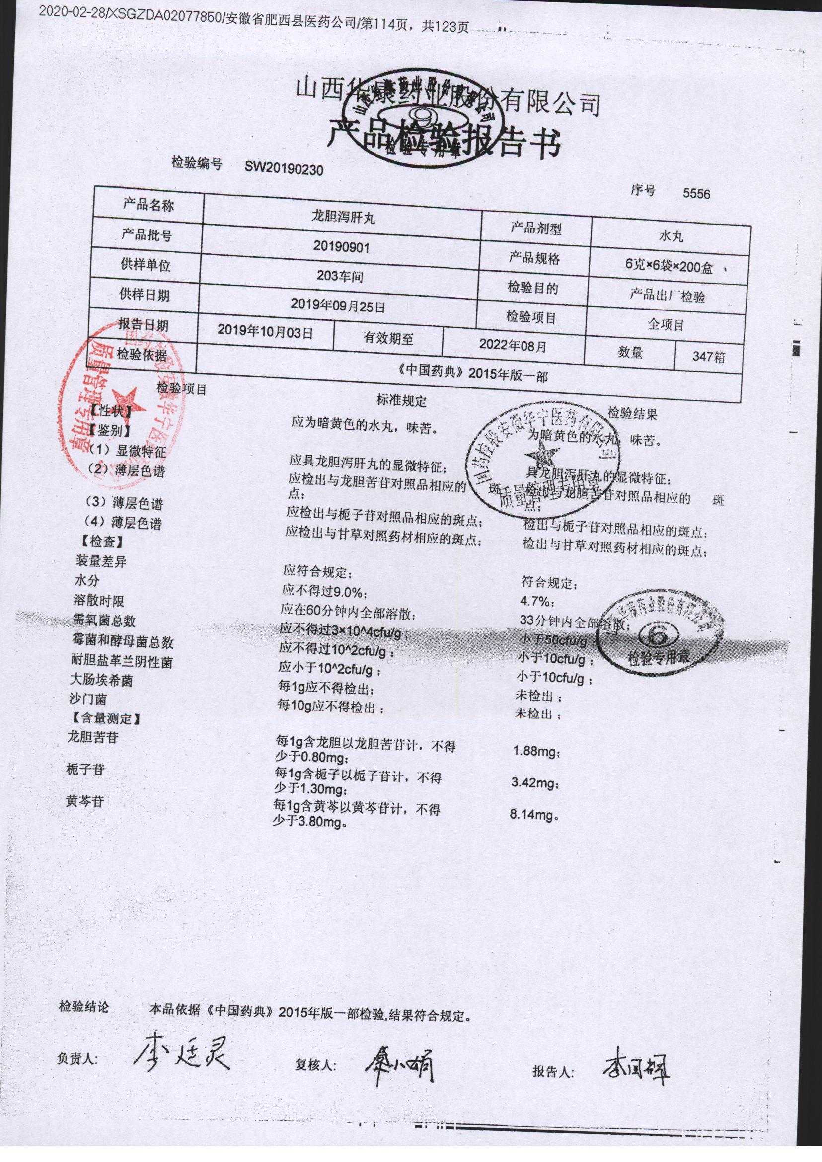 龙胆泻肝丸 | 6g*6袋 | 20200306 | 查看详情 |
