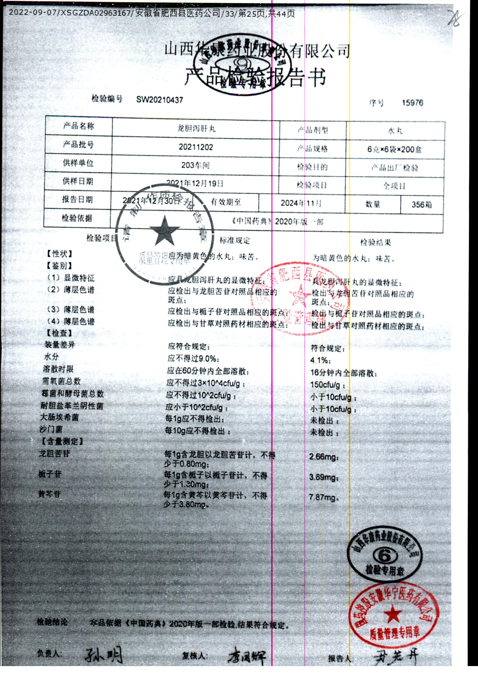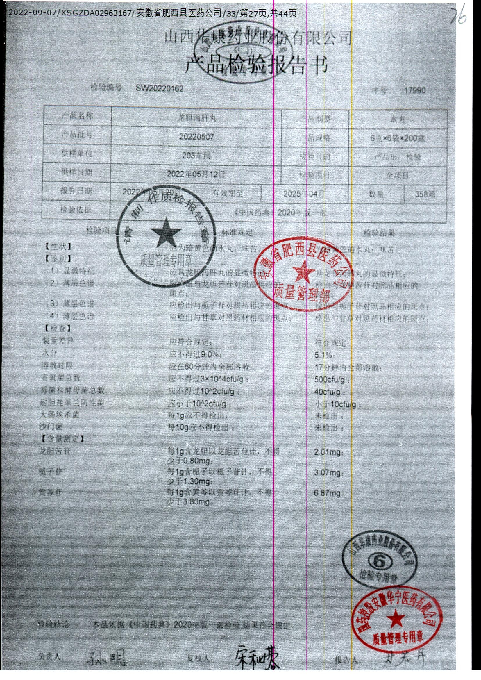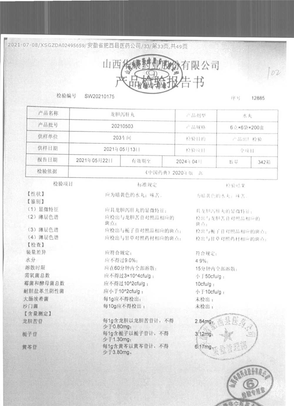龙胆泻肝丸 | 6g*6袋 | 20220507 | 查看详情 |