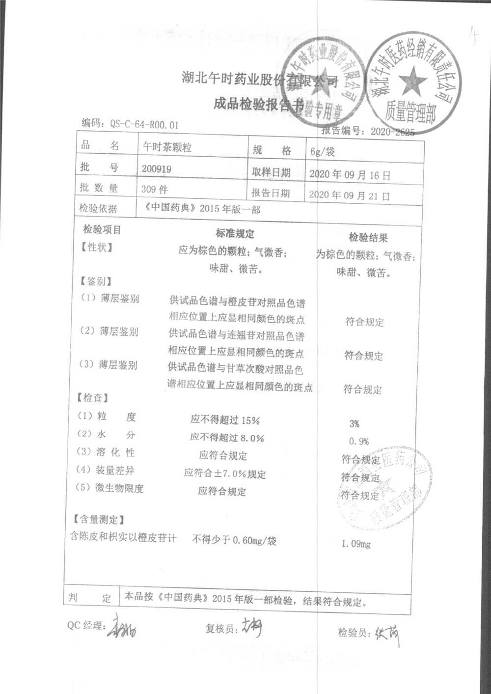 午时茶颗粒 | 6g | 200919 | 查看详情 |