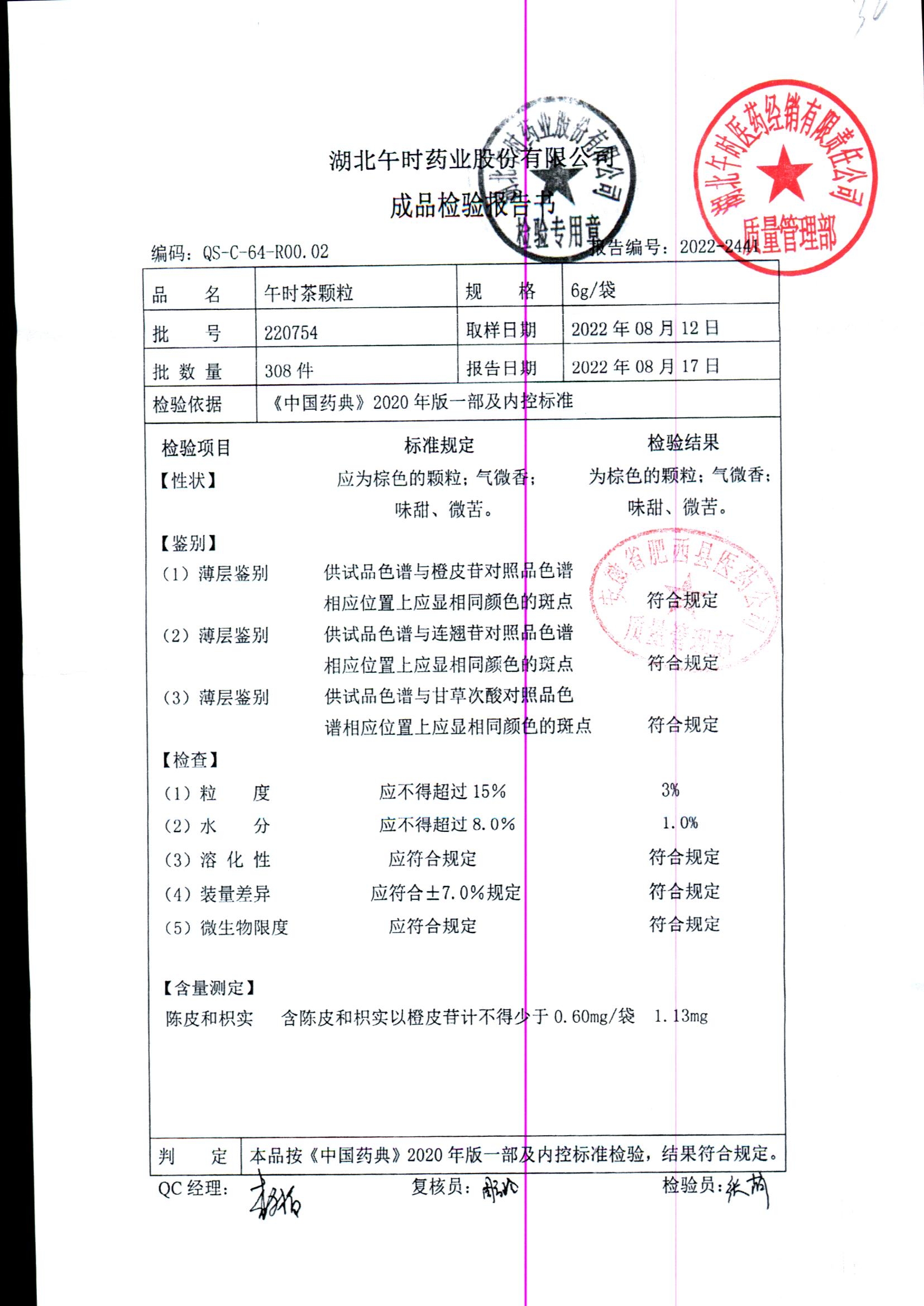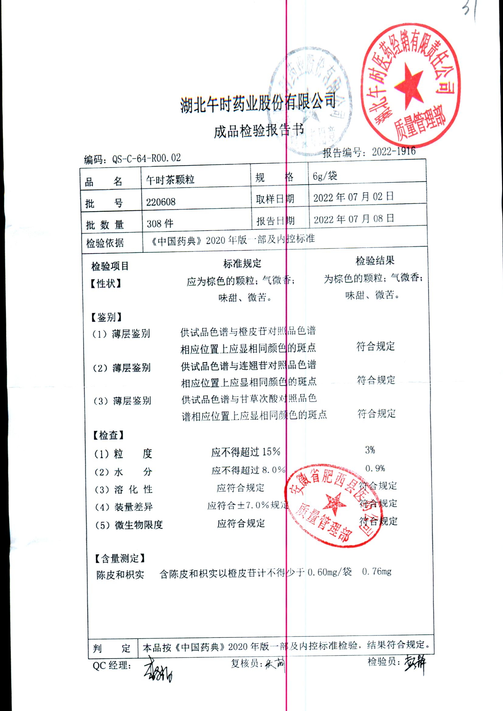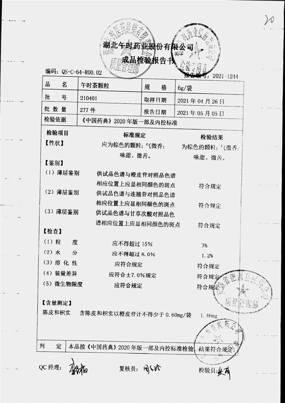 午时茶颗粒 | 6g | 210828 | 查看详情 |