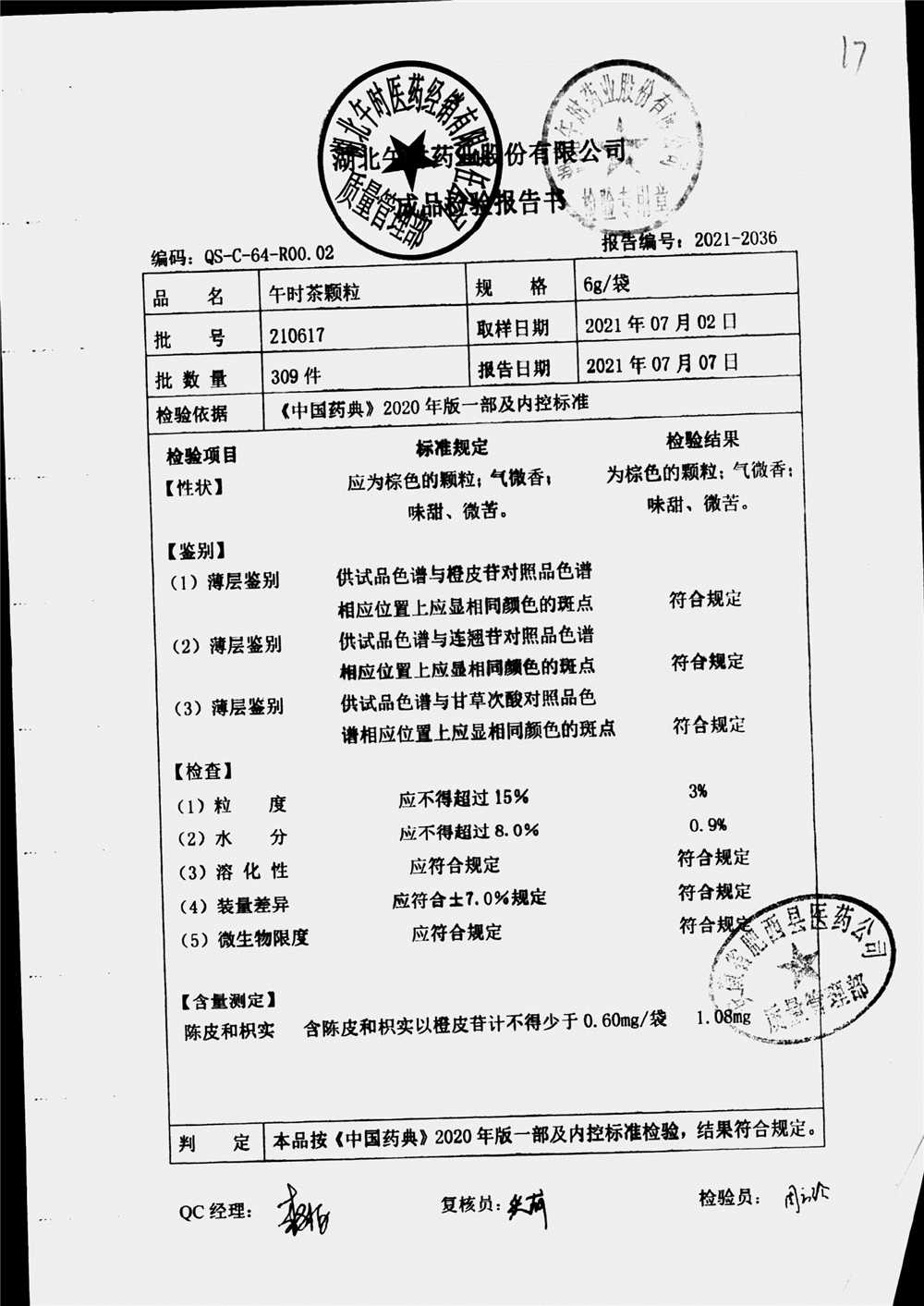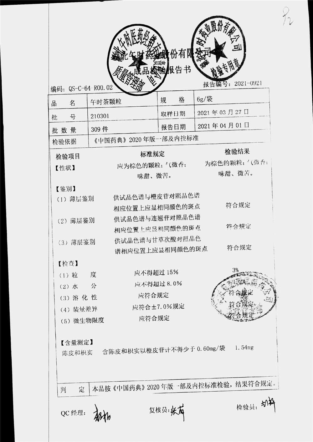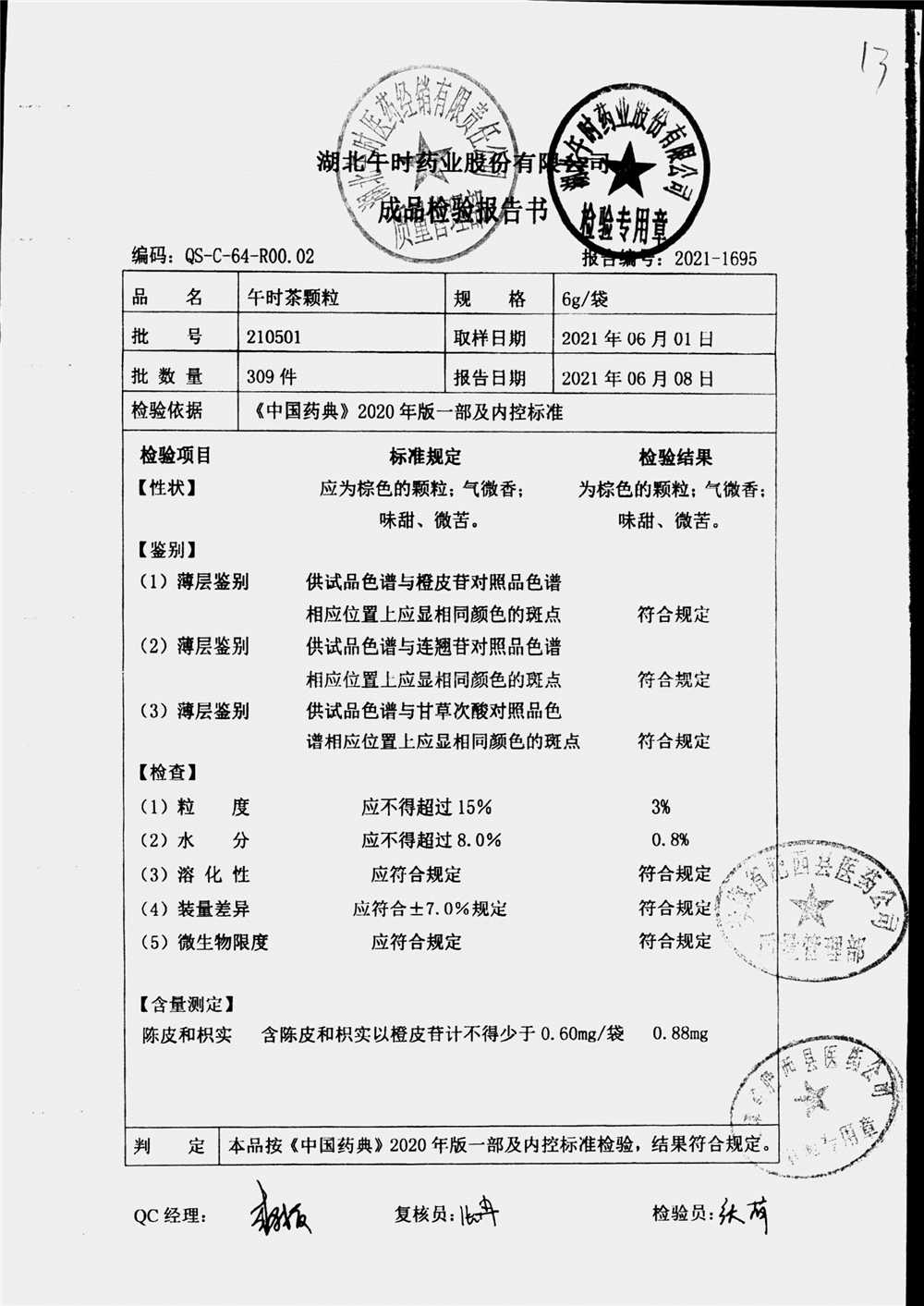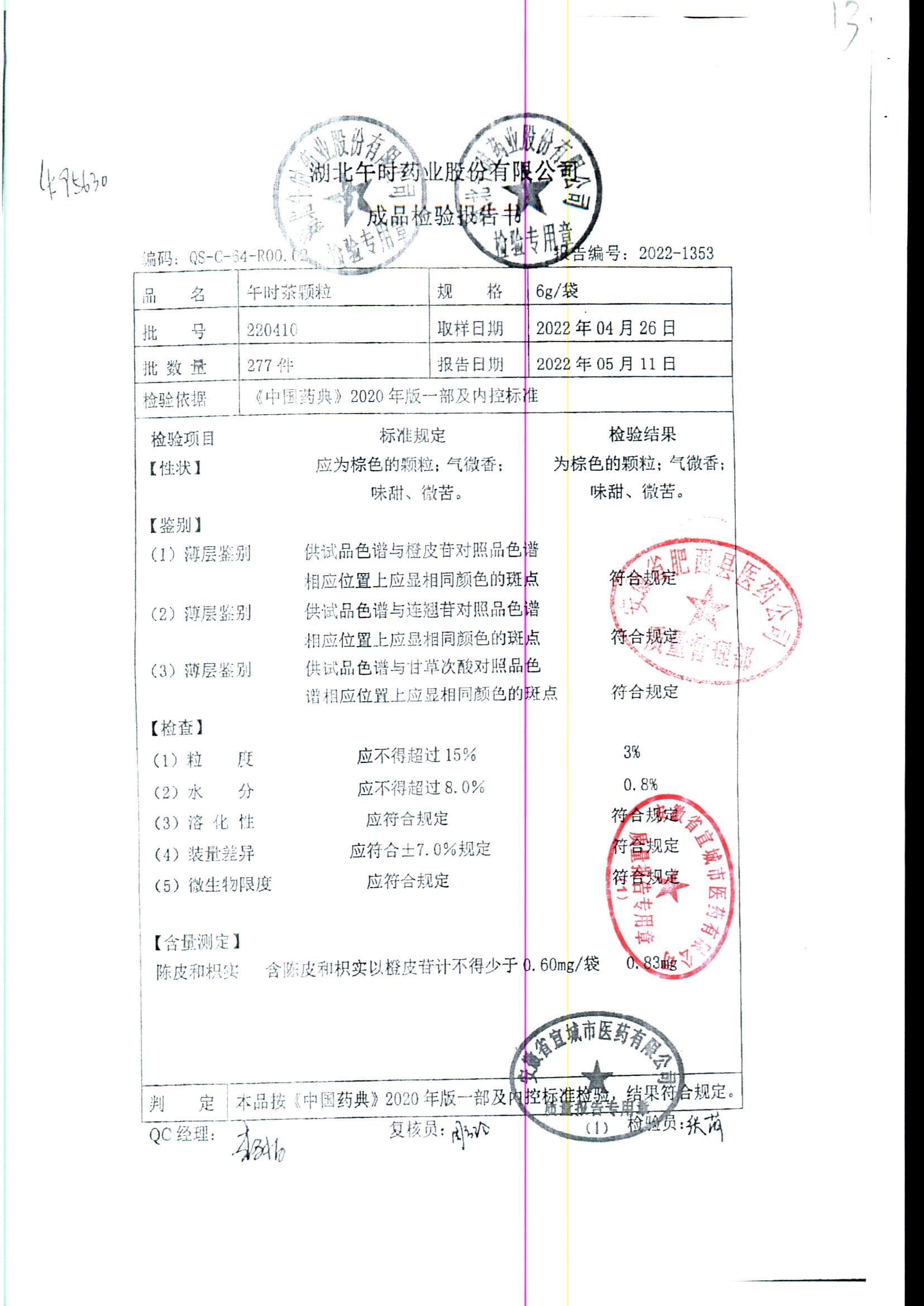 午时茶颗粒 | 6g | 210828 | 查看详情 |