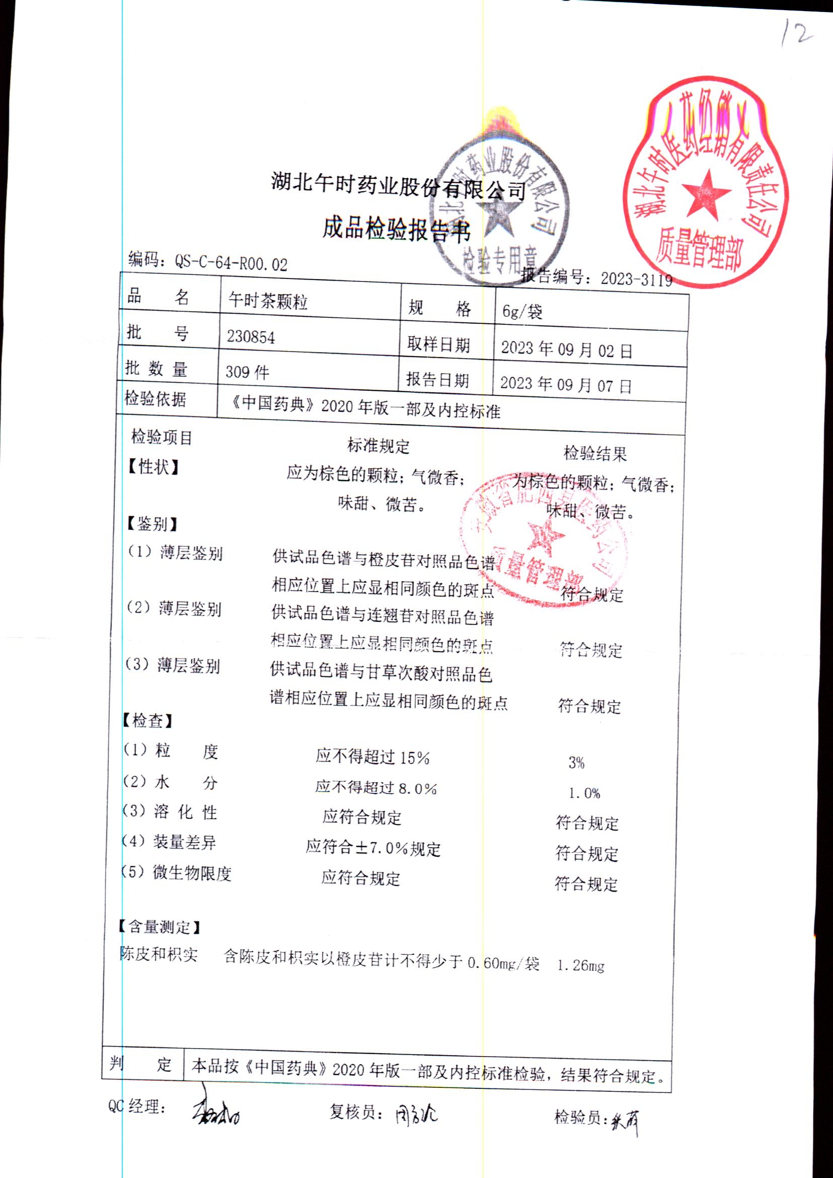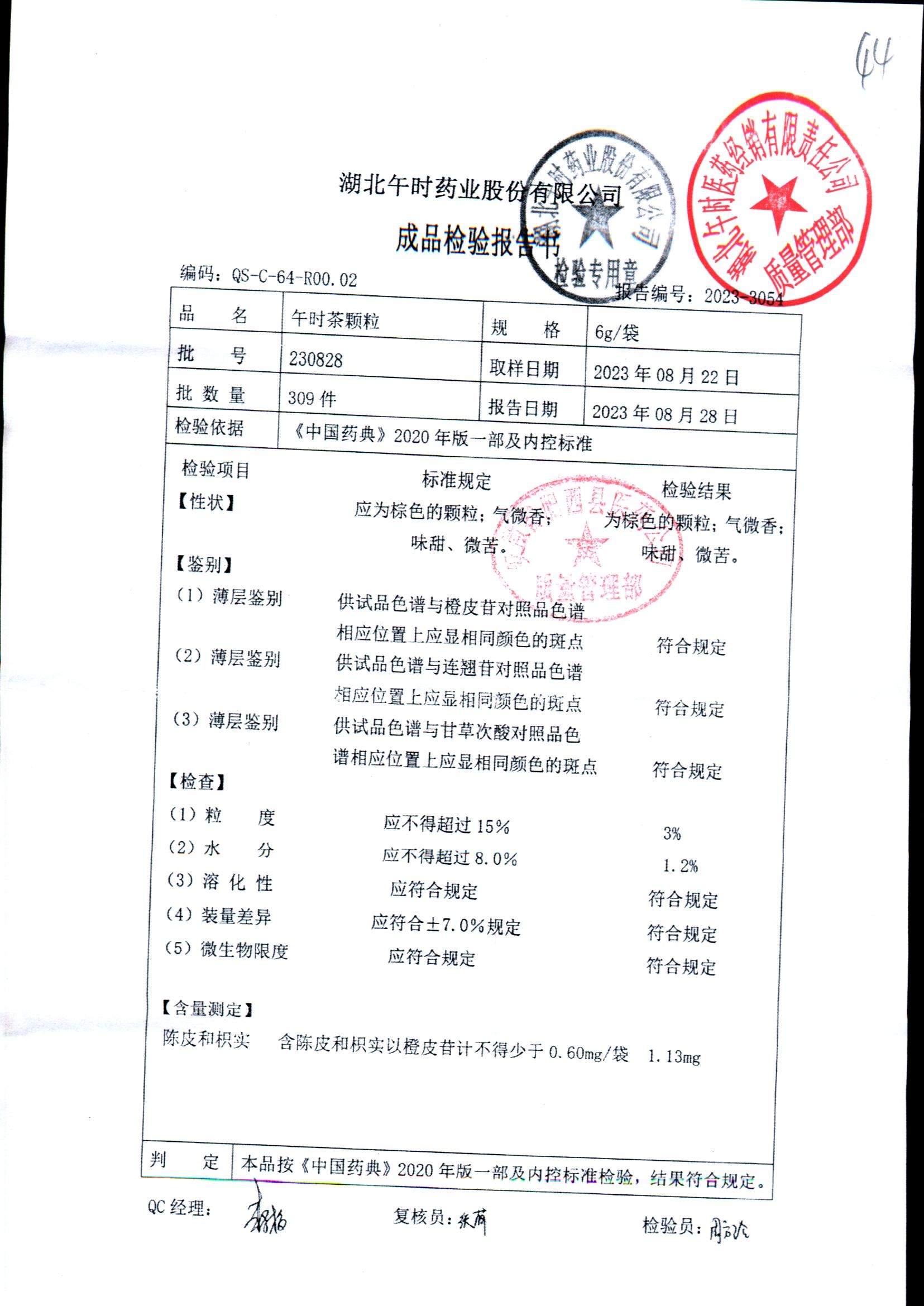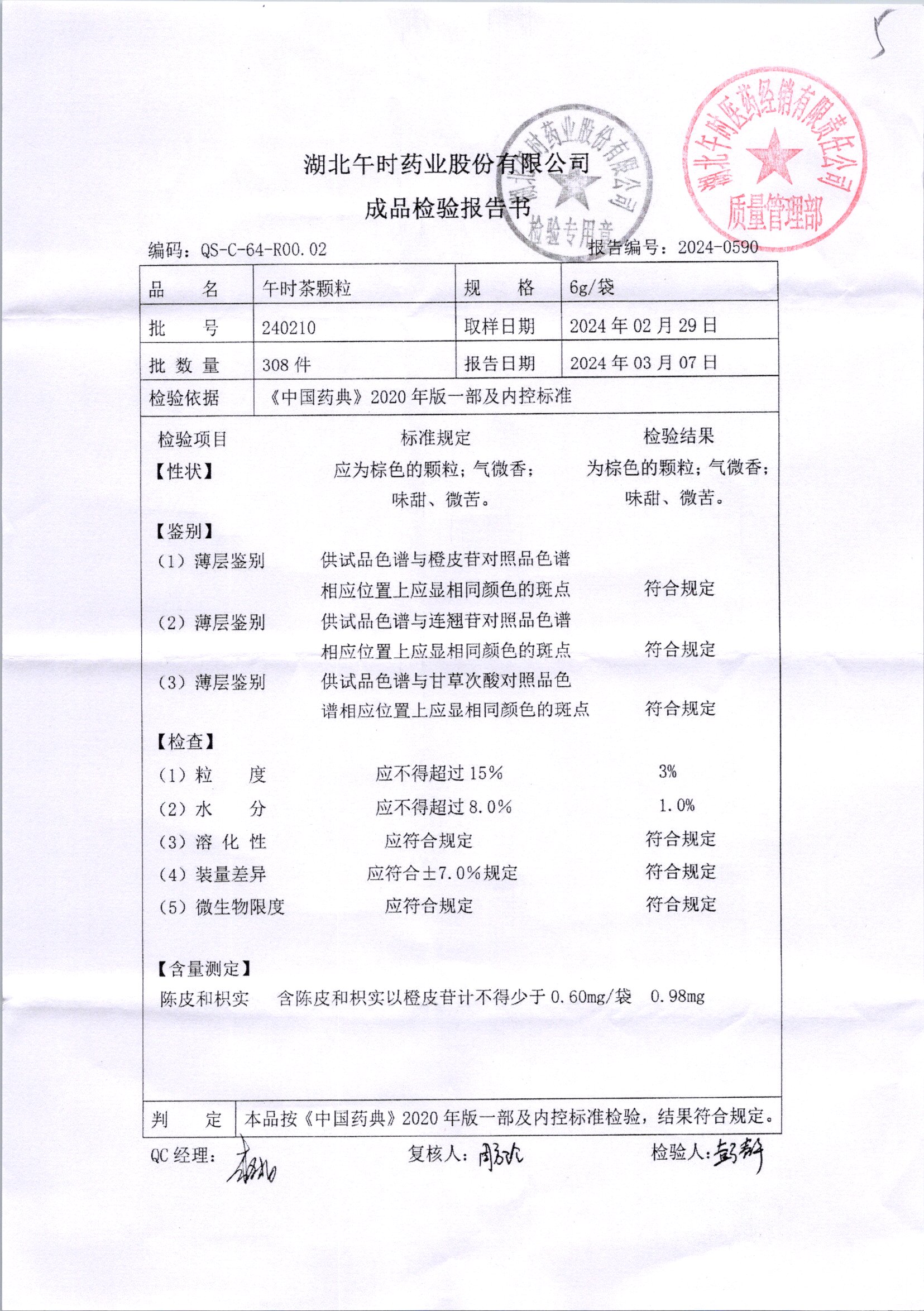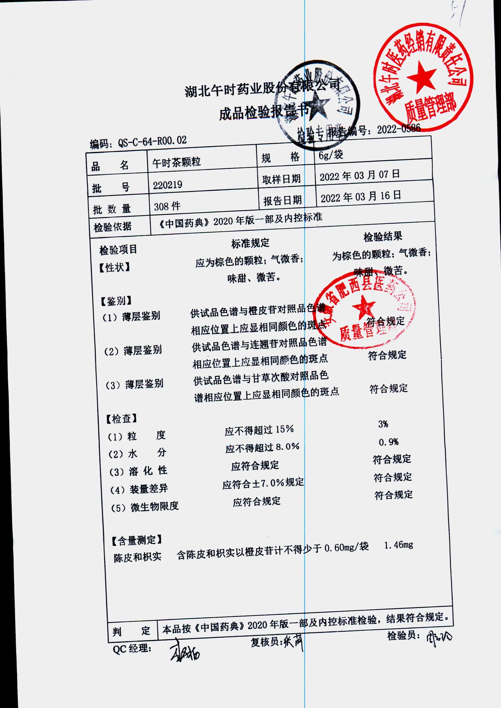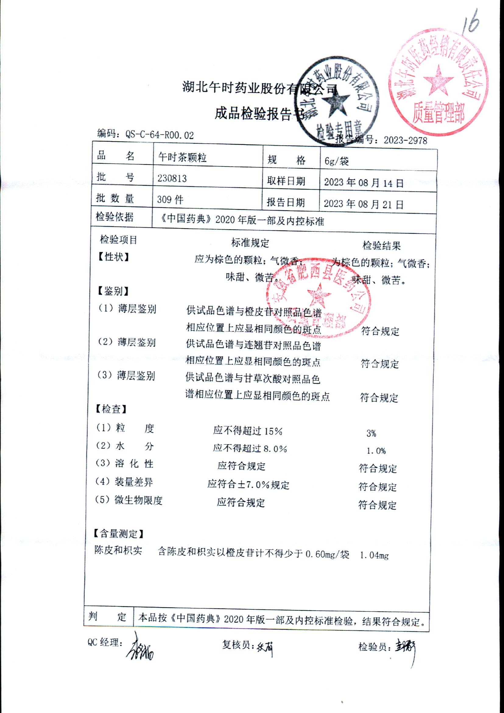 午时茶颗粒 | 6g | 240118 | 查看详情 |