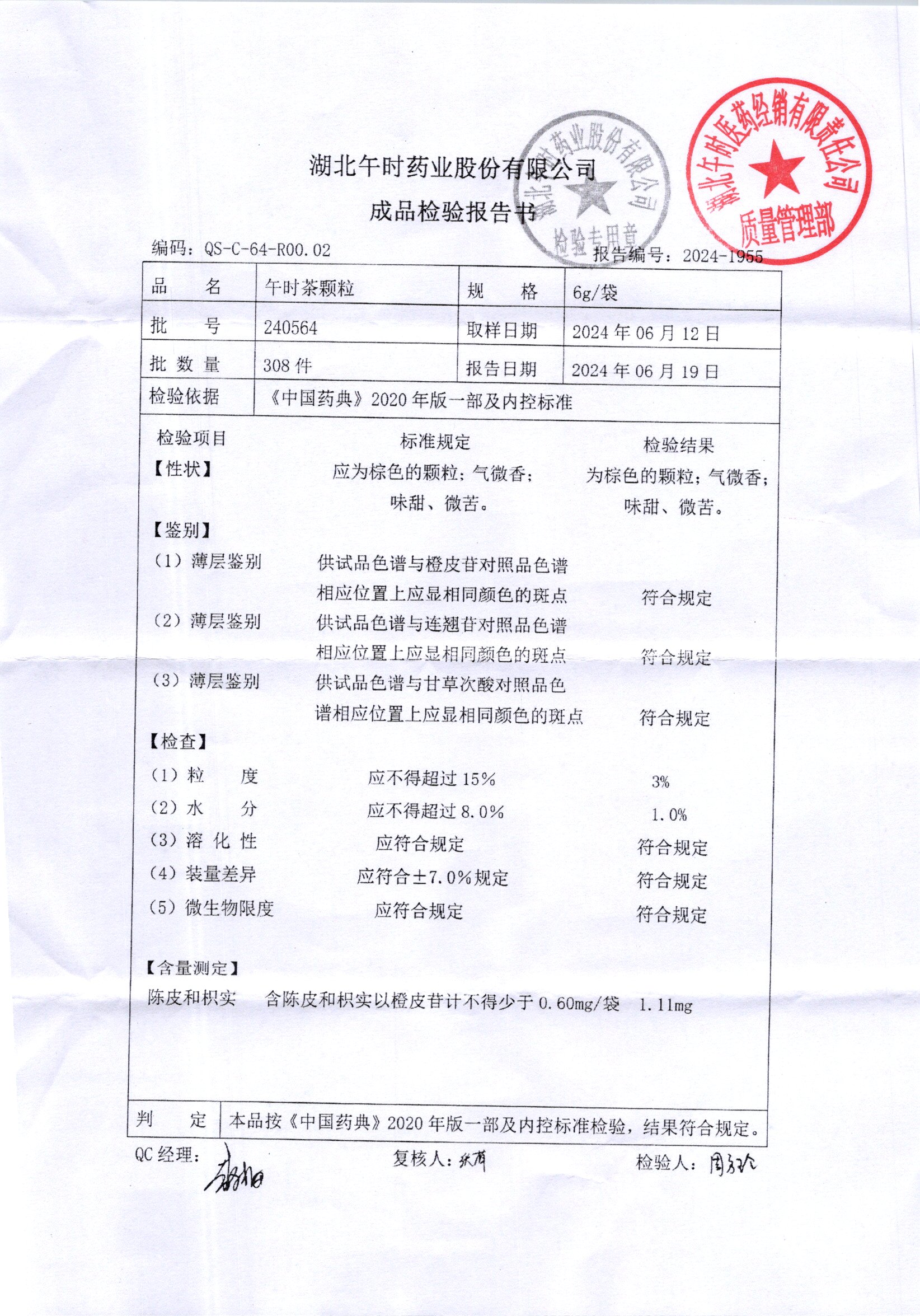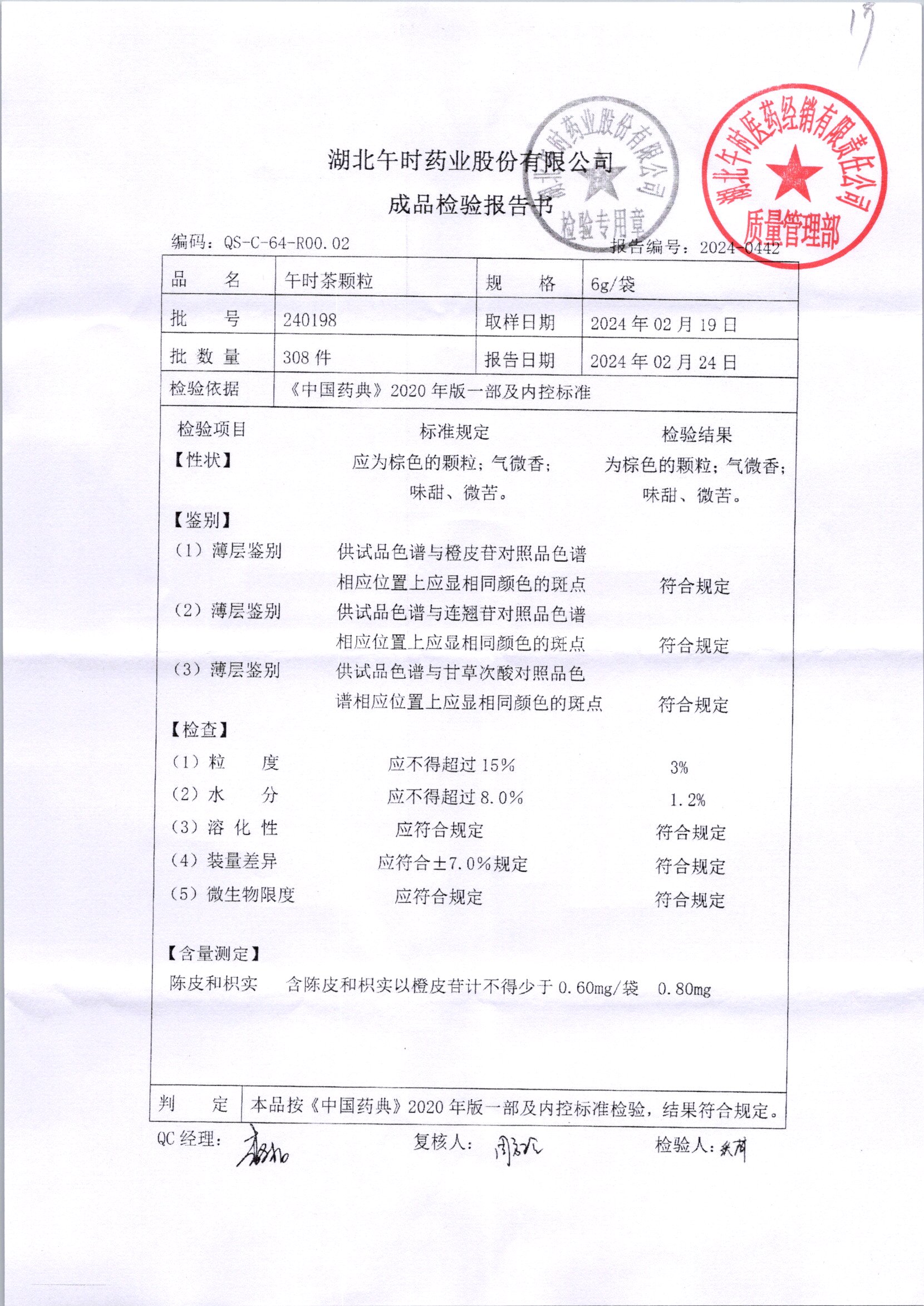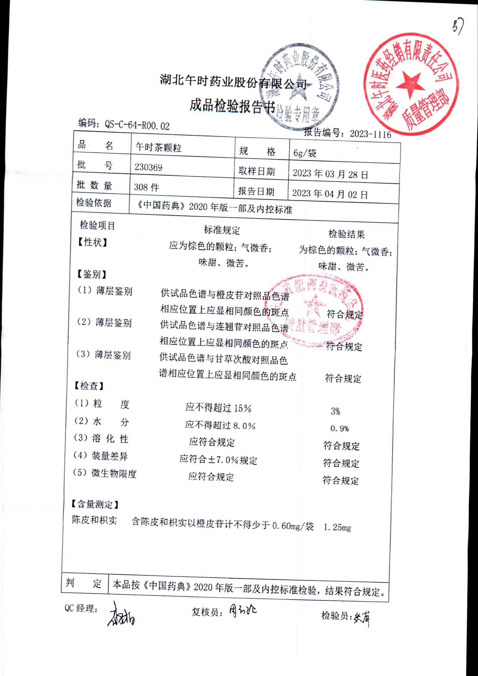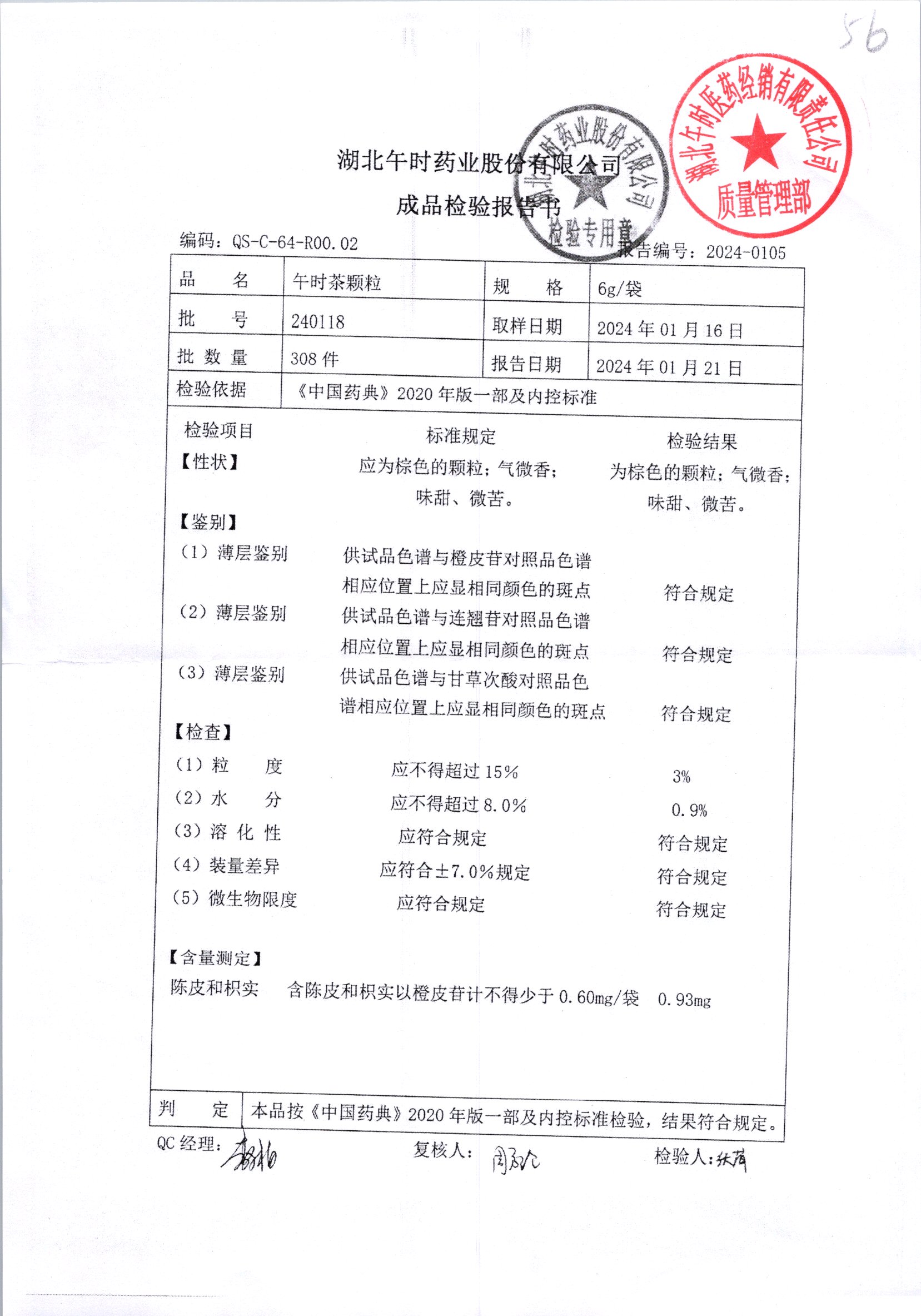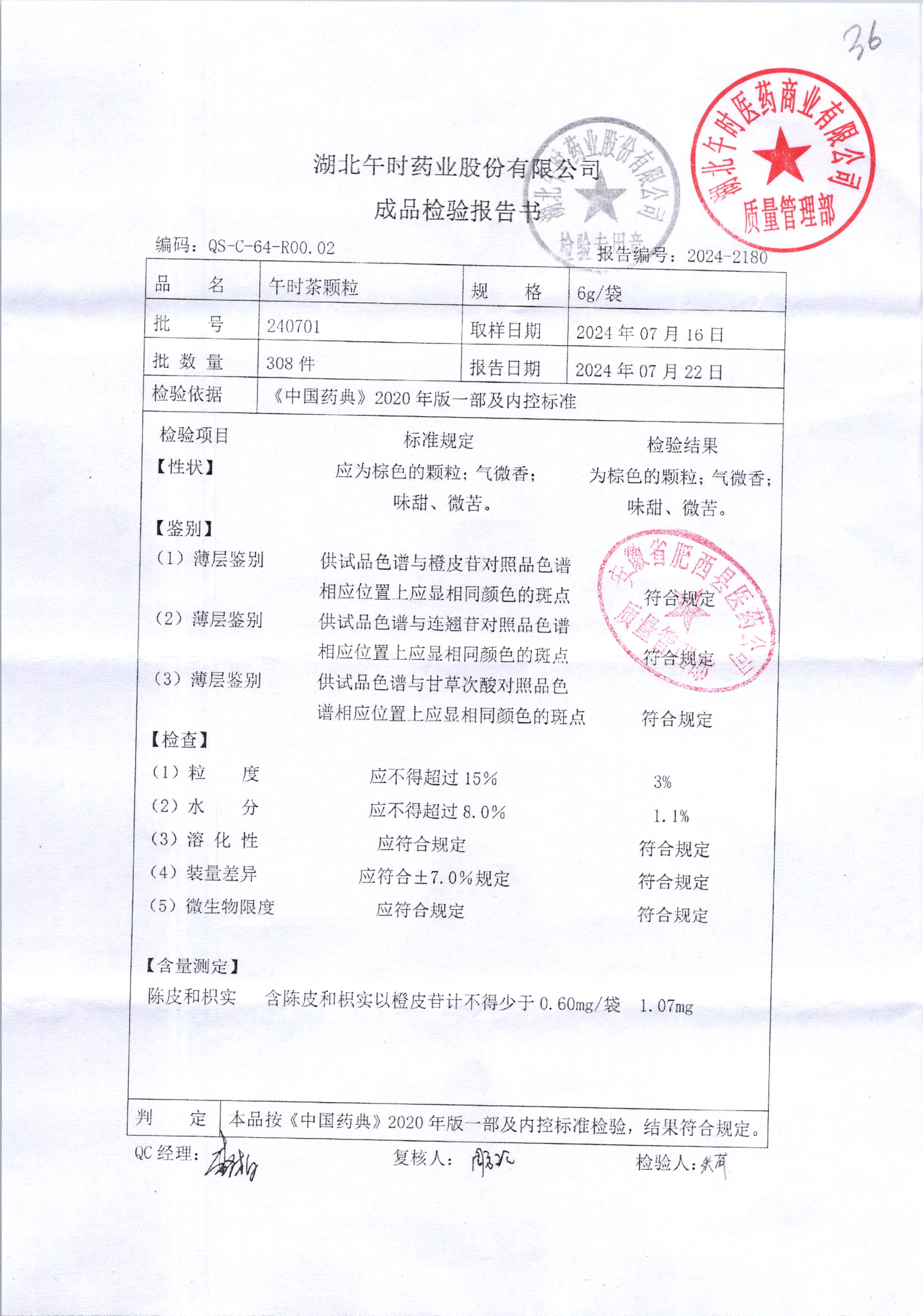 午时茶颗粒 | 6g | 240118 | 查看详情 |