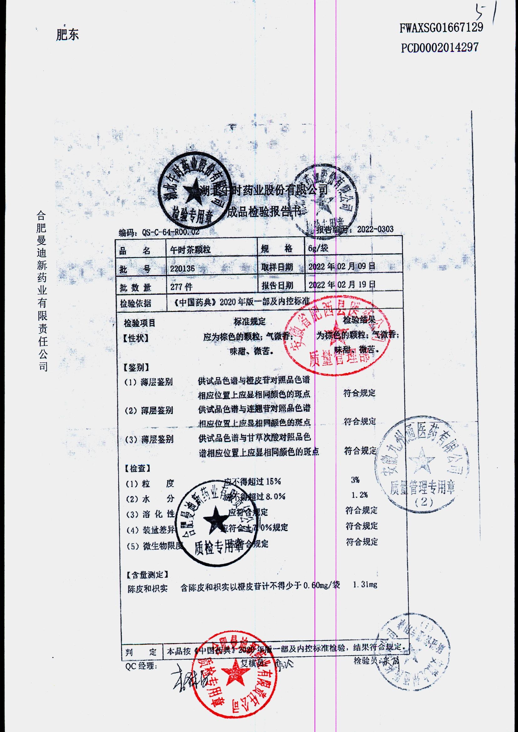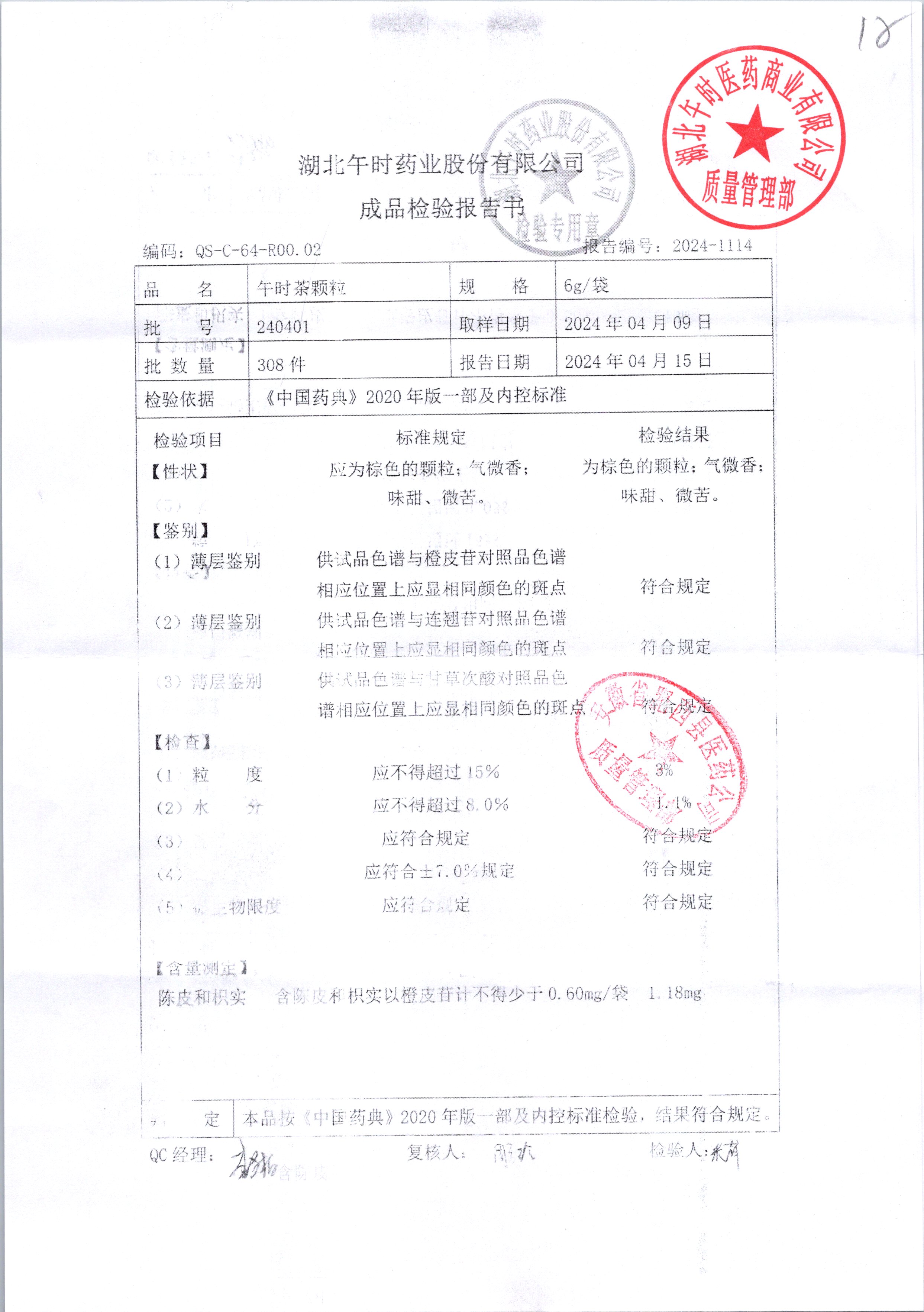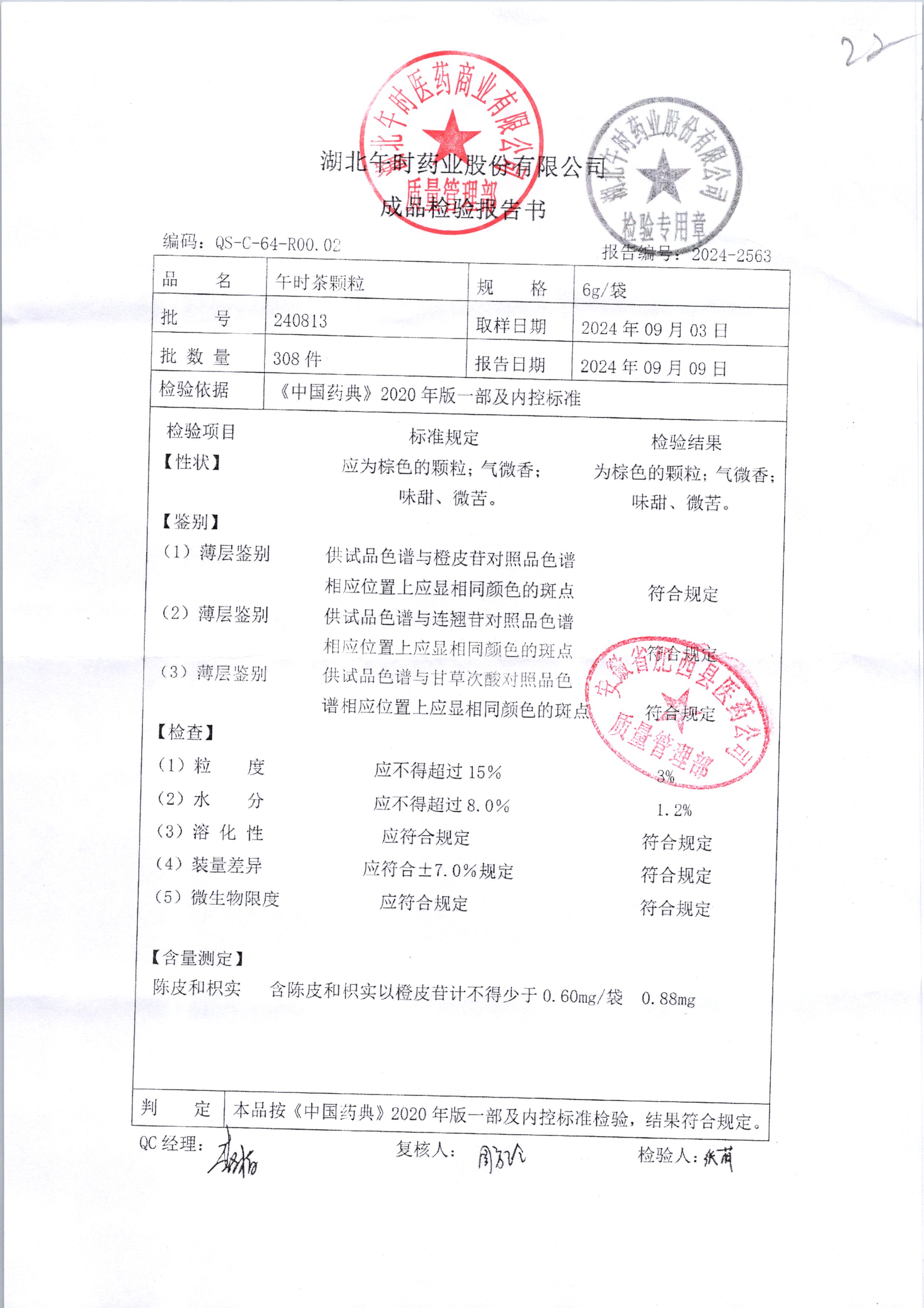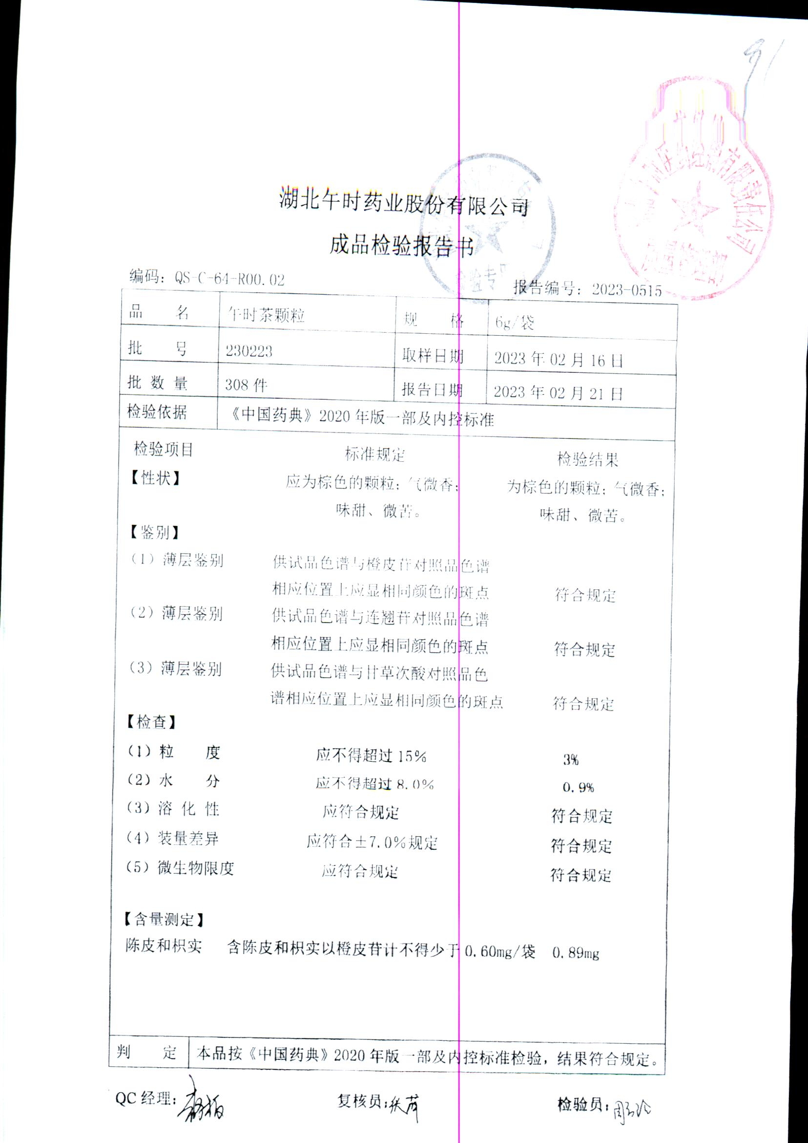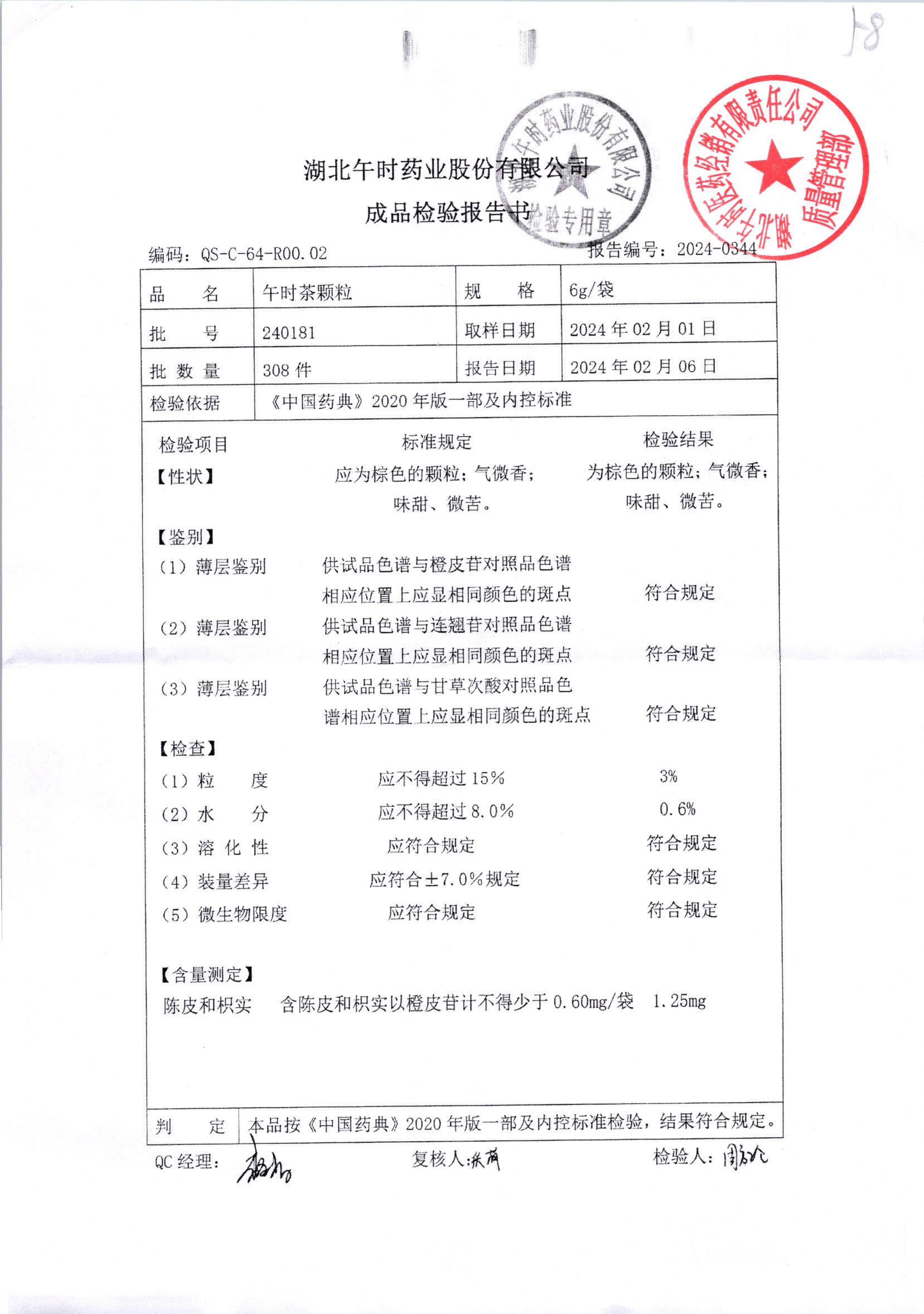 午时茶颗粒 | 6g | 240118 | 查看详情 |