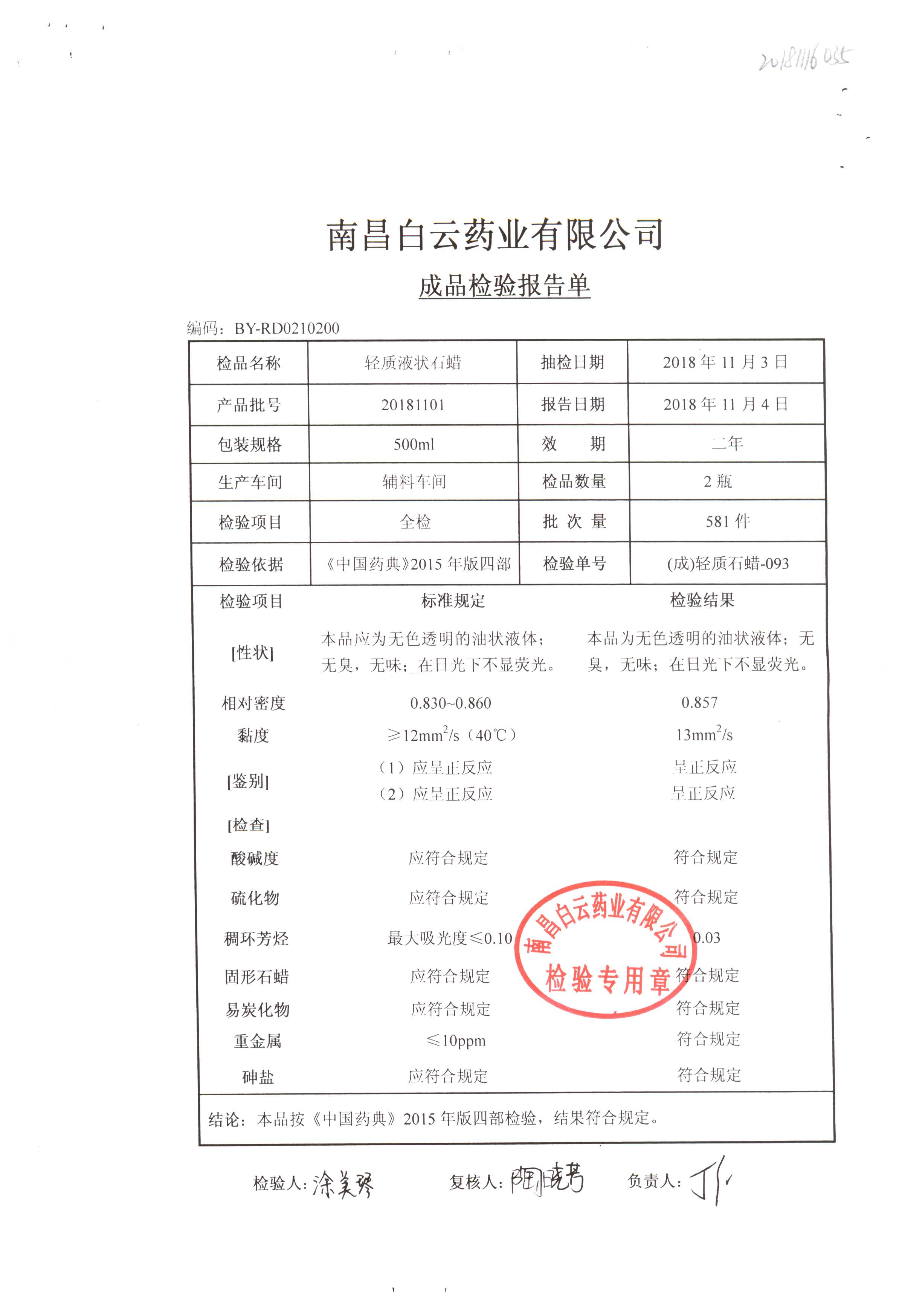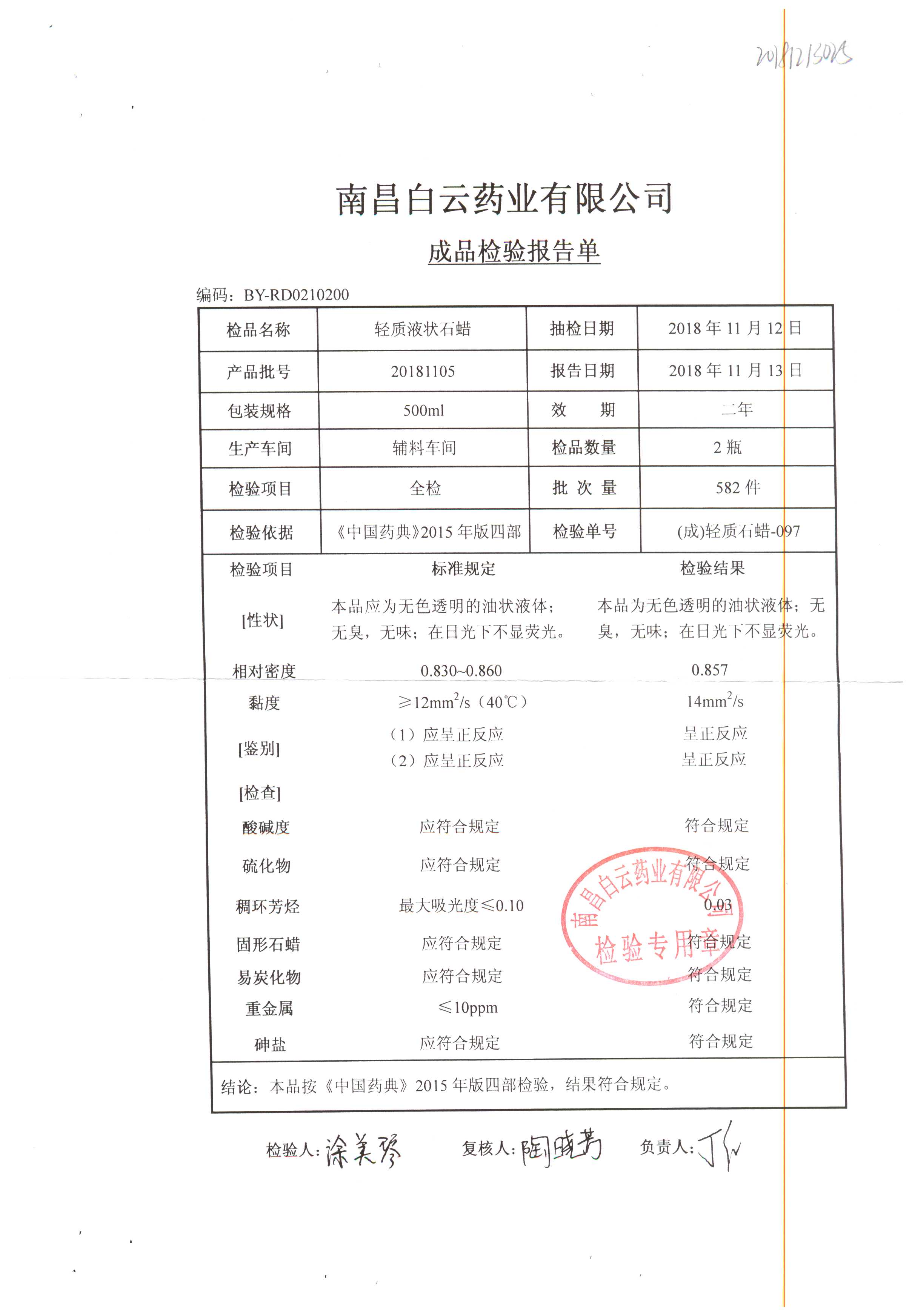 轻质液状石蜡 | 500ml | 20181105 | 查看详情 |