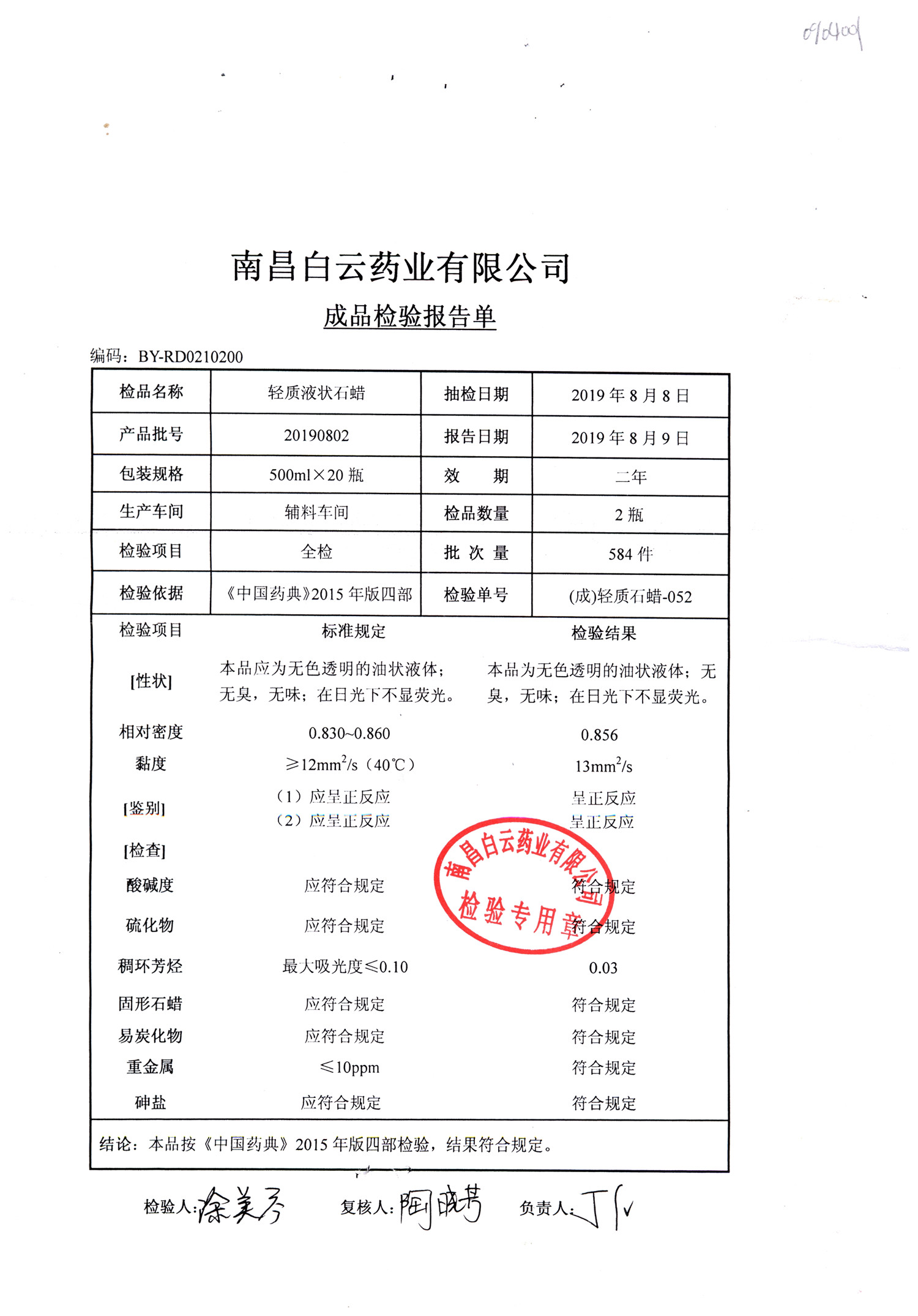 轻质液状石蜡 | 500ml | 20190802 | 查看详情 |