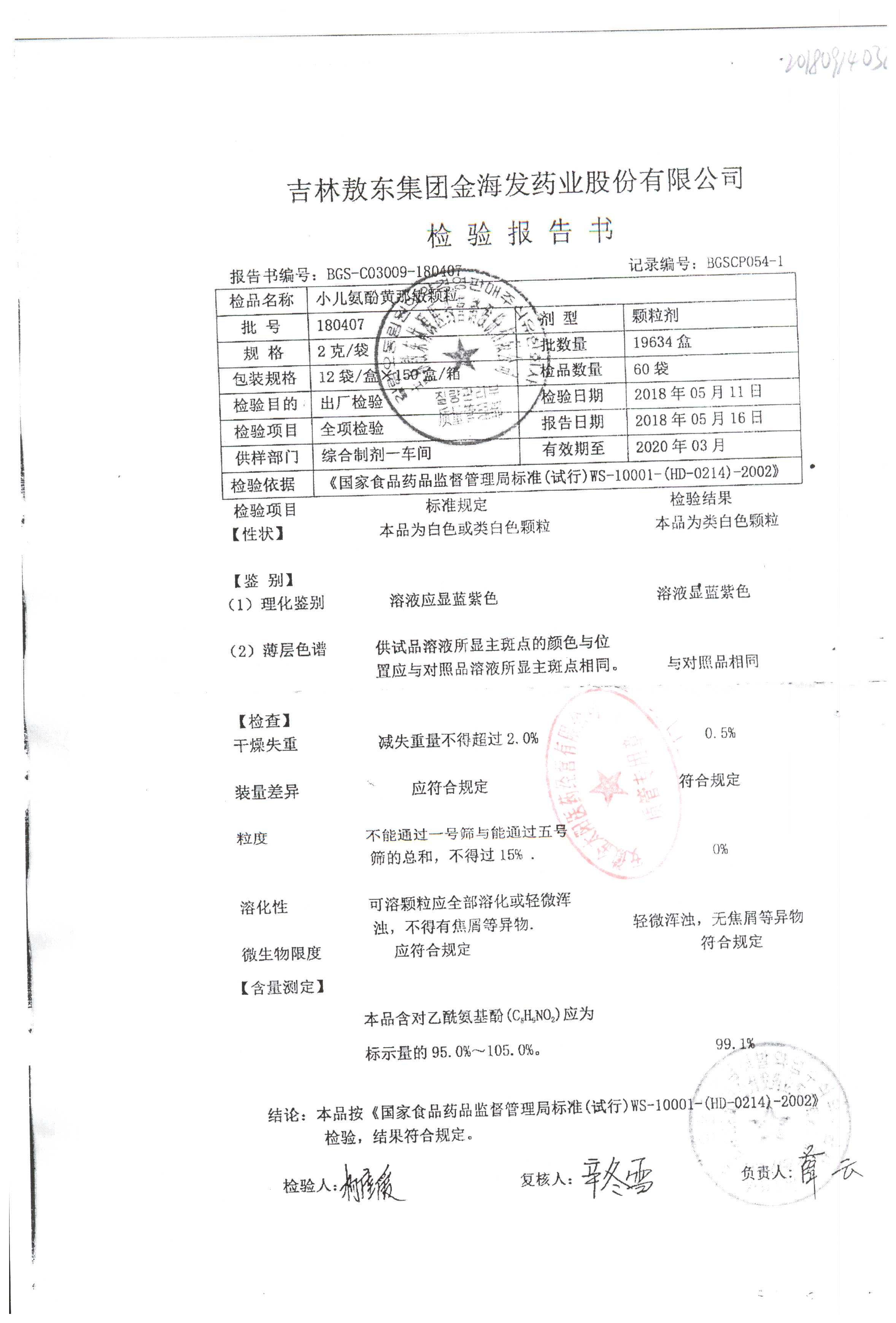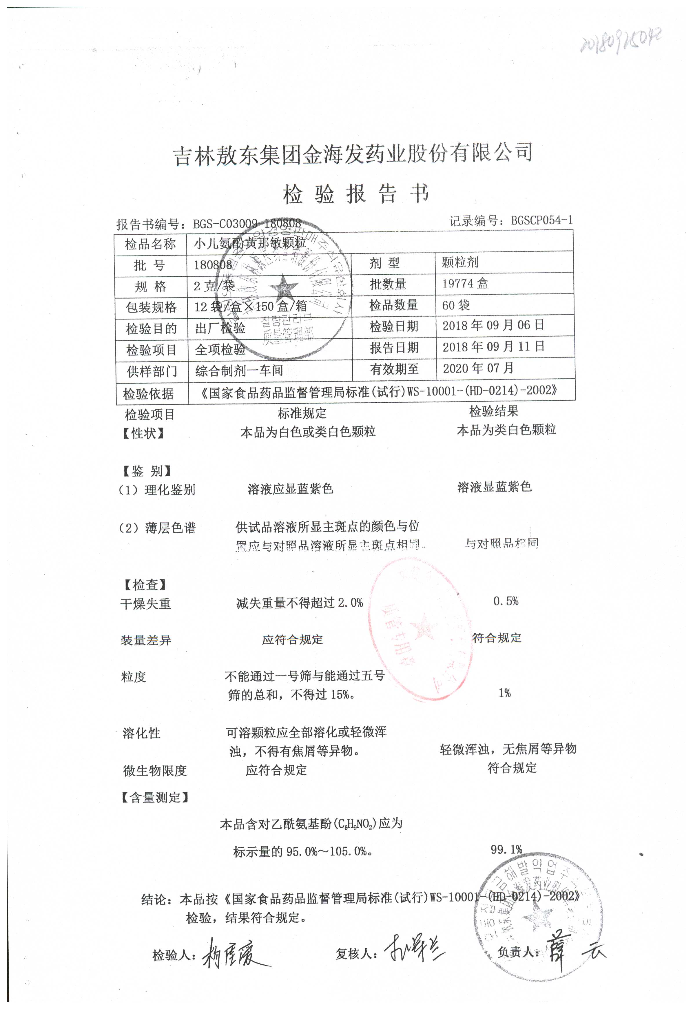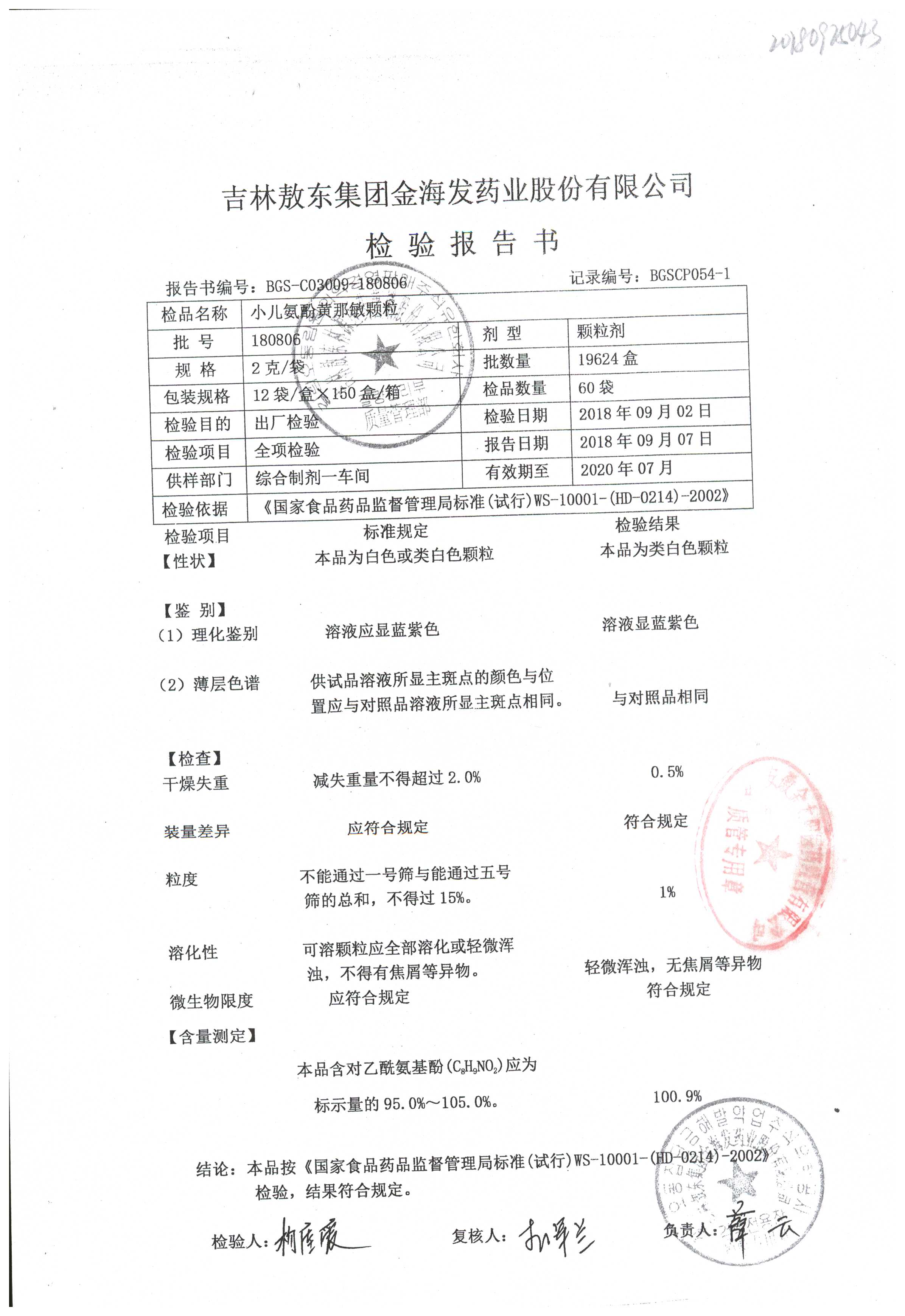 小儿氨酚黄那敏颗粒 | 2g*12袋 | 180807 | 查看详情 |