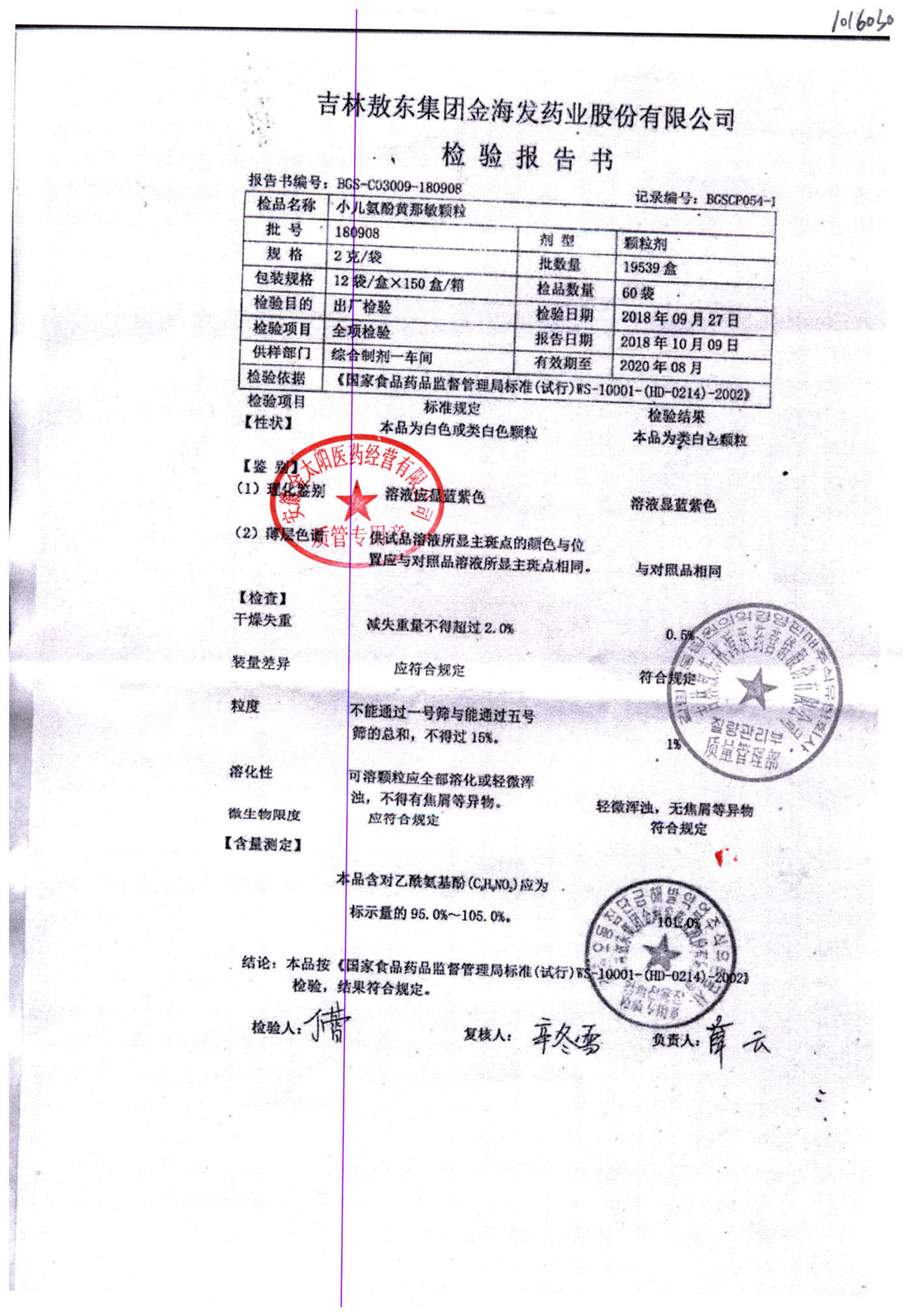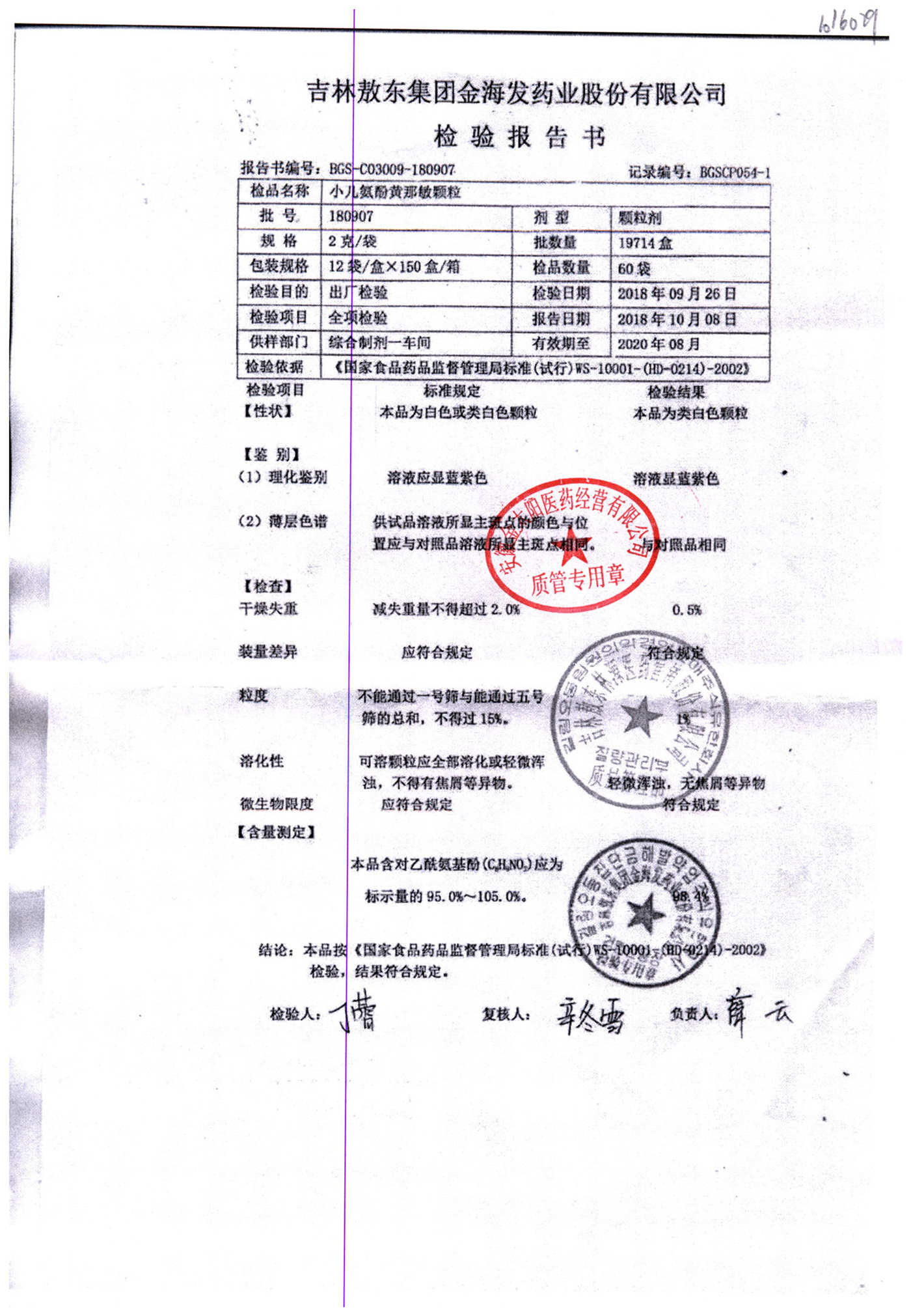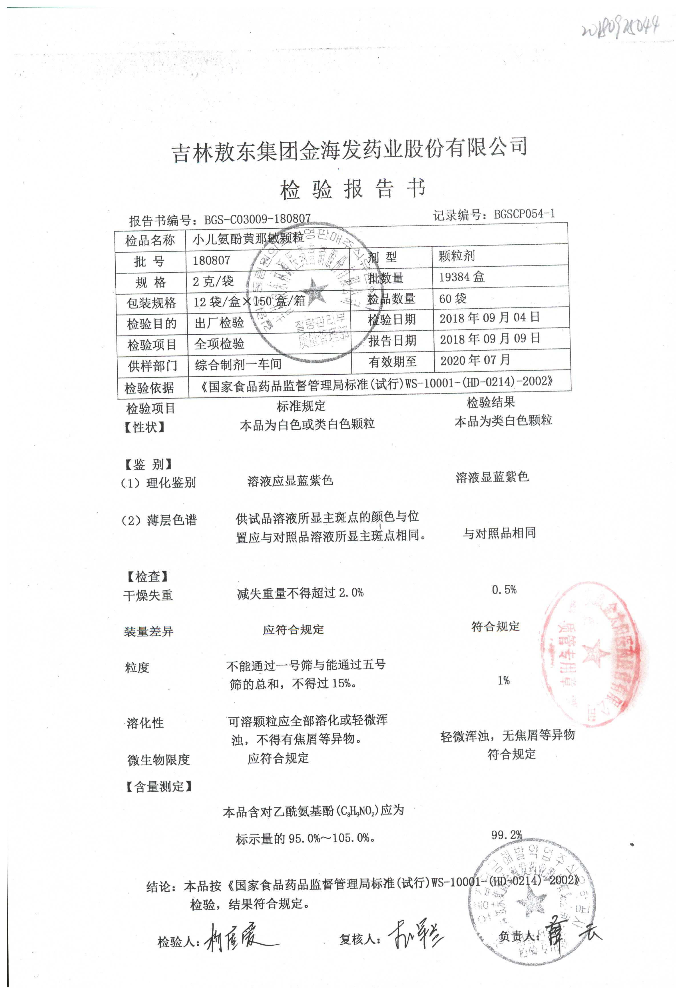 小儿氨酚黄那敏颗粒 | 2g*12袋 | 180807 | 查看详情 |