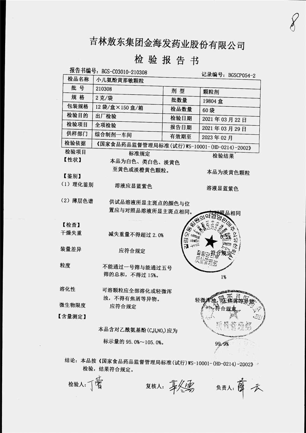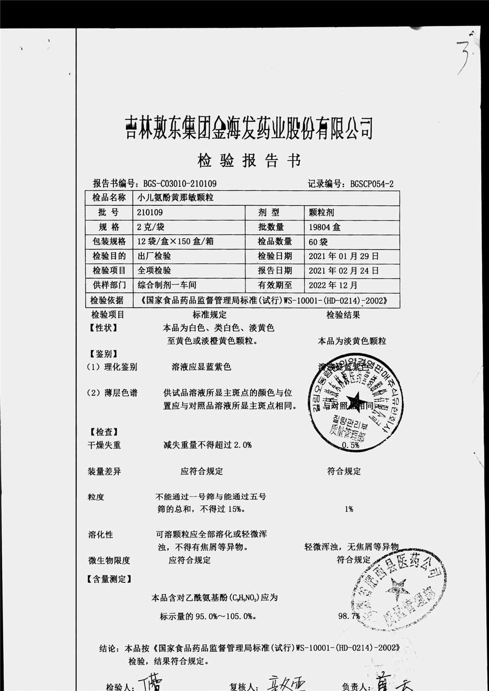 小儿氨酚黄那敏颗粒 | 2g*12袋 | 210308 | 查看详情 |