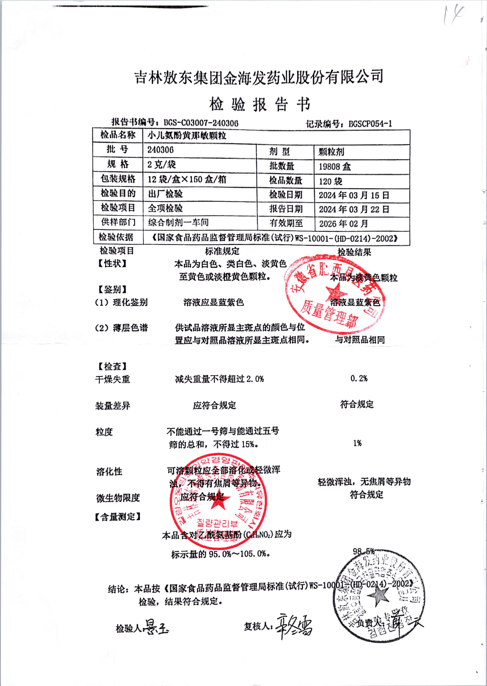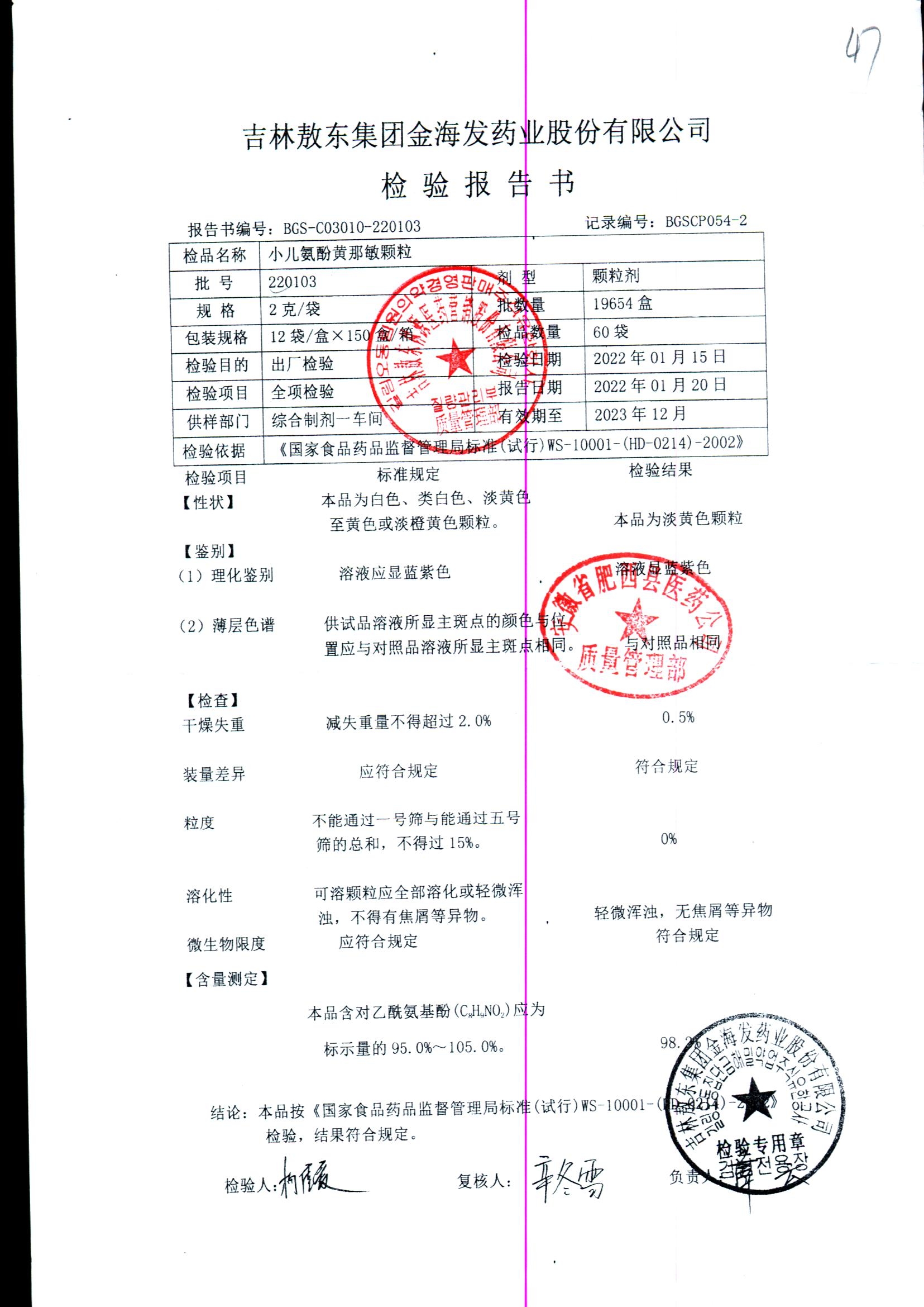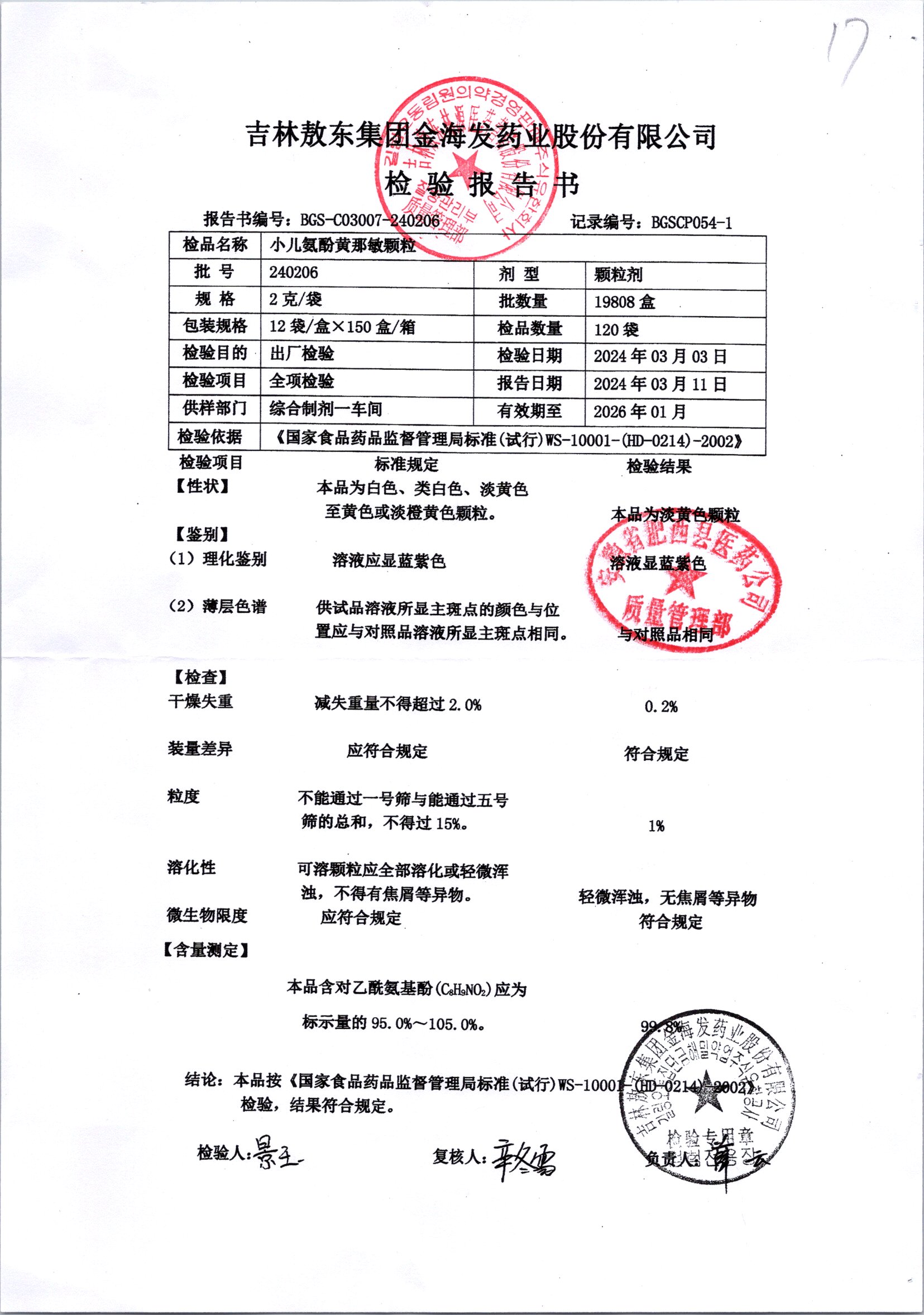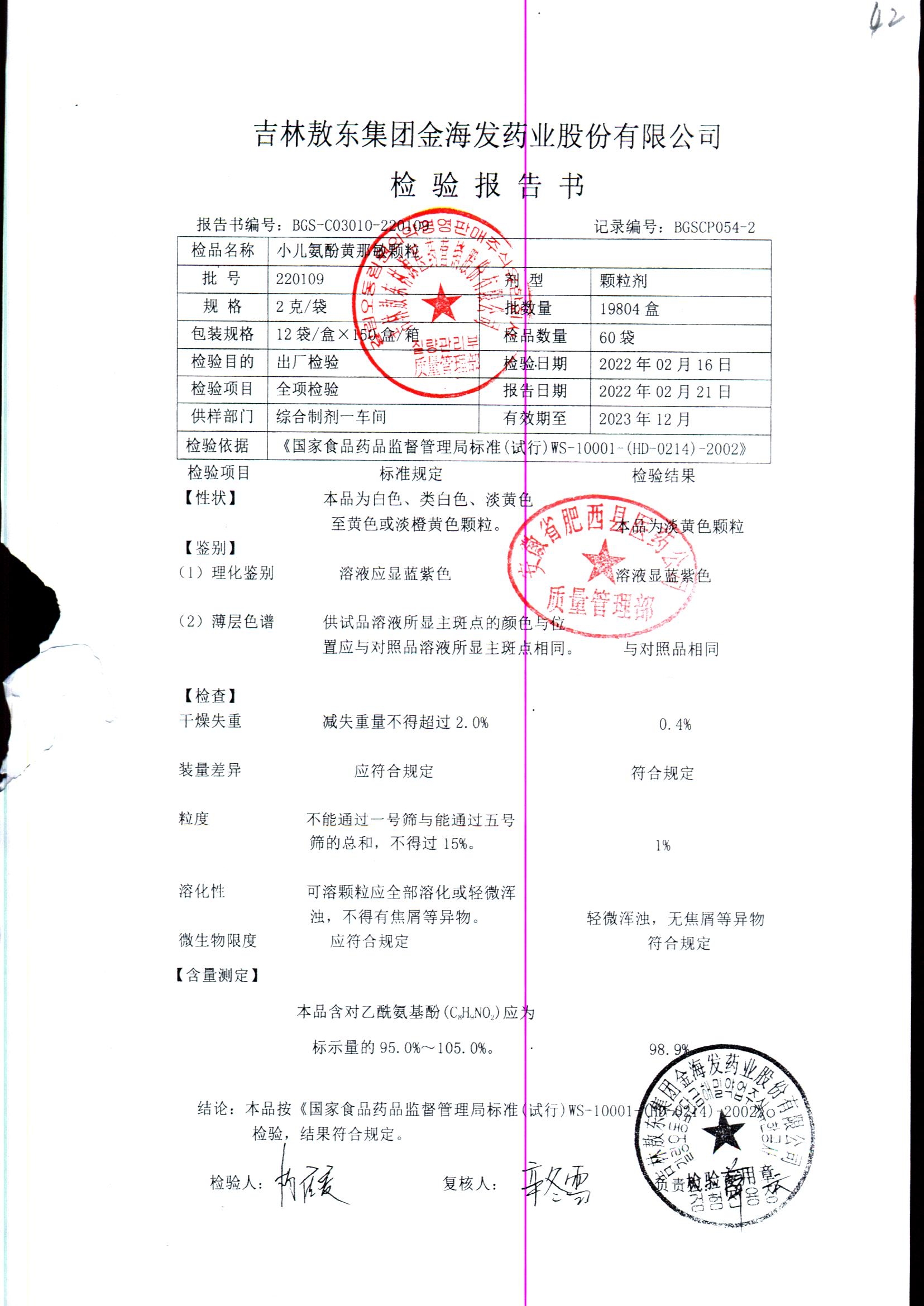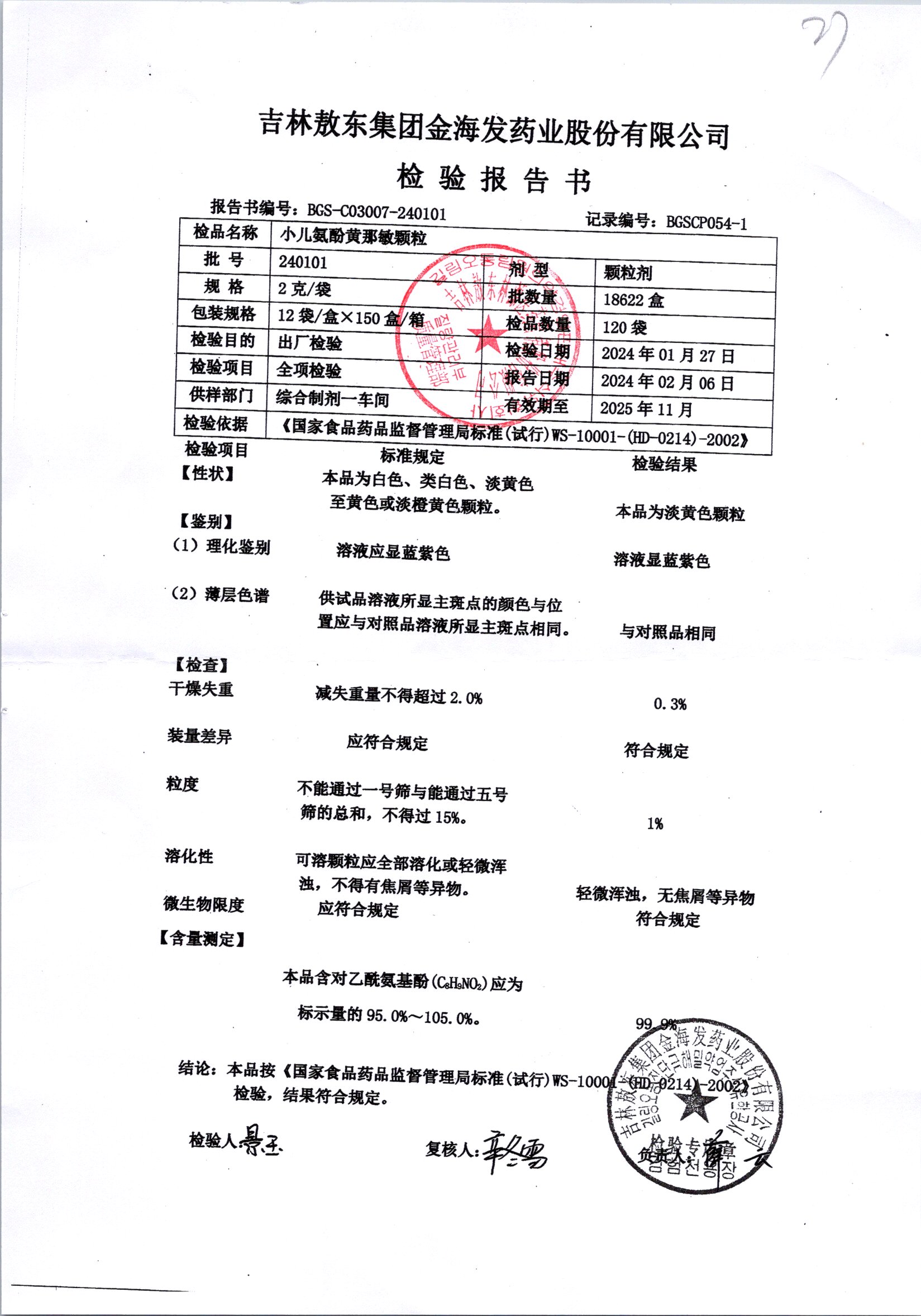 小儿氨酚黄那敏颗粒 | 2g*12袋 | 240306 | 查看详情 |