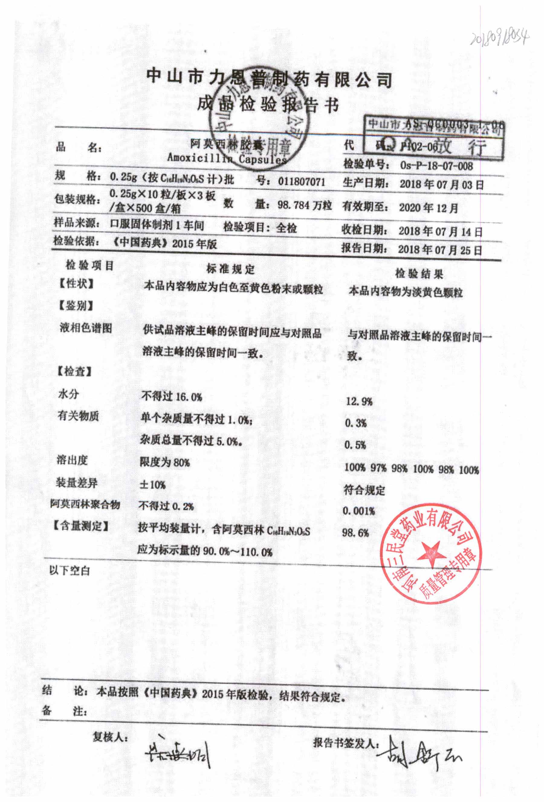 药检报告