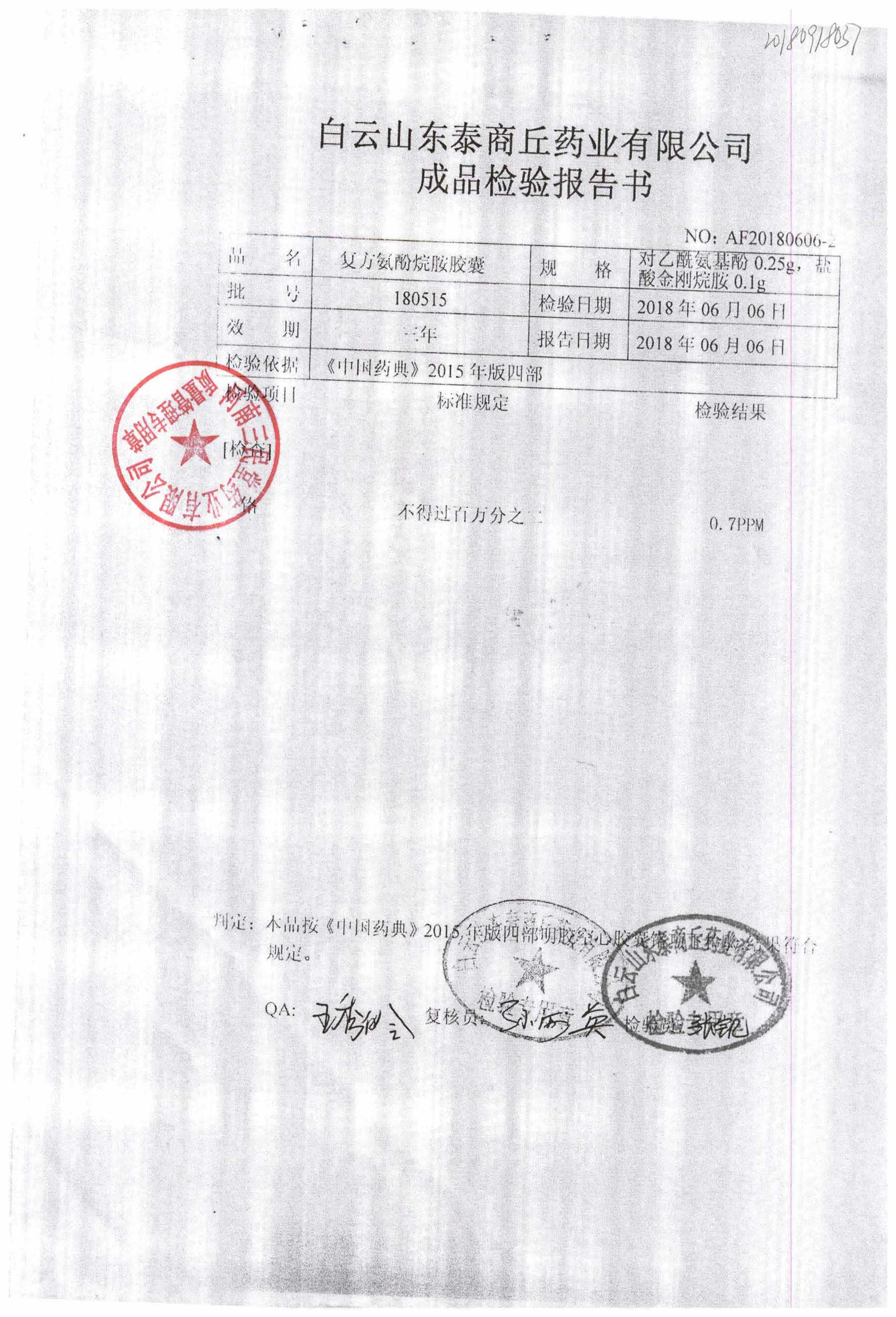 复方氨酚烷胺胶囊 | 16粒 | 180515(2/2) | 查看详情 |