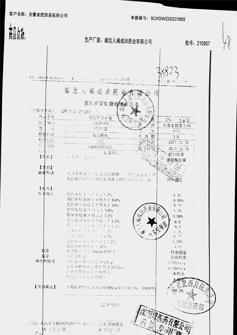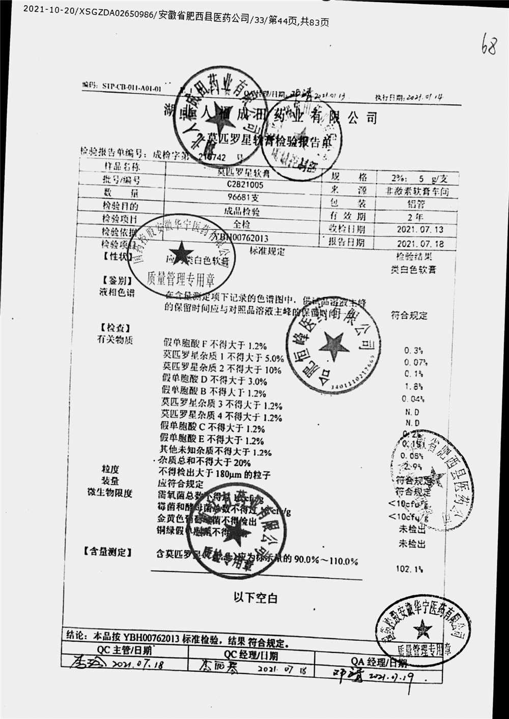 药检报告