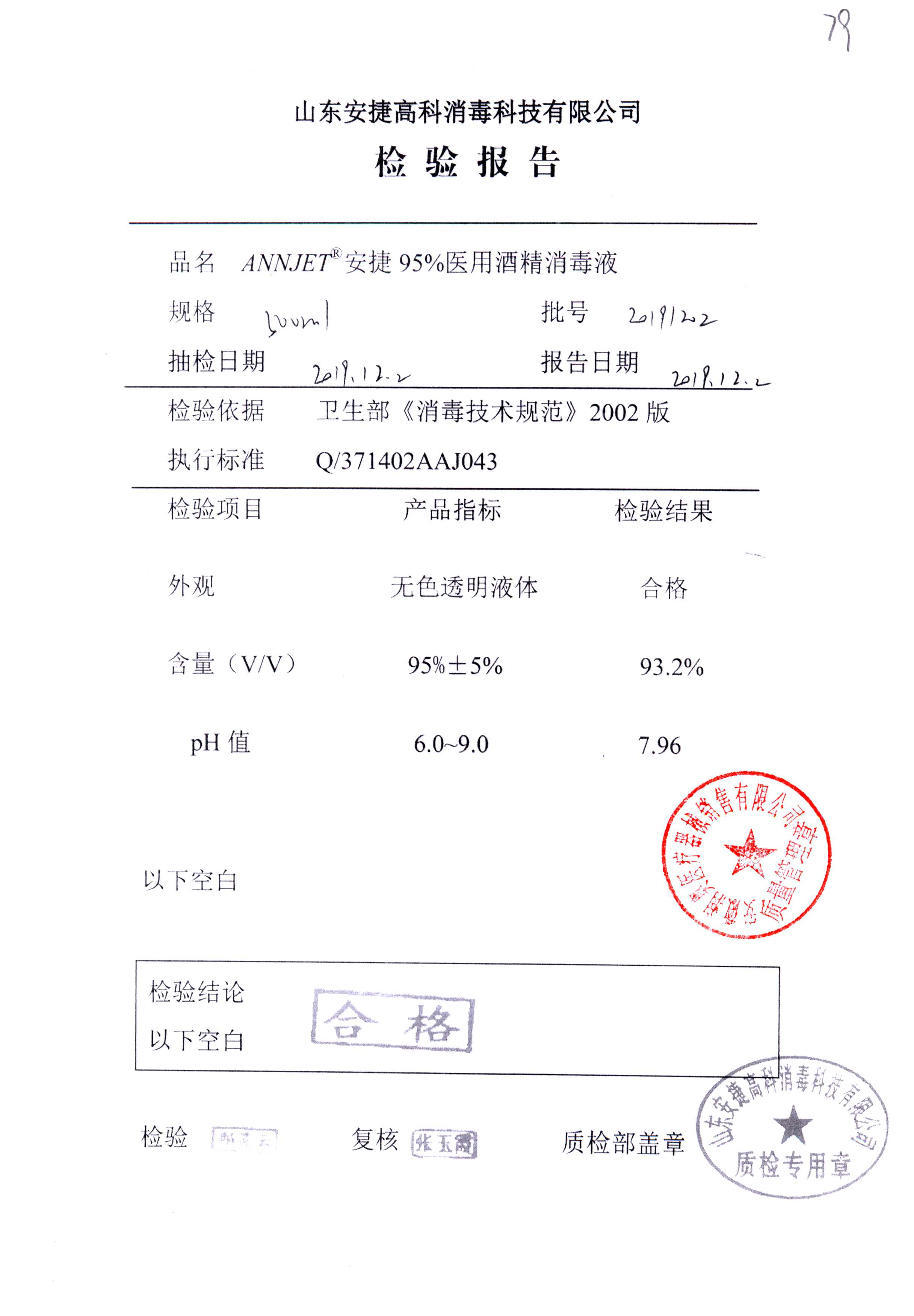 安捷95%医用酒精消毒液 | 500ml | 20191202 | 查看详情 |
