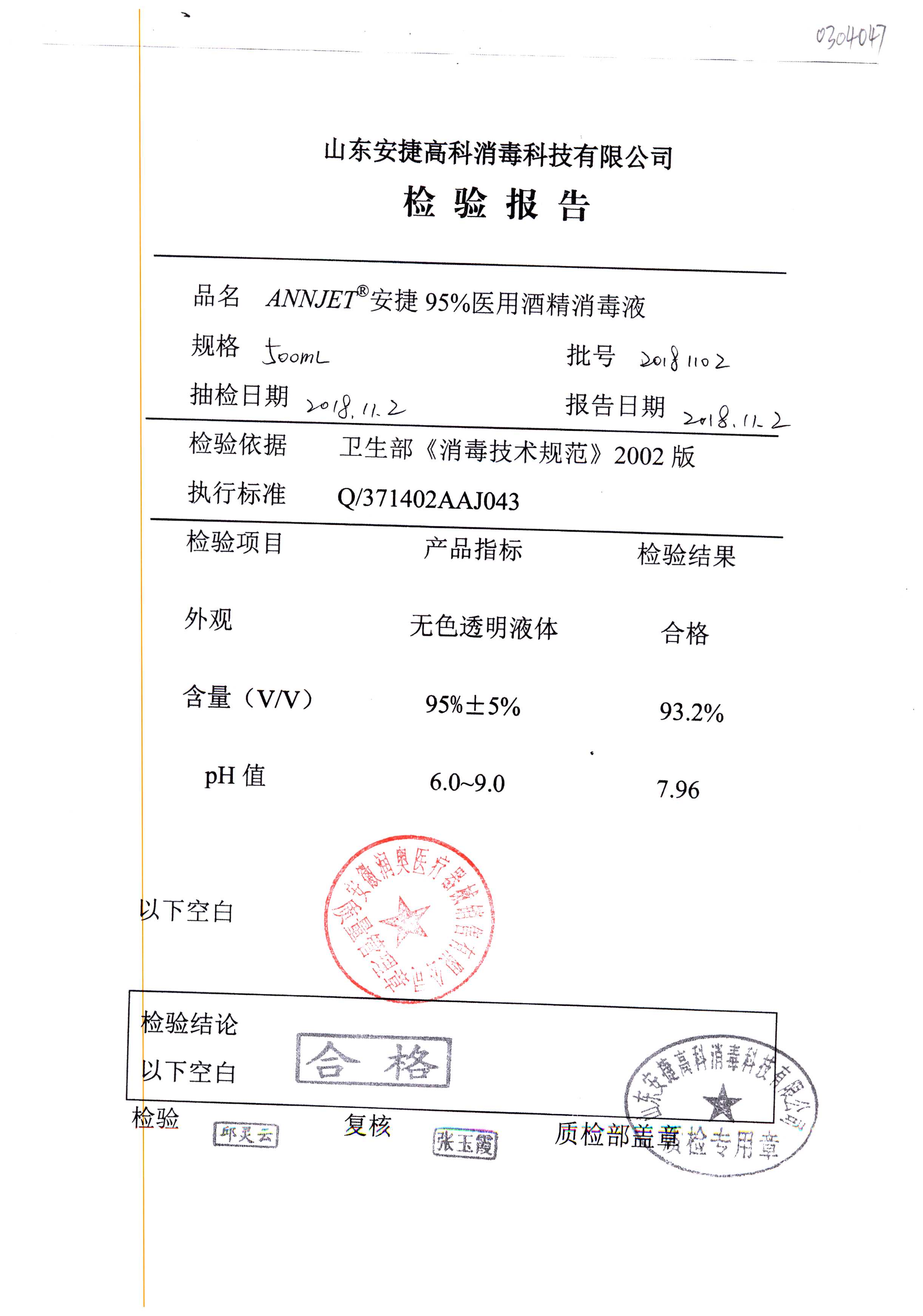 安捷95%医用酒精消毒液 | 500ml | 20181102 | 查看详情 |