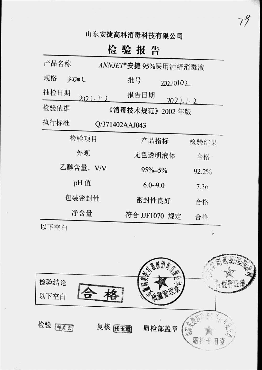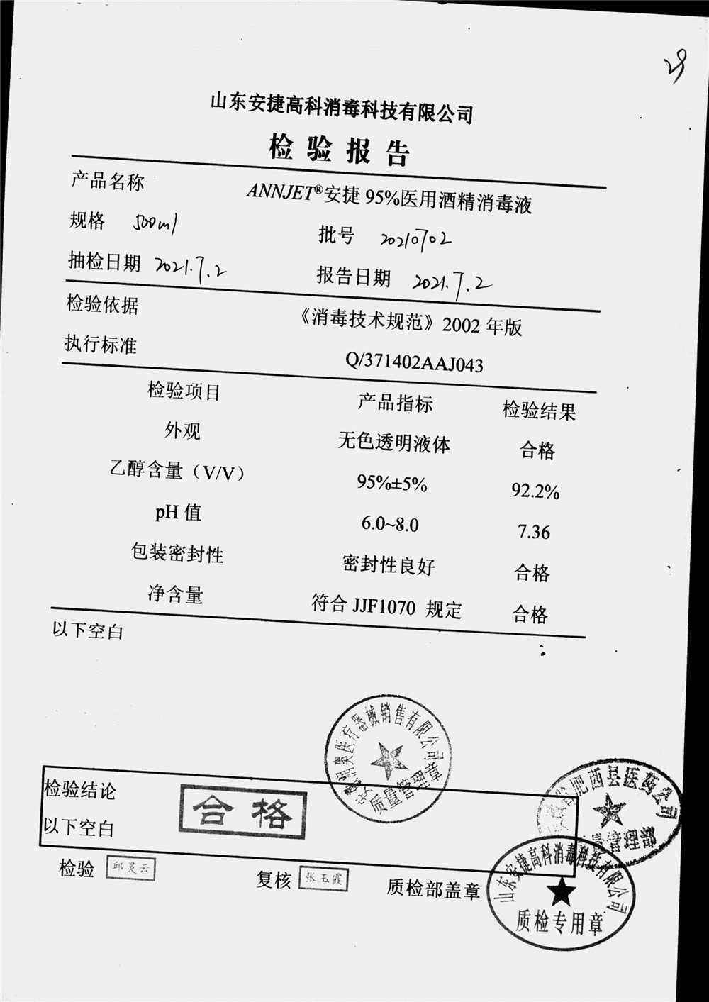 安捷95%医用酒精消毒液 | 500ml | 20210702 | 查看详情 |