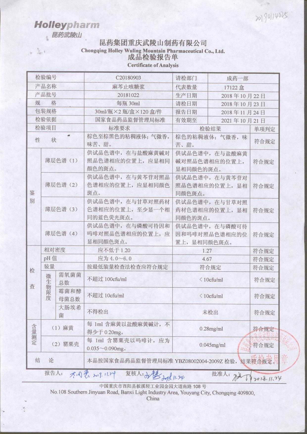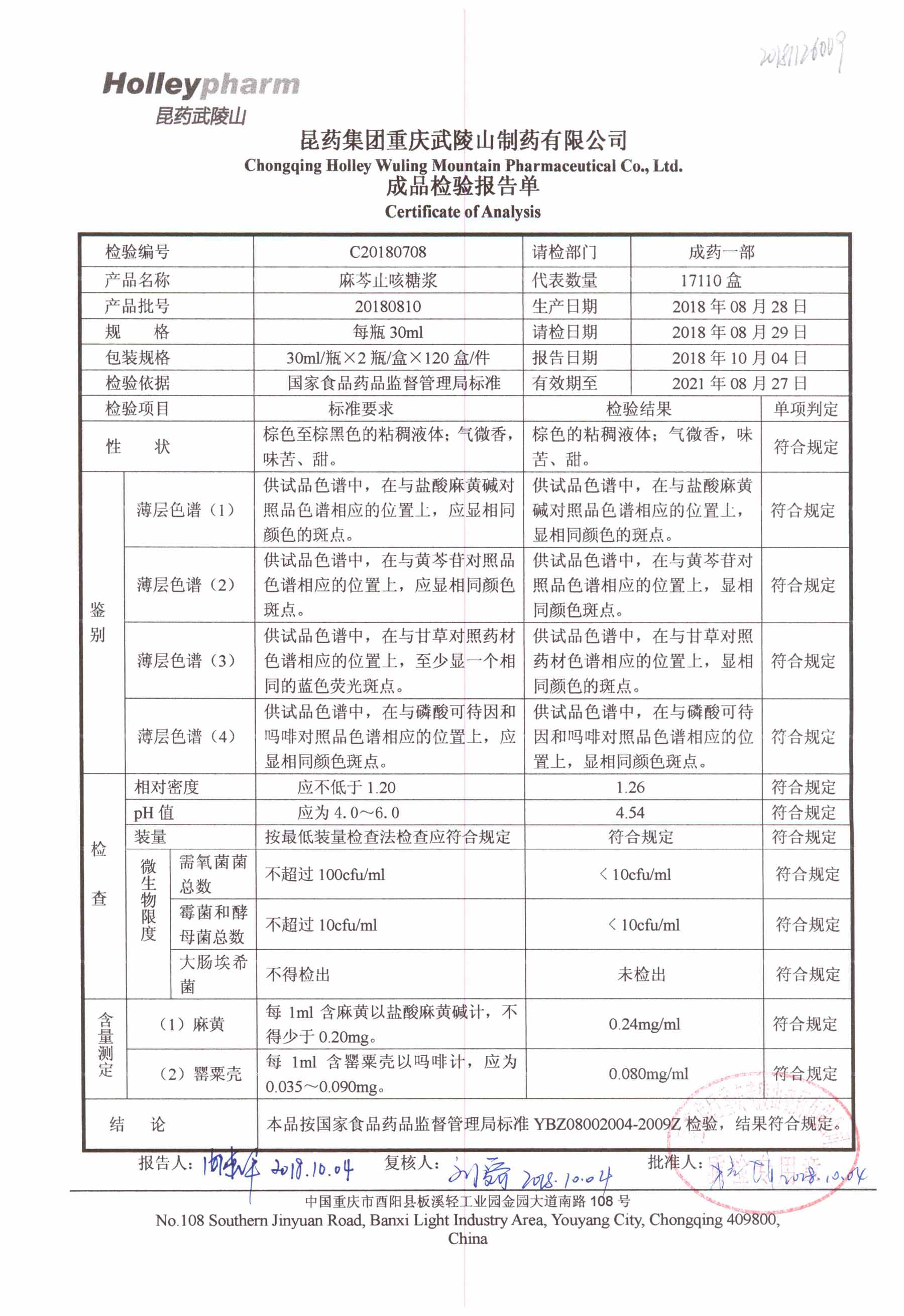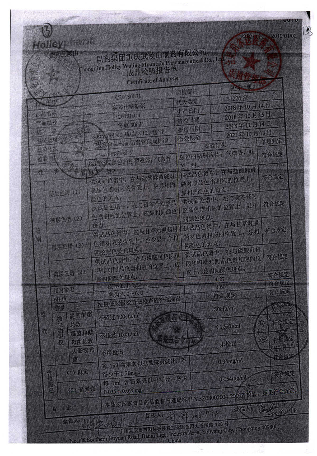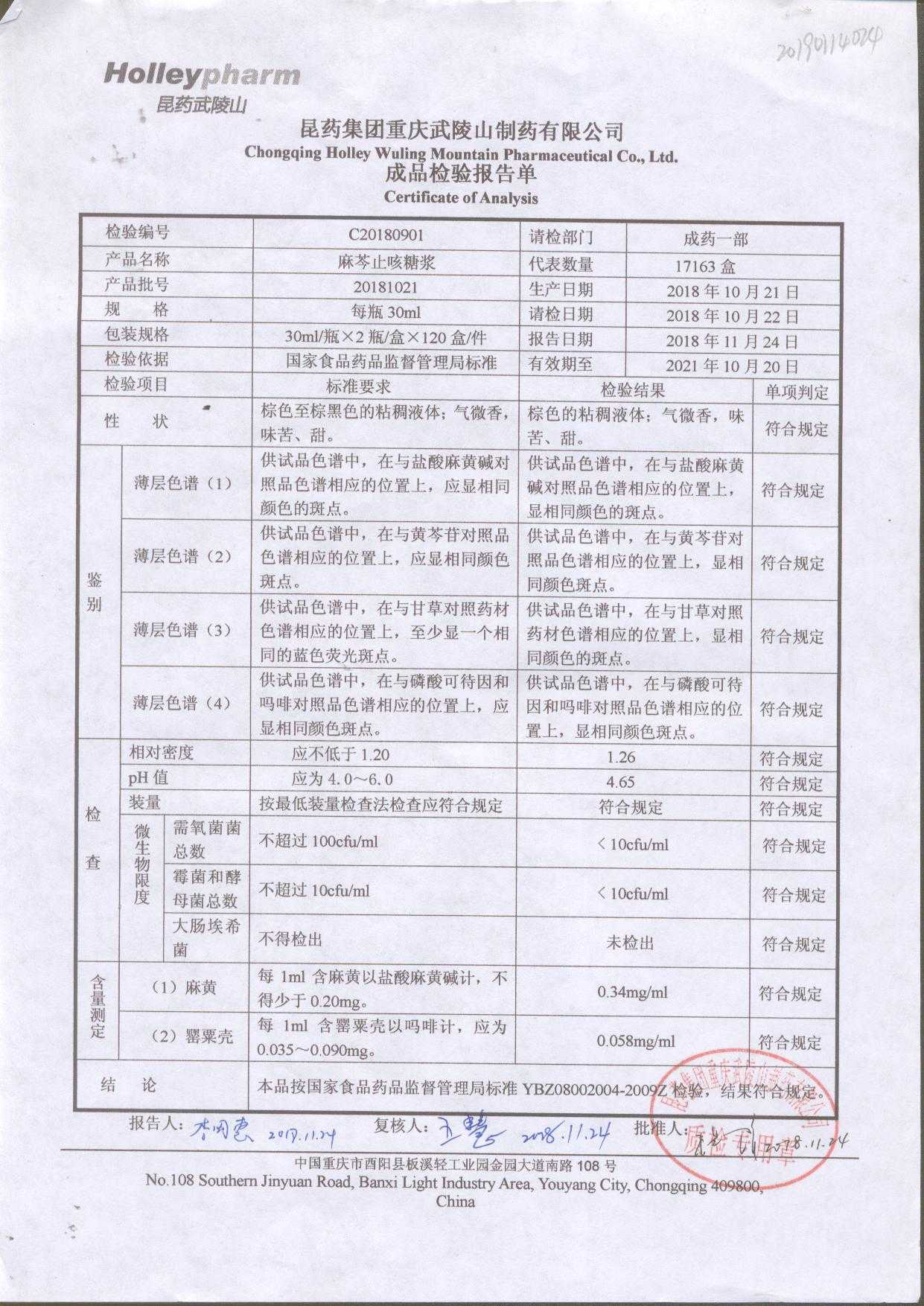 麻芩止咳糖浆 | 30ml | 20181022 | 查看详情 |