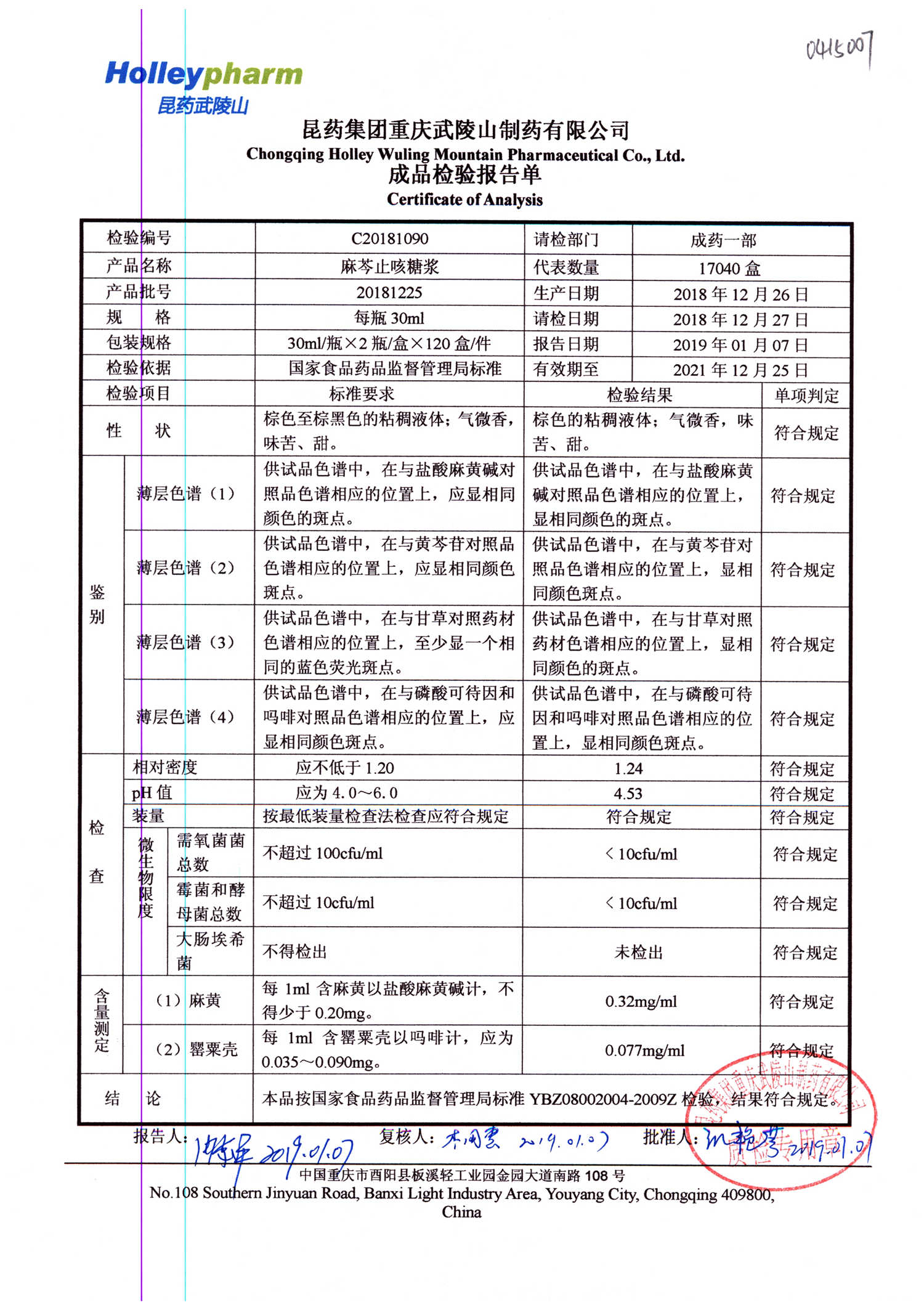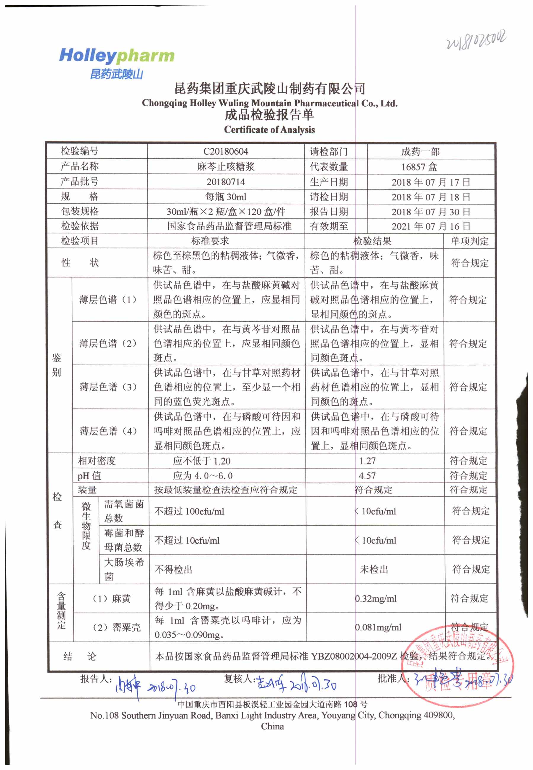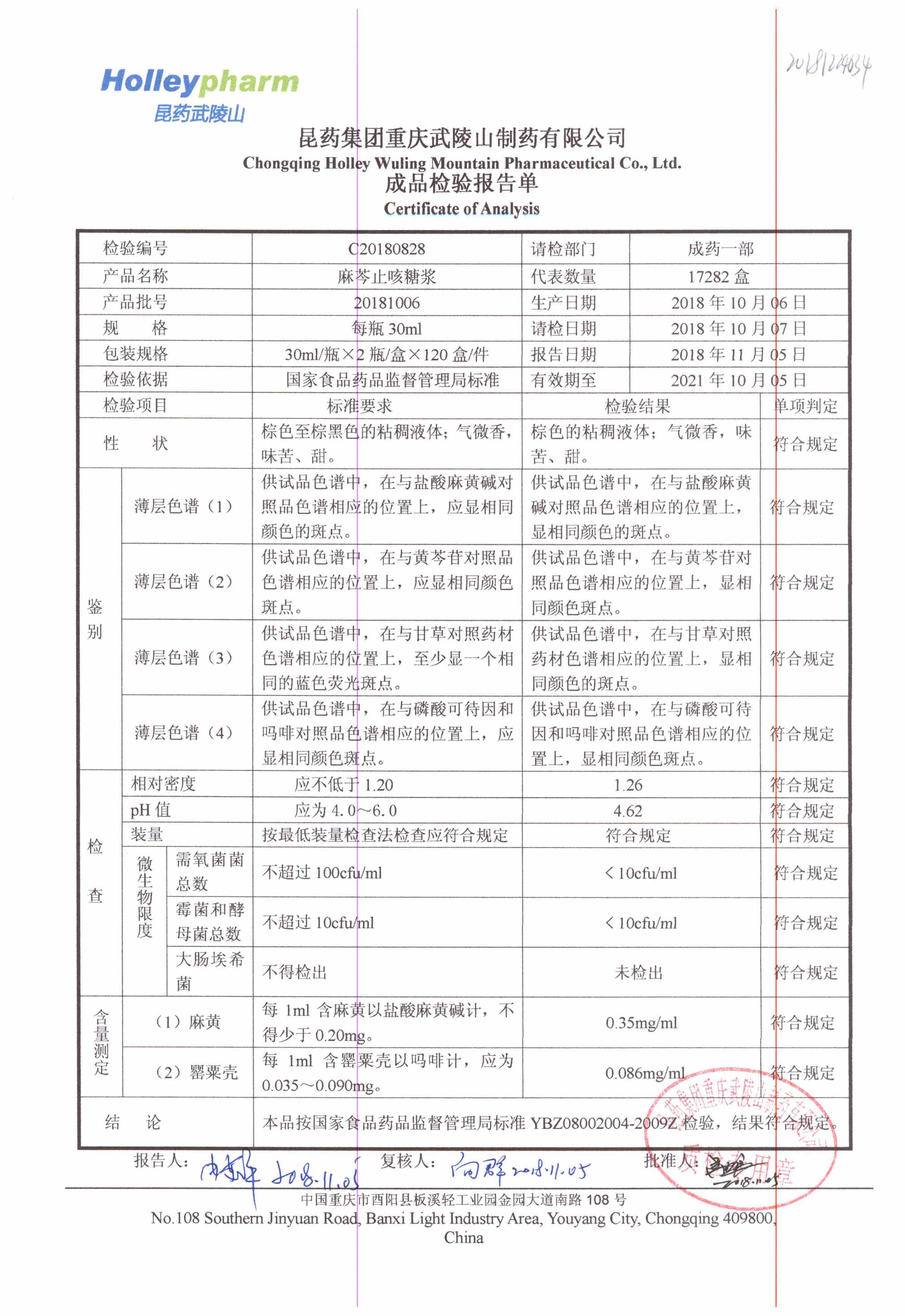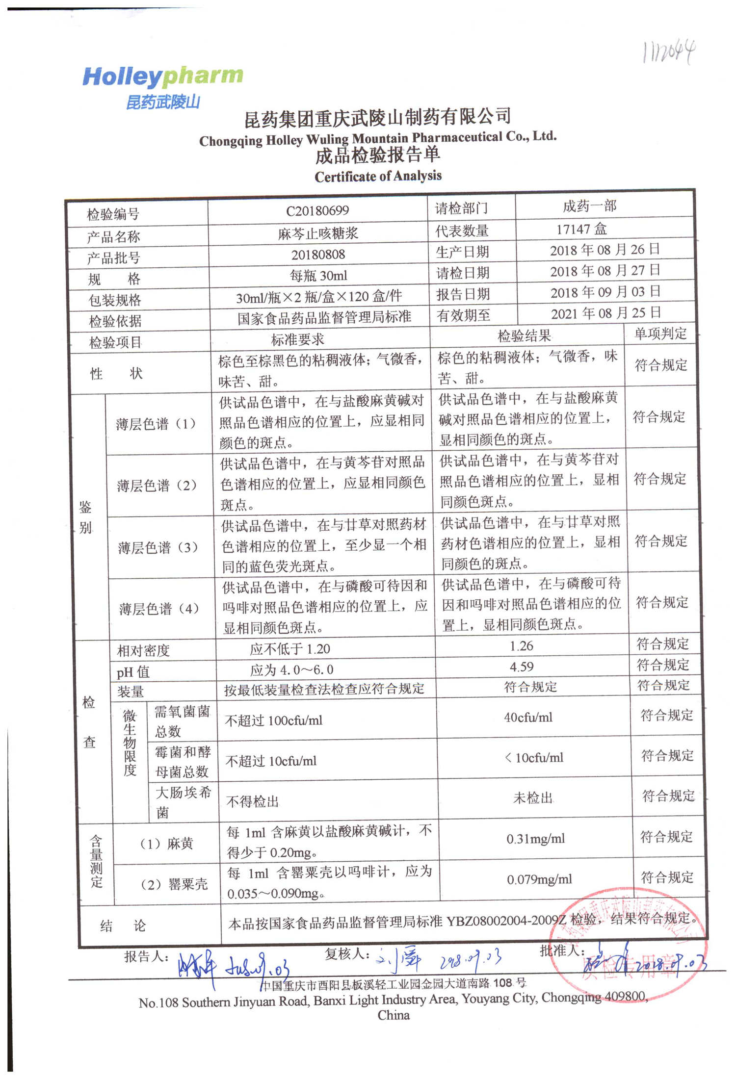 麻芩止咳糖浆 | 30ml | 20181022 | 查看详情 |