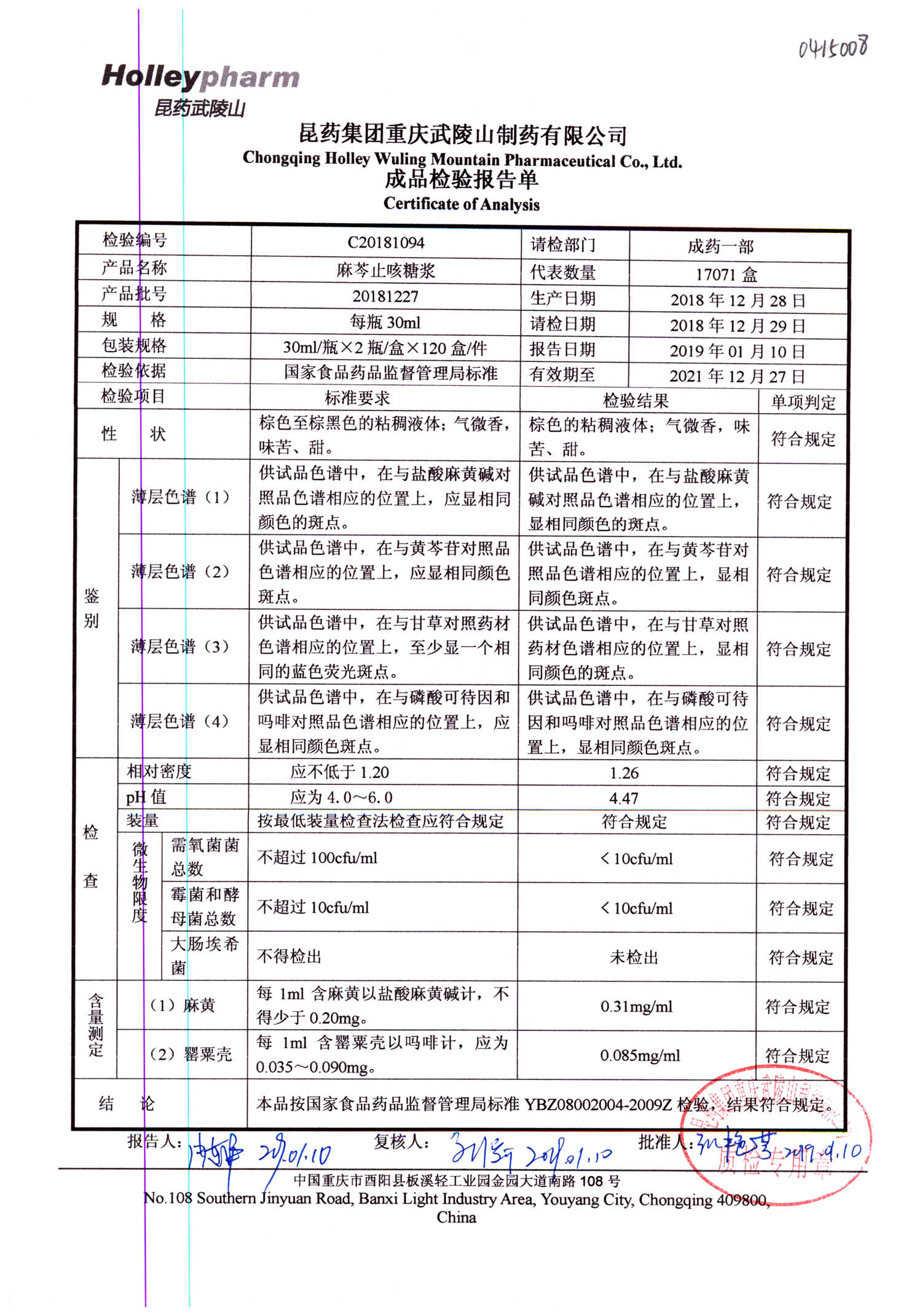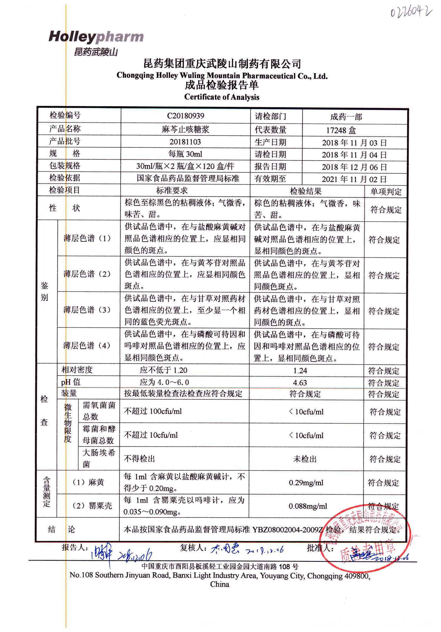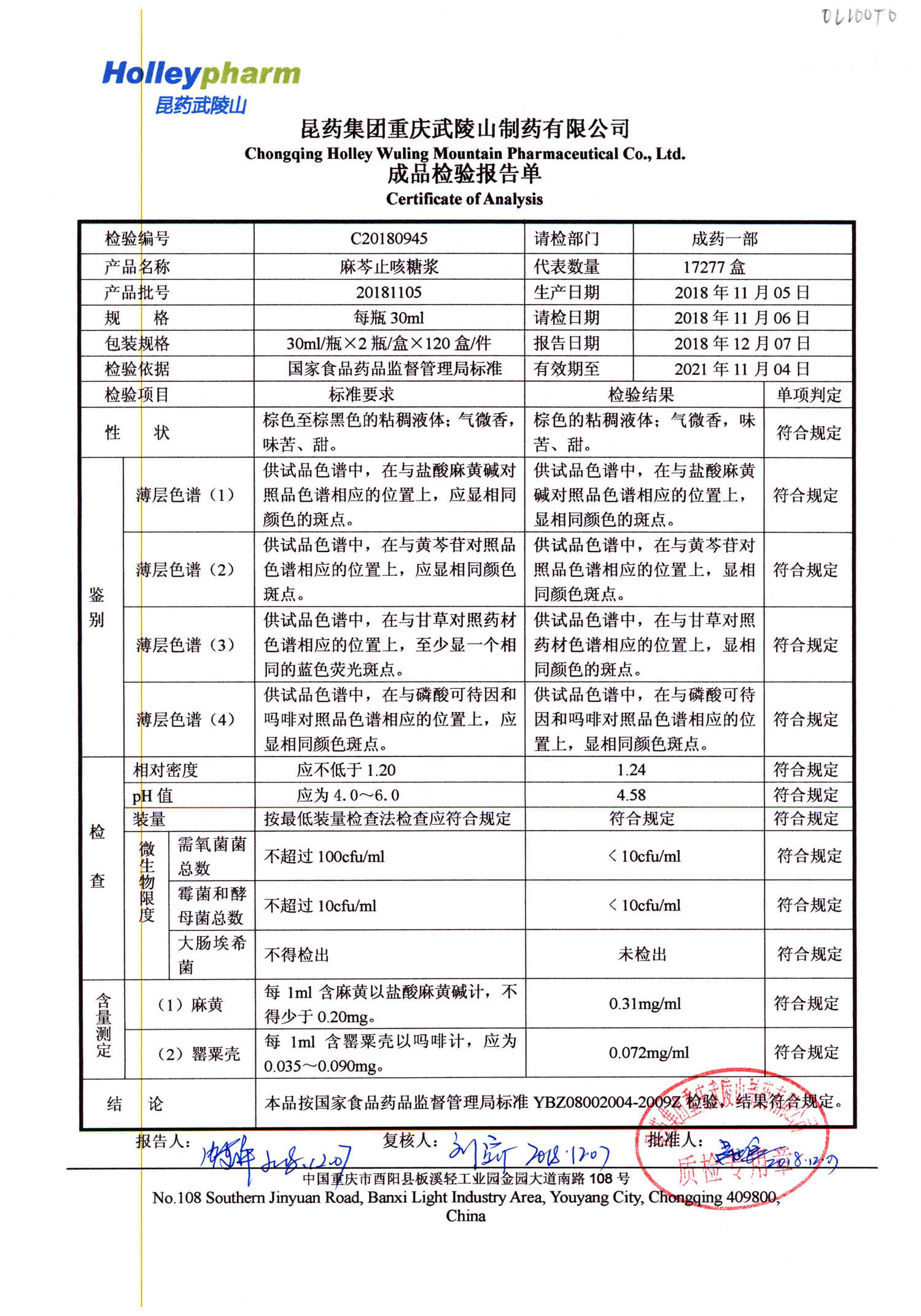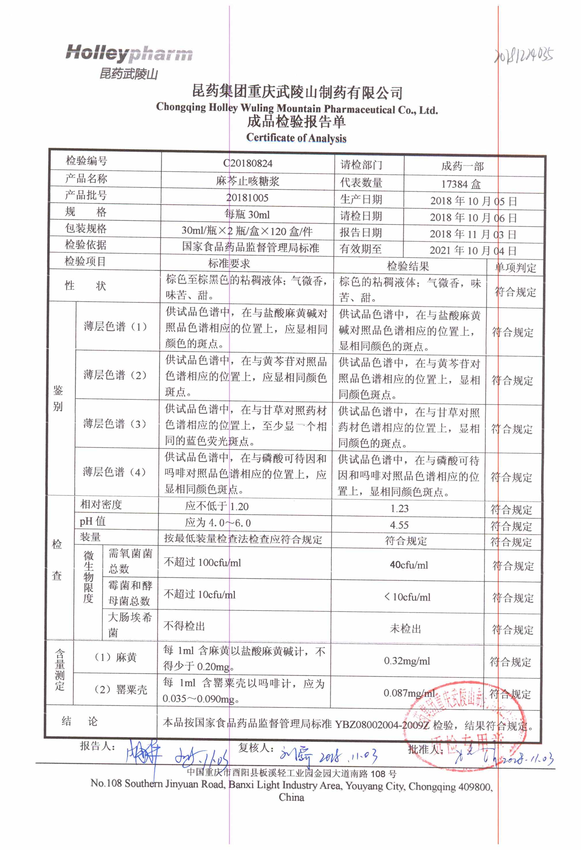 麻芩止咳糖浆 | 30ml | 20181022 | 查看详情 |