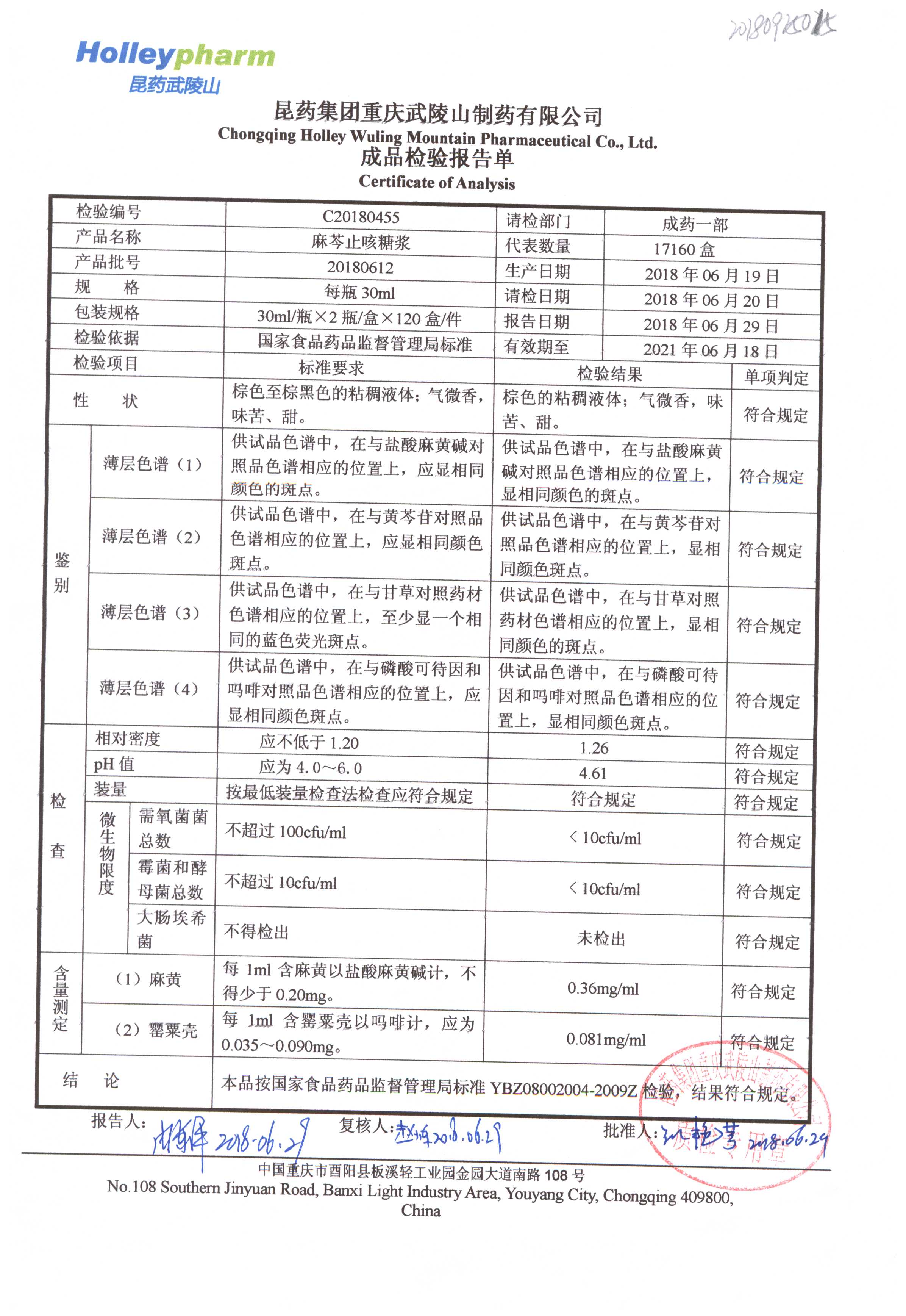 麻芩止咳糖浆 | 30ml | 20180612 | 查看详情 |