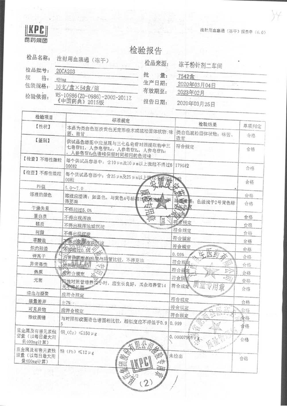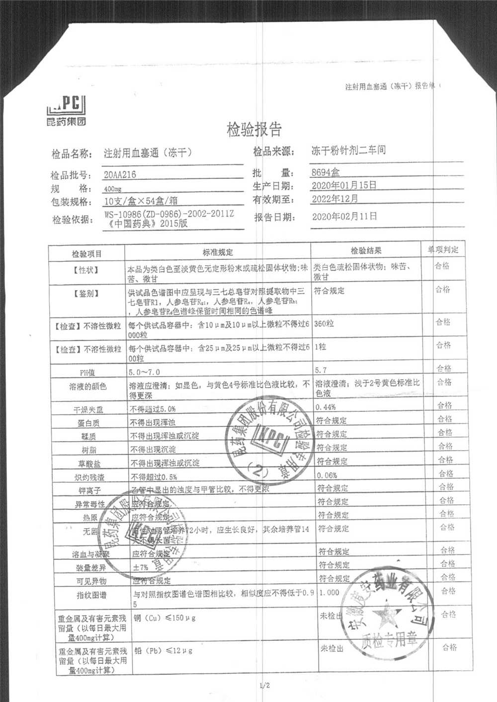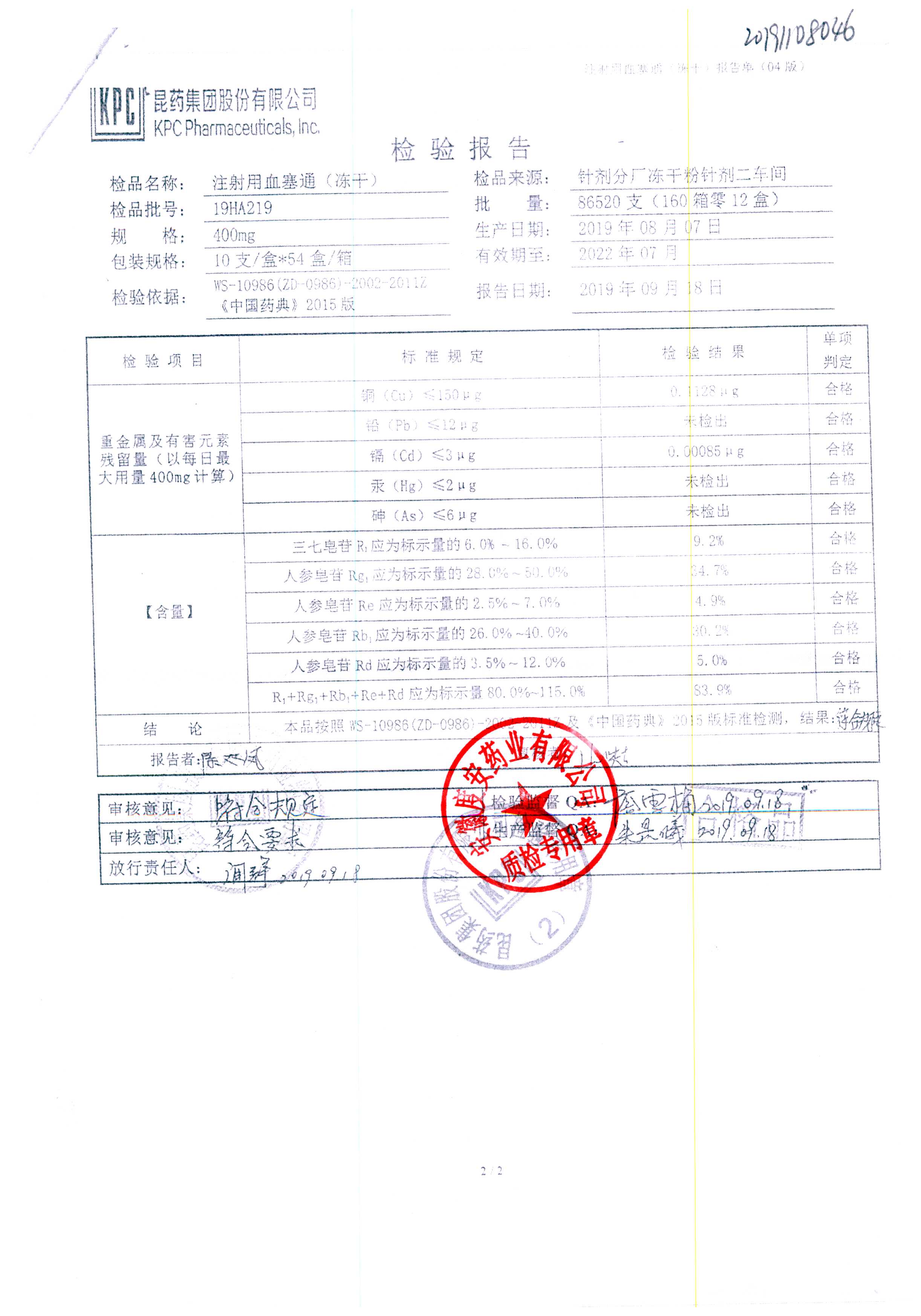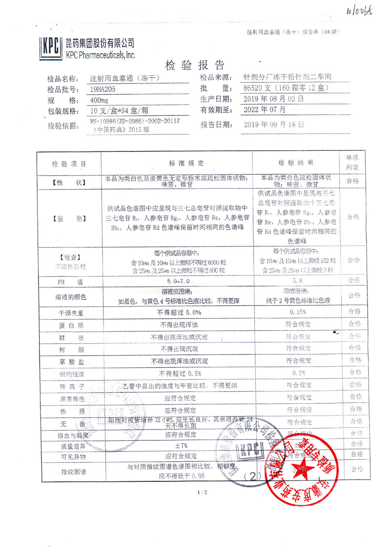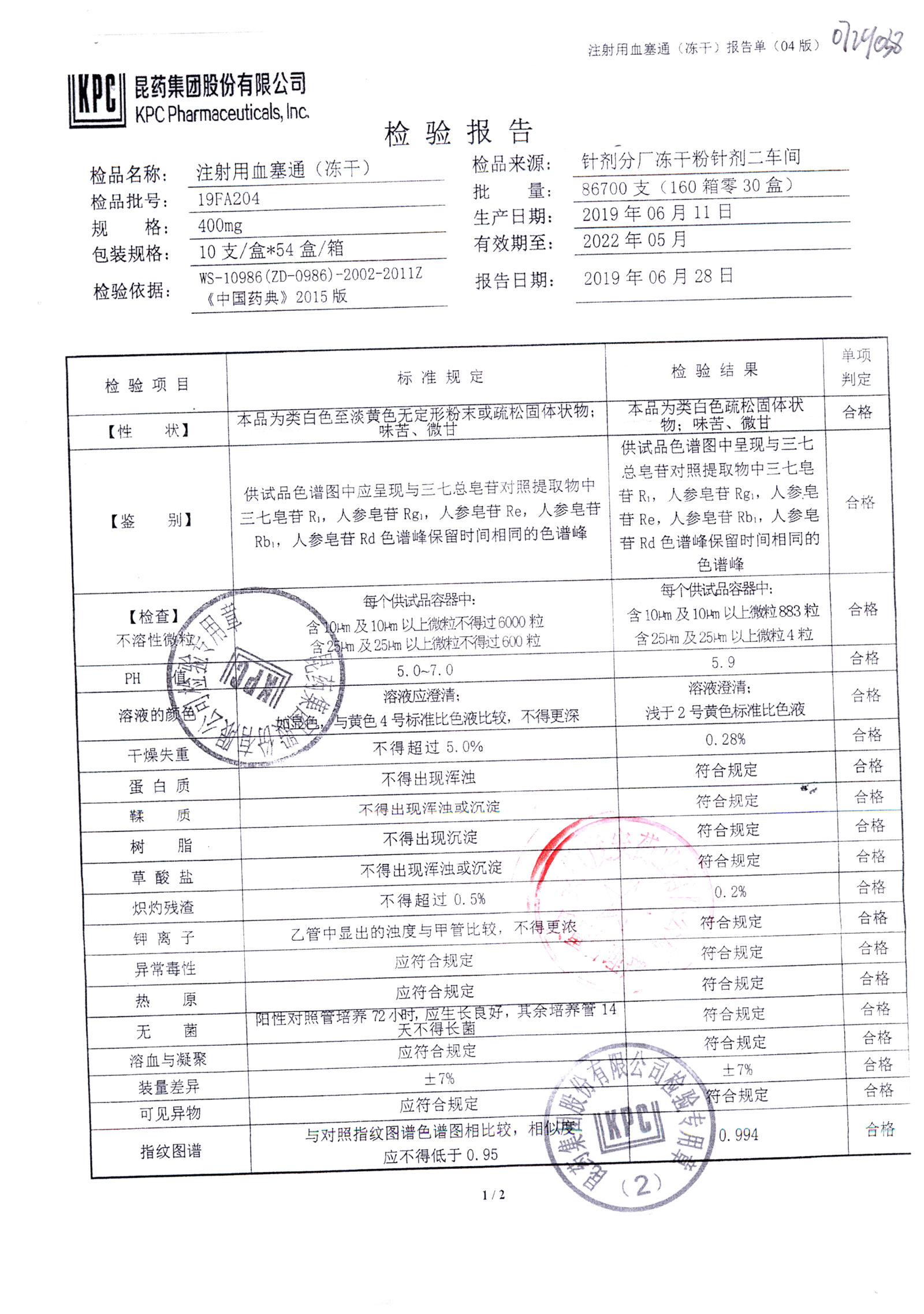 注射用血塞通(冻干) | 400mg | 19FA204(2/2) | 查看详情 |