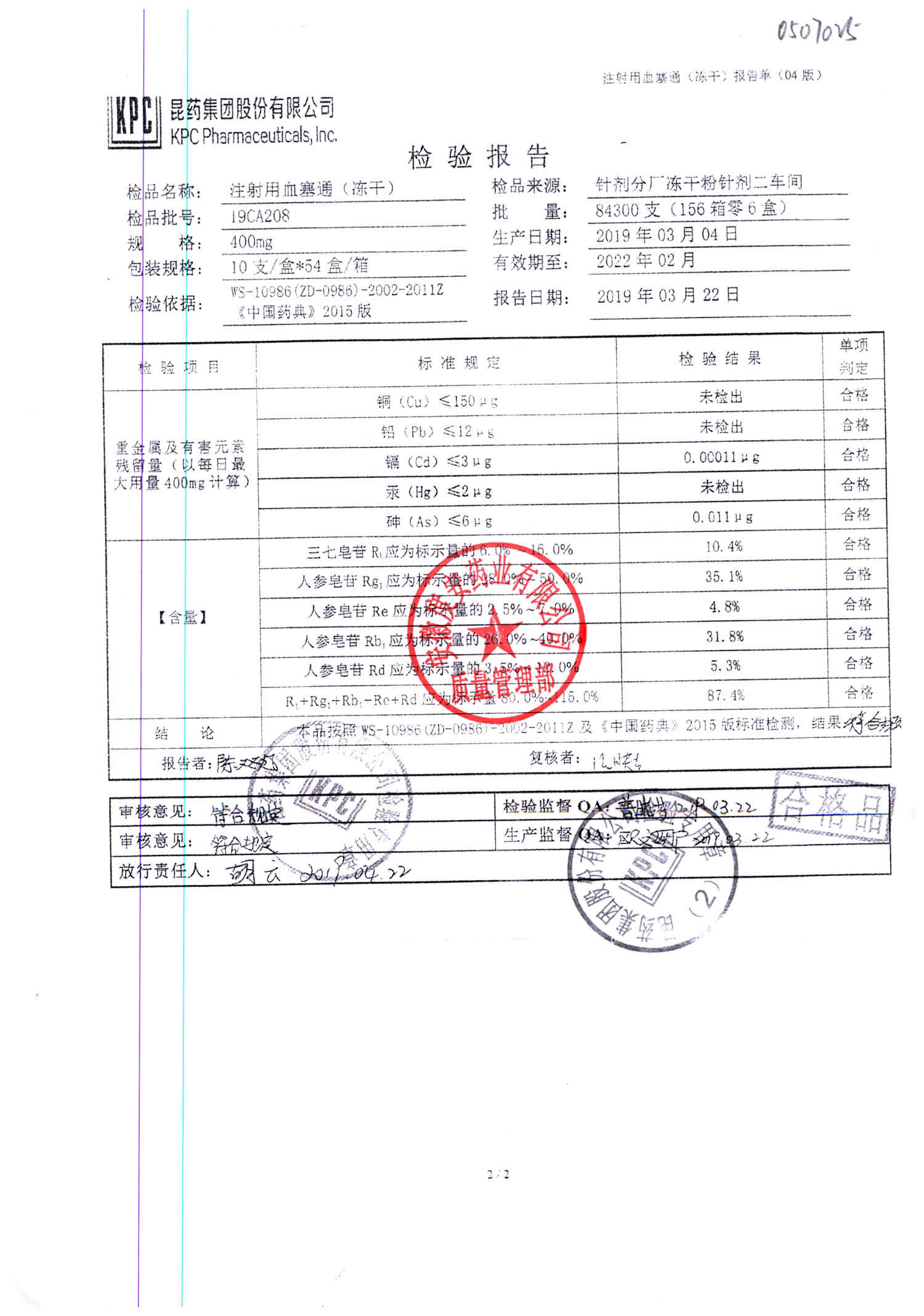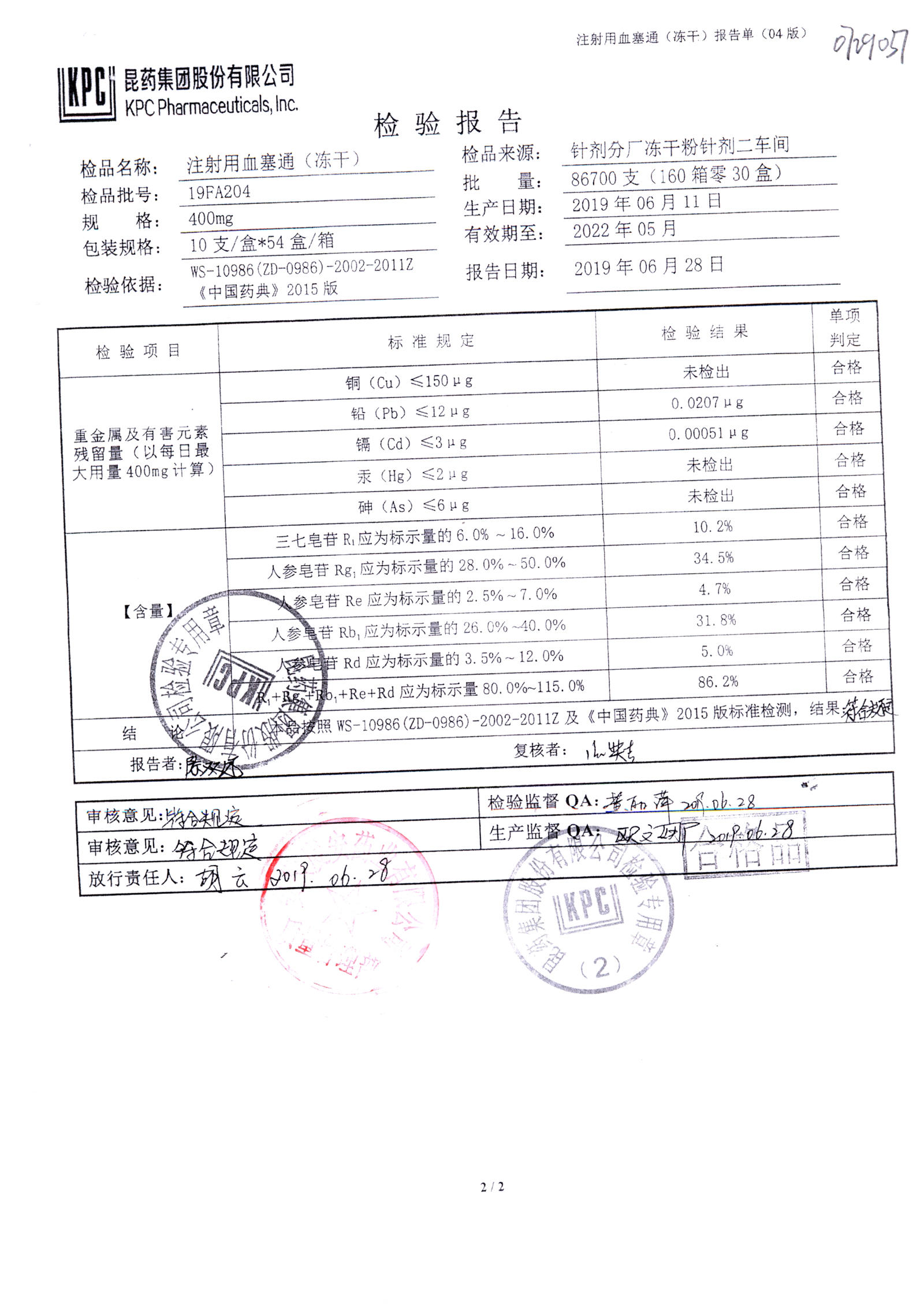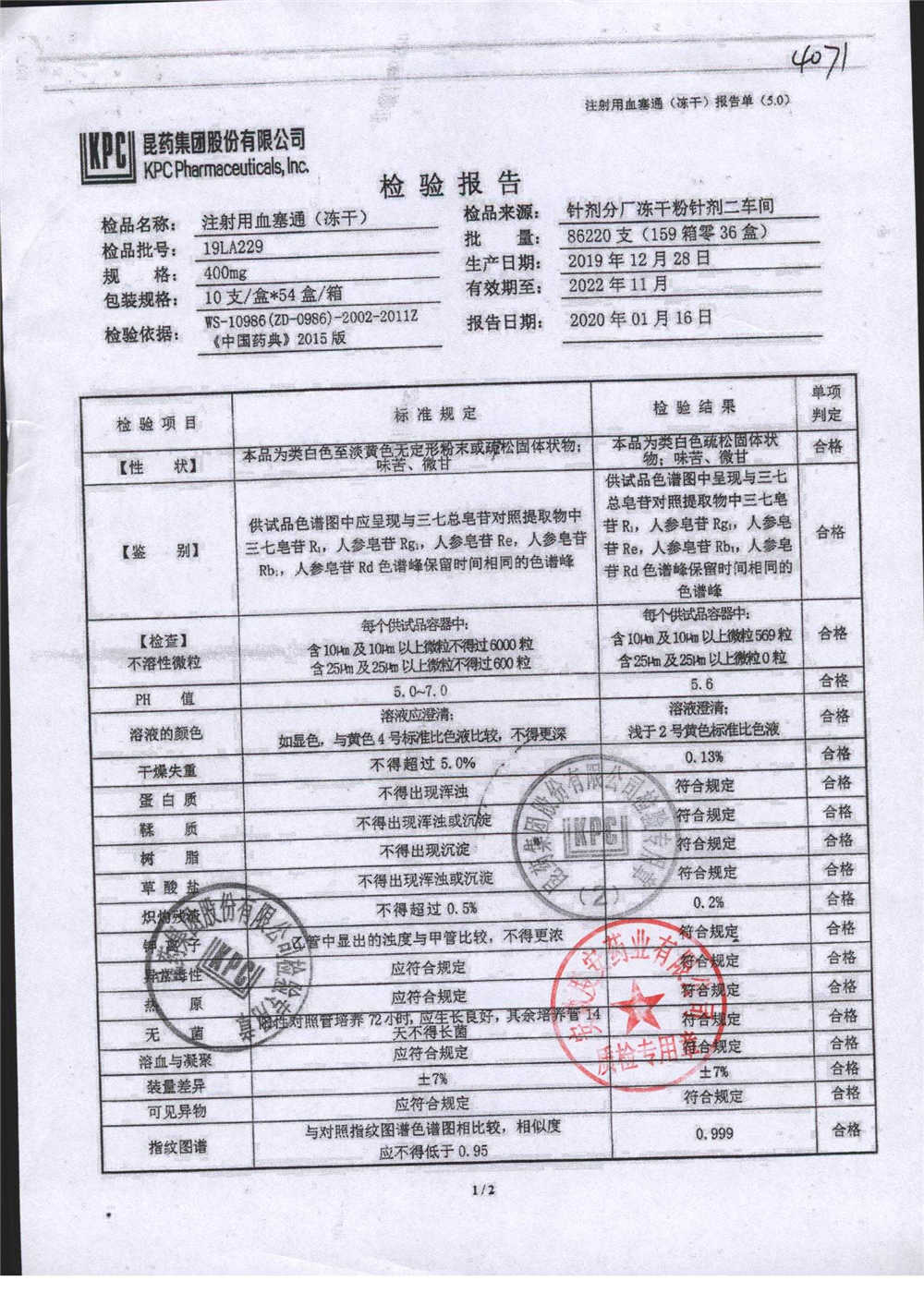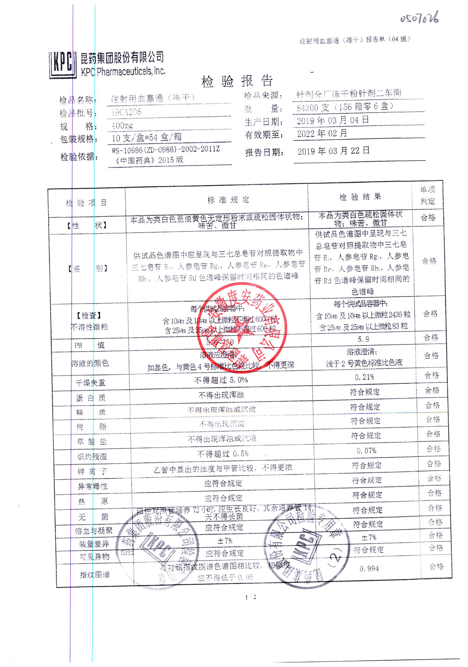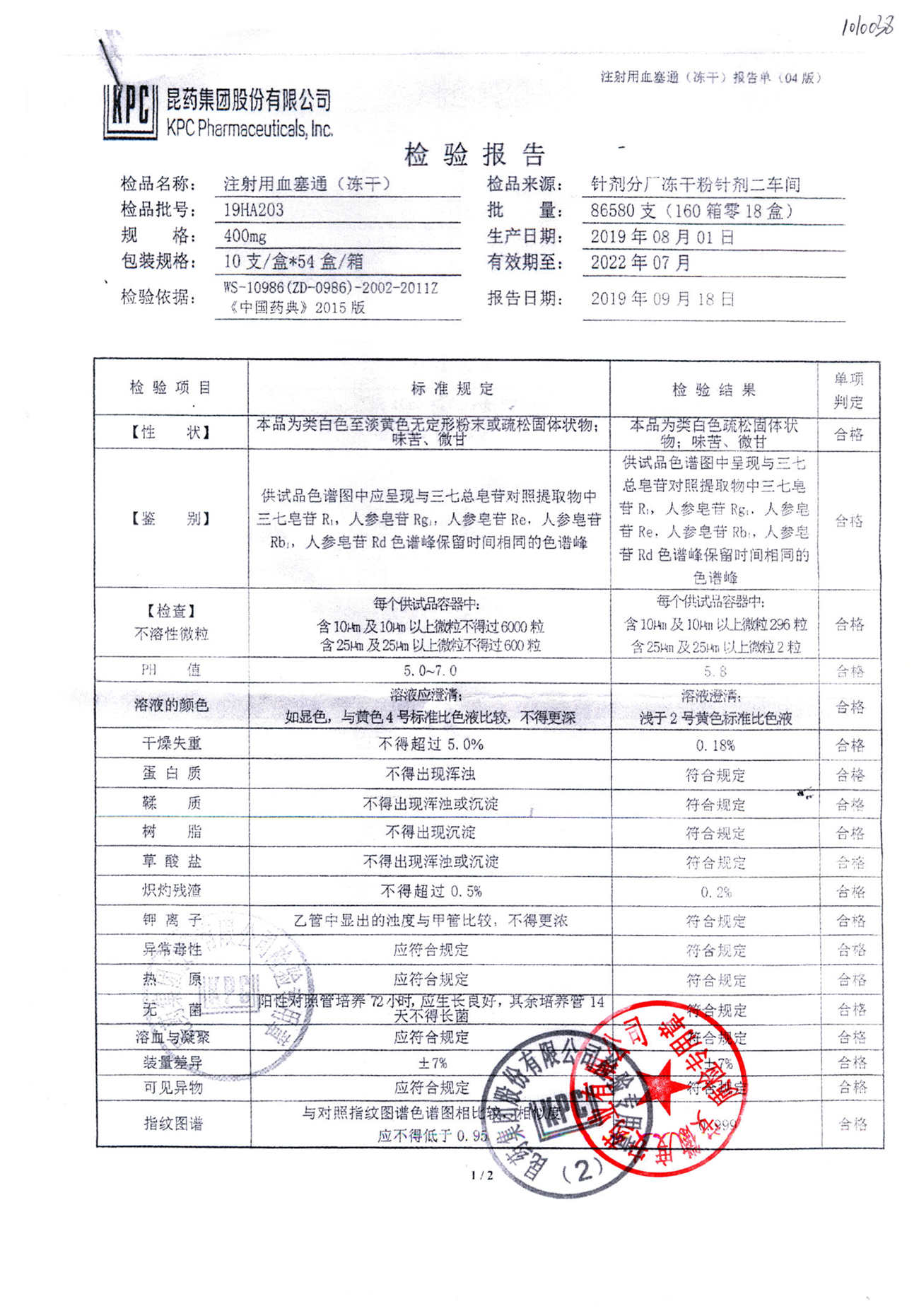 注射用血塞通(冻干) | 400mg | 19FA204(2/2) | 查看详情 |