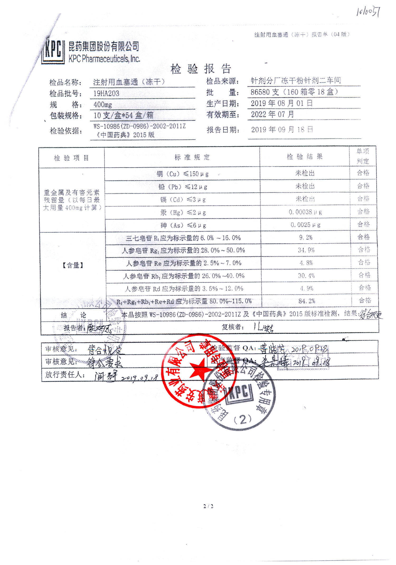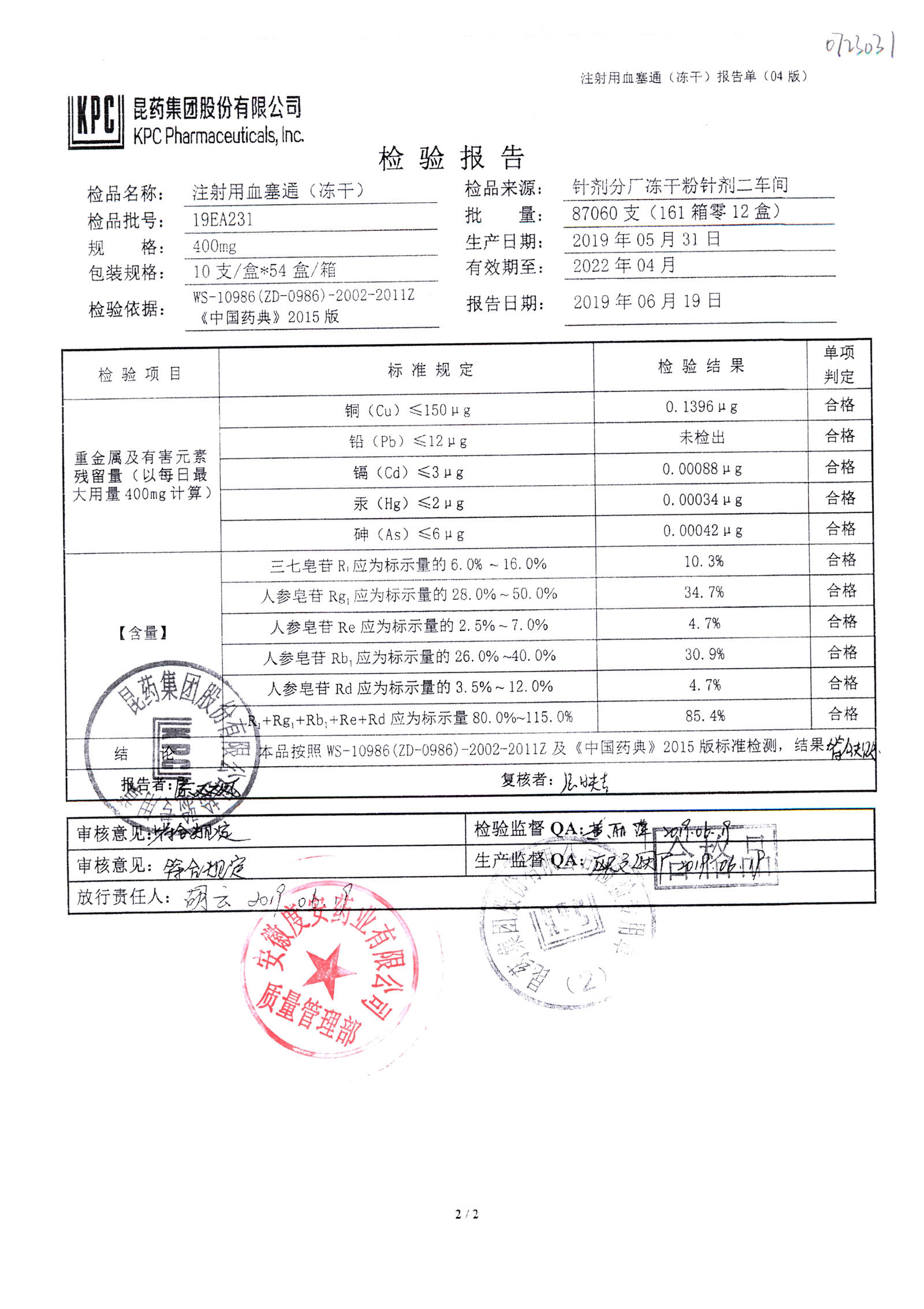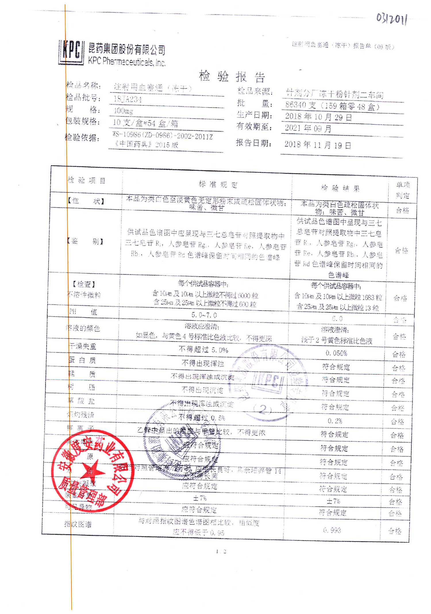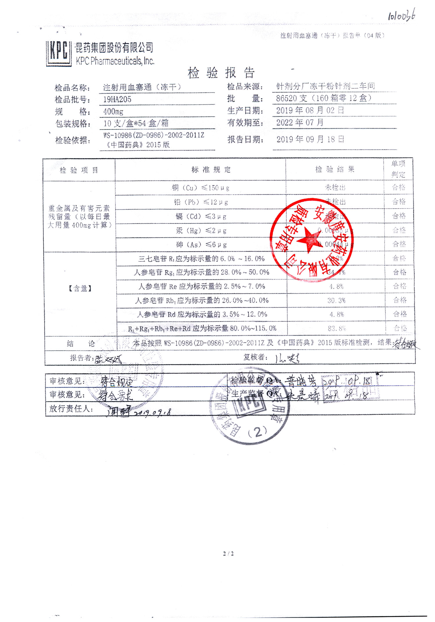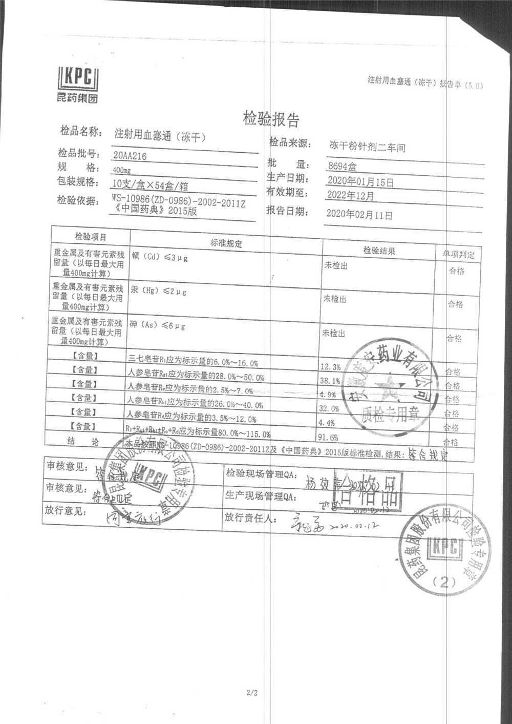 注射用血塞通(冻干) | 400mg | 19FA204(2/2) | 查看详情 |