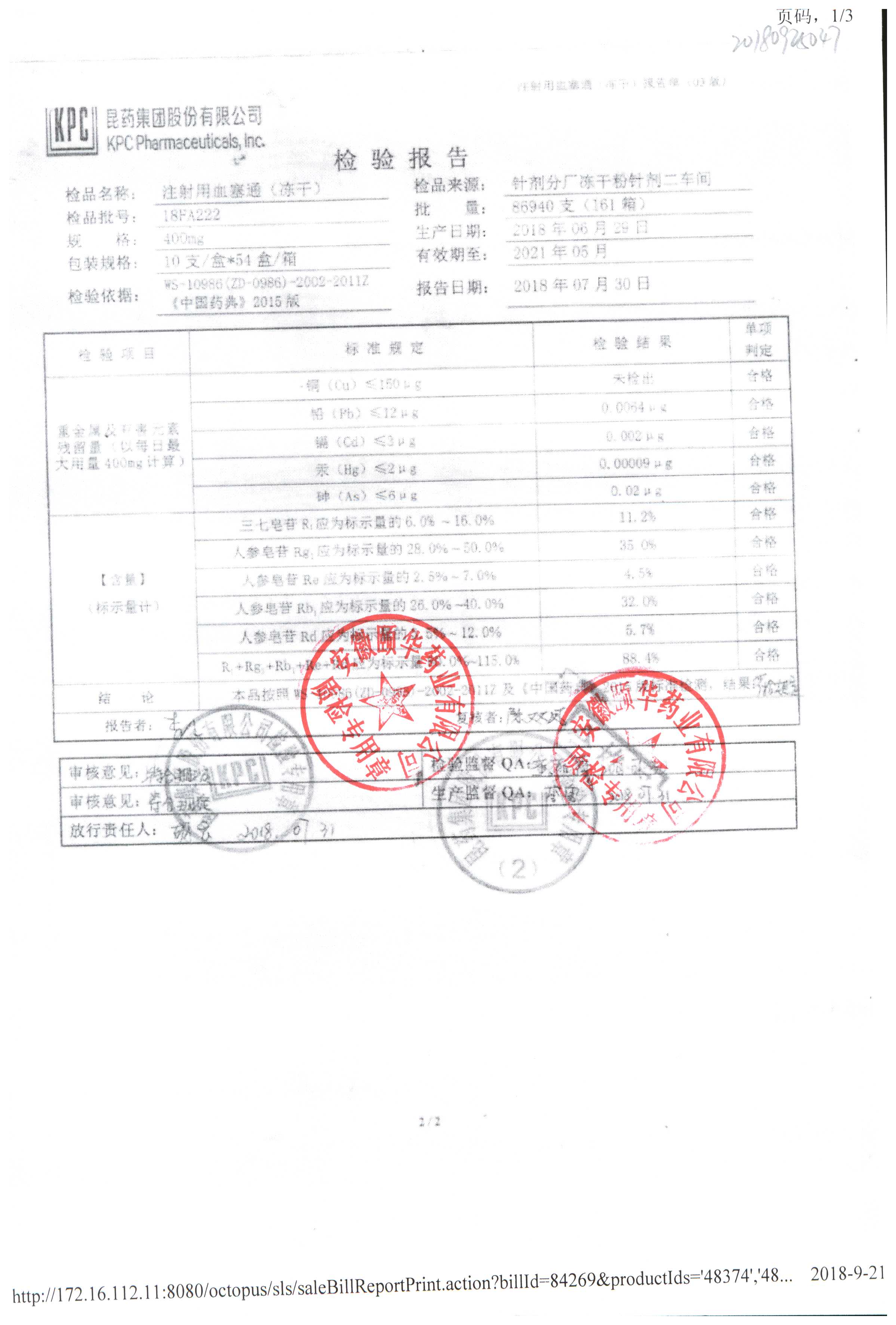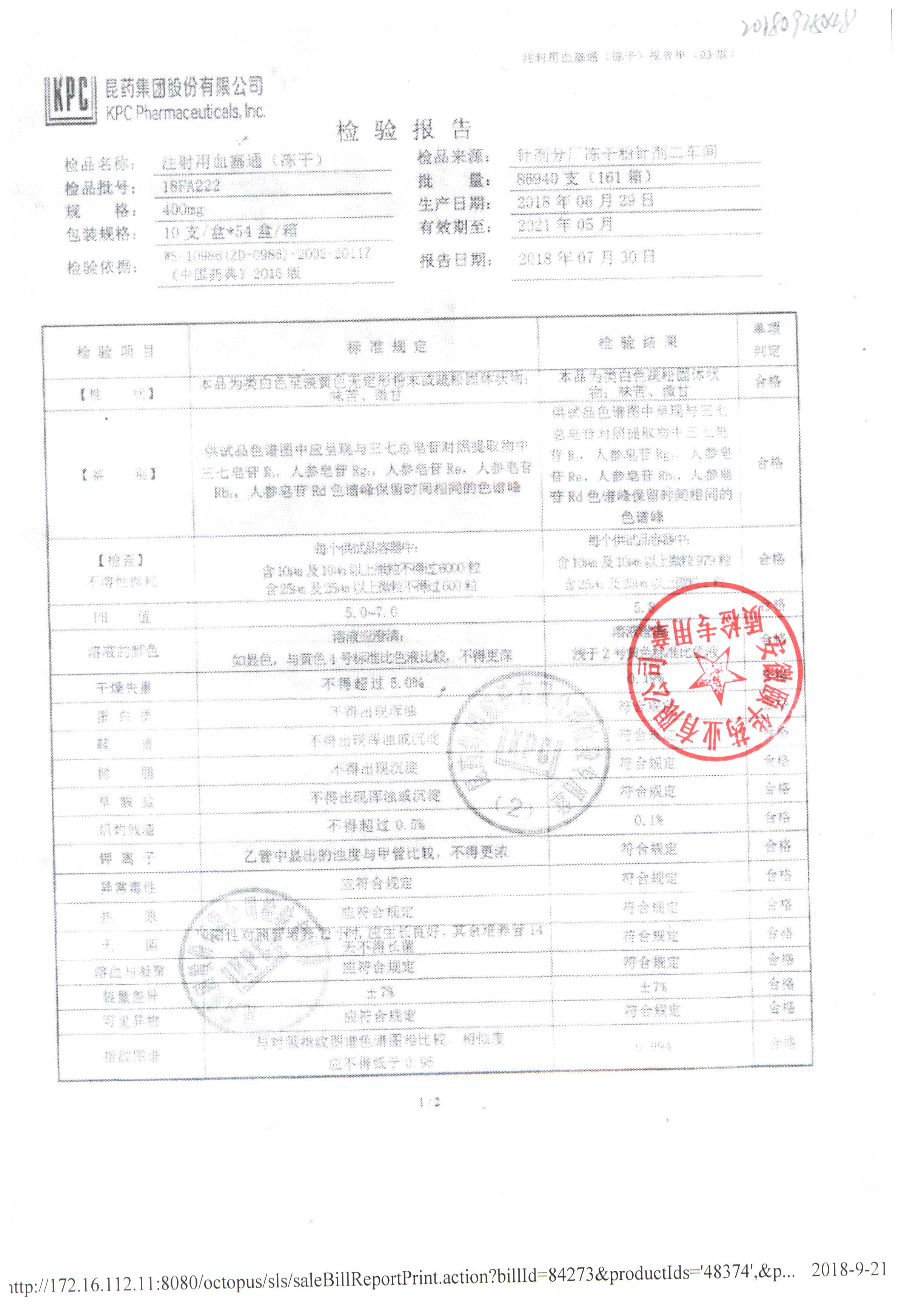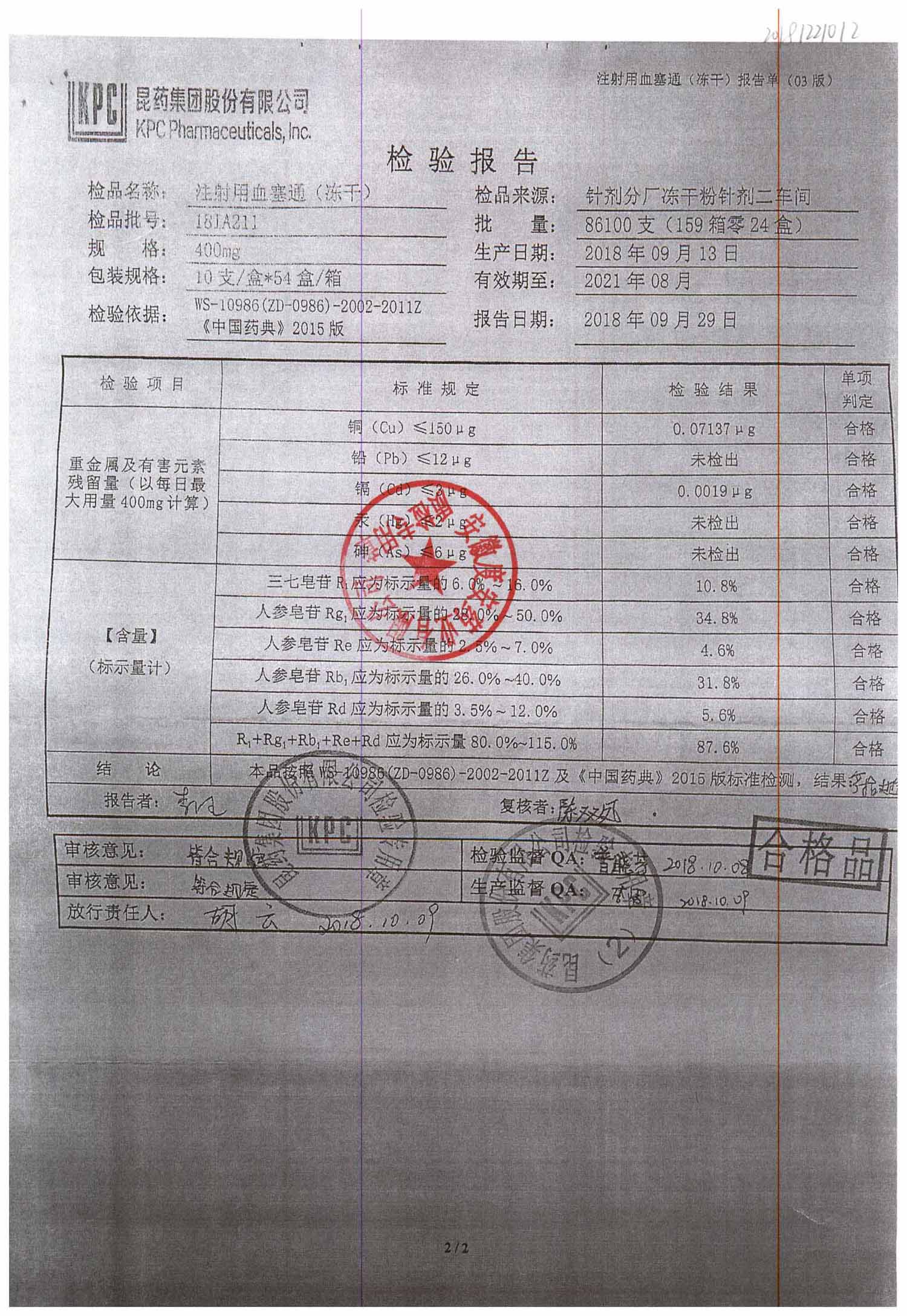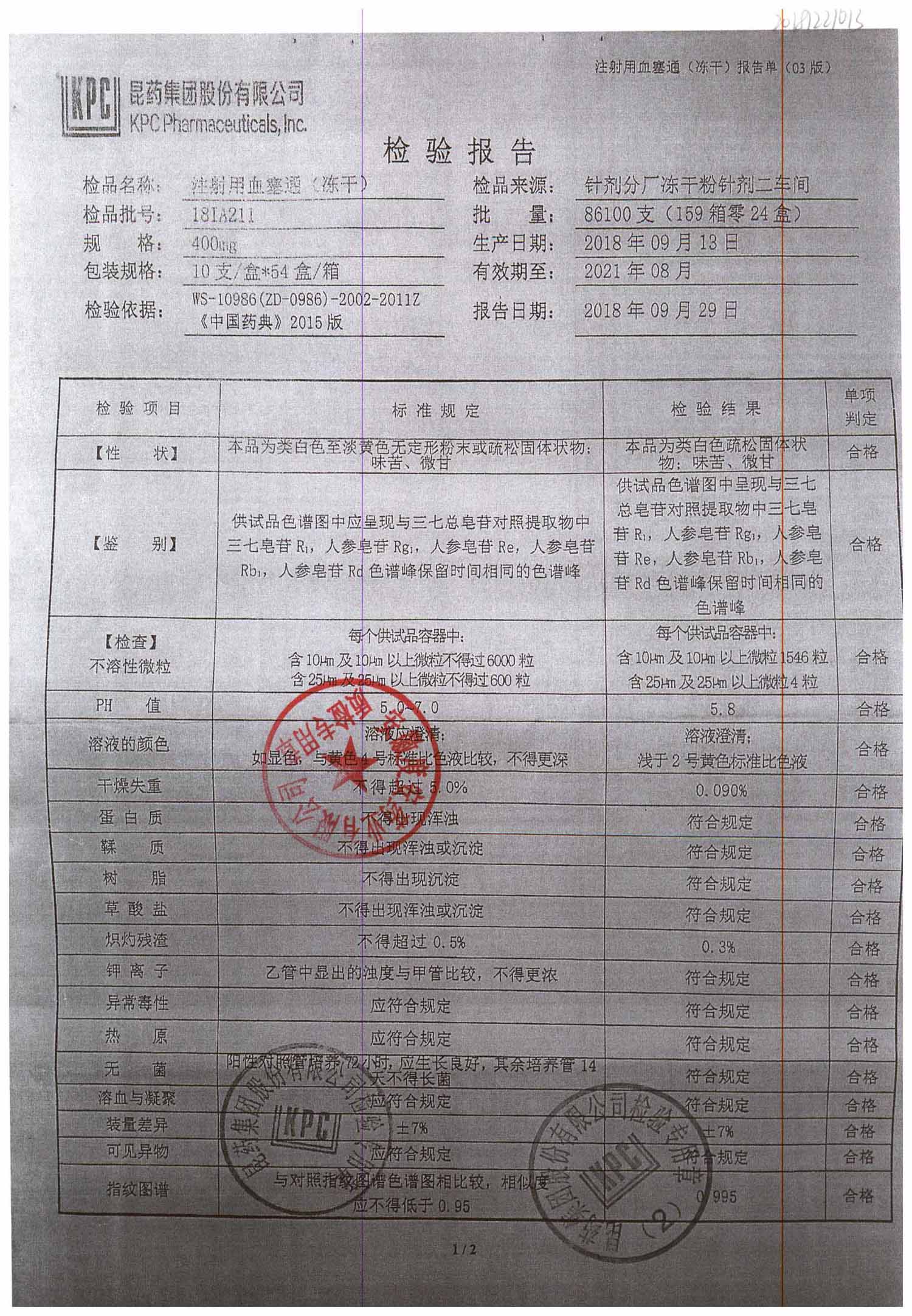 注射用血塞通(冻干) | 400mg | 18IA211(2/2) | 查看详情 |
