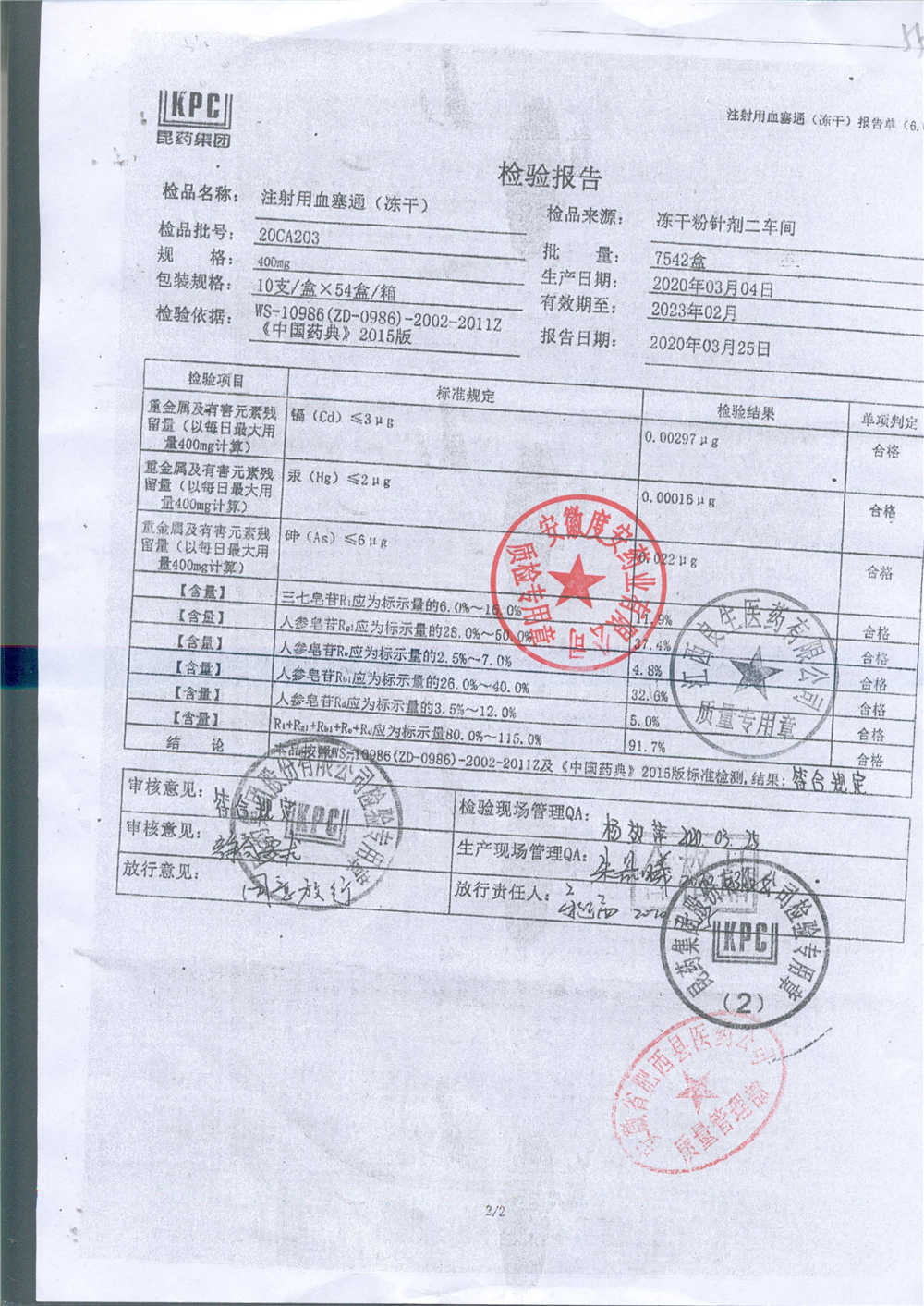 注射用血塞通(冻干) | 400mg | 20CA203(2/2) | 查看详情 |