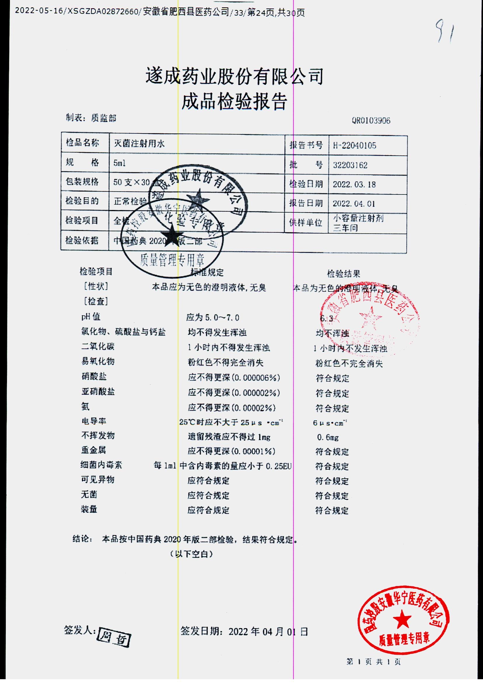 灭菌注射用水 | 5ml | 32201162 | 查看详情 |