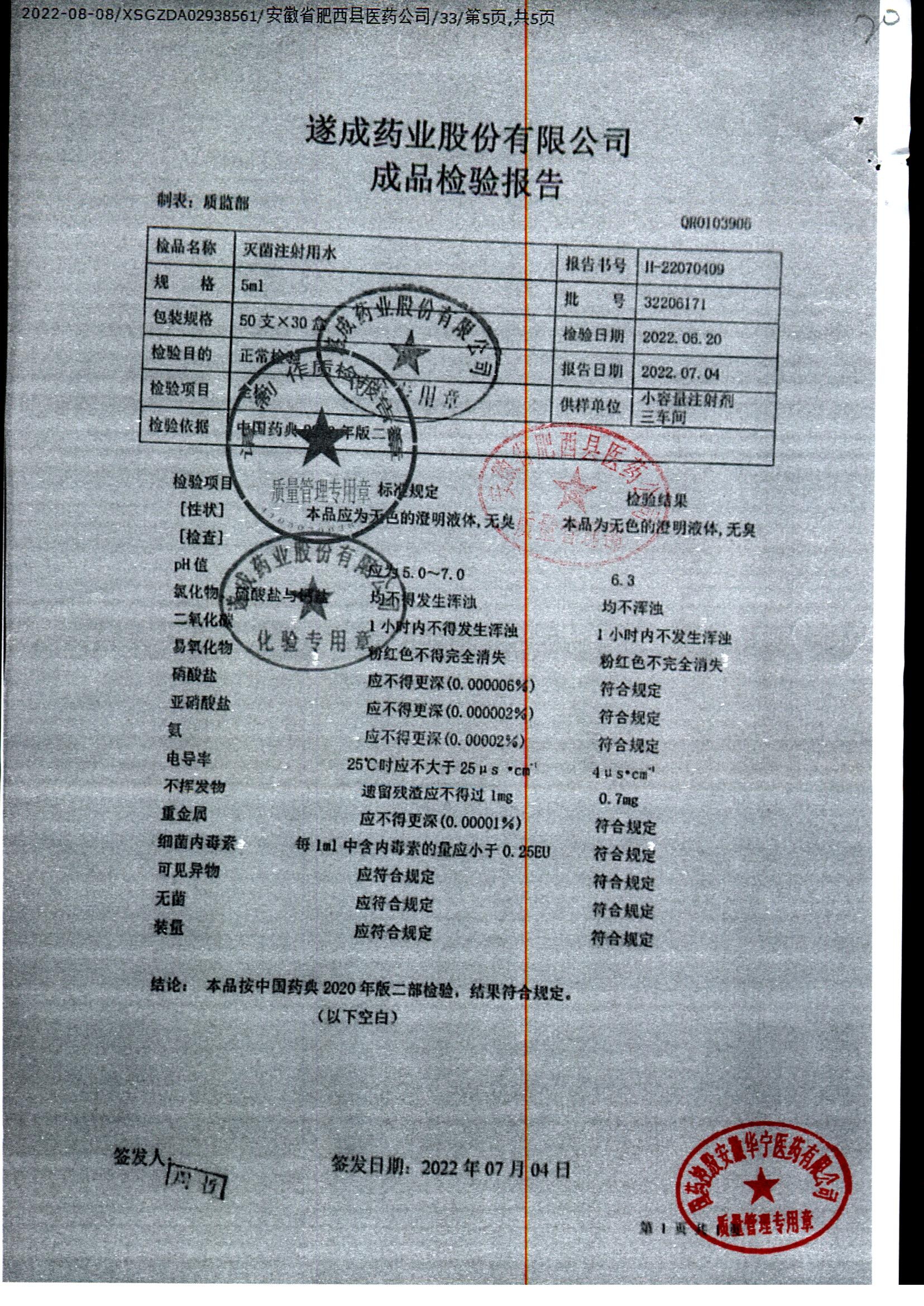 灭菌注射用水 | 5ml | 32206171 | 查看详情 |