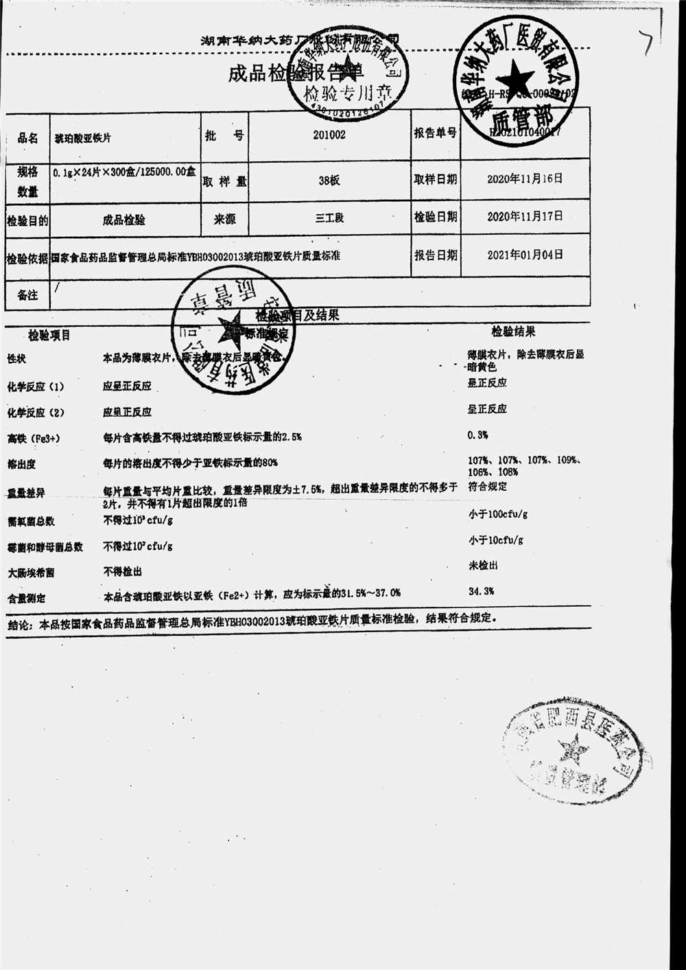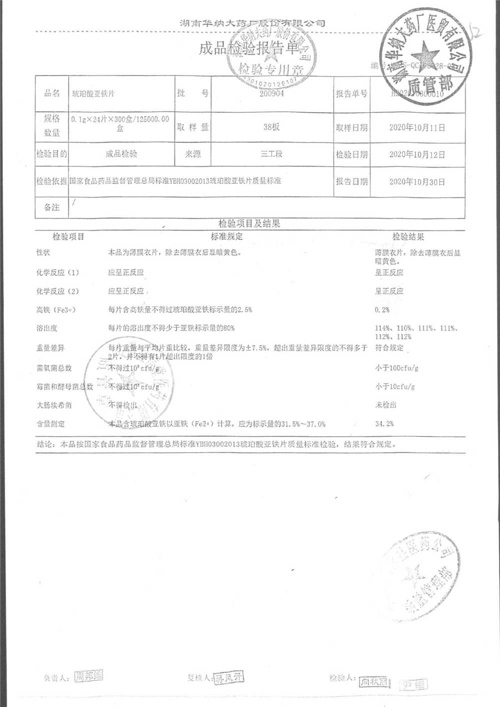 琥珀酸亚铁片 | 0.1g*24片 | 200904 | 查看详情 |