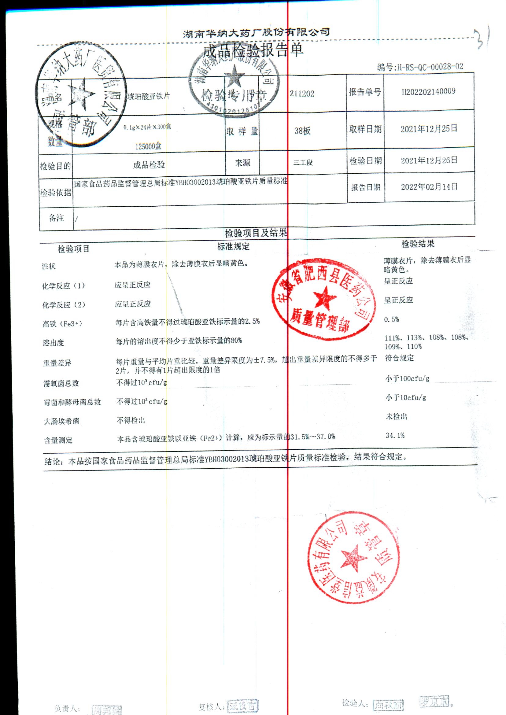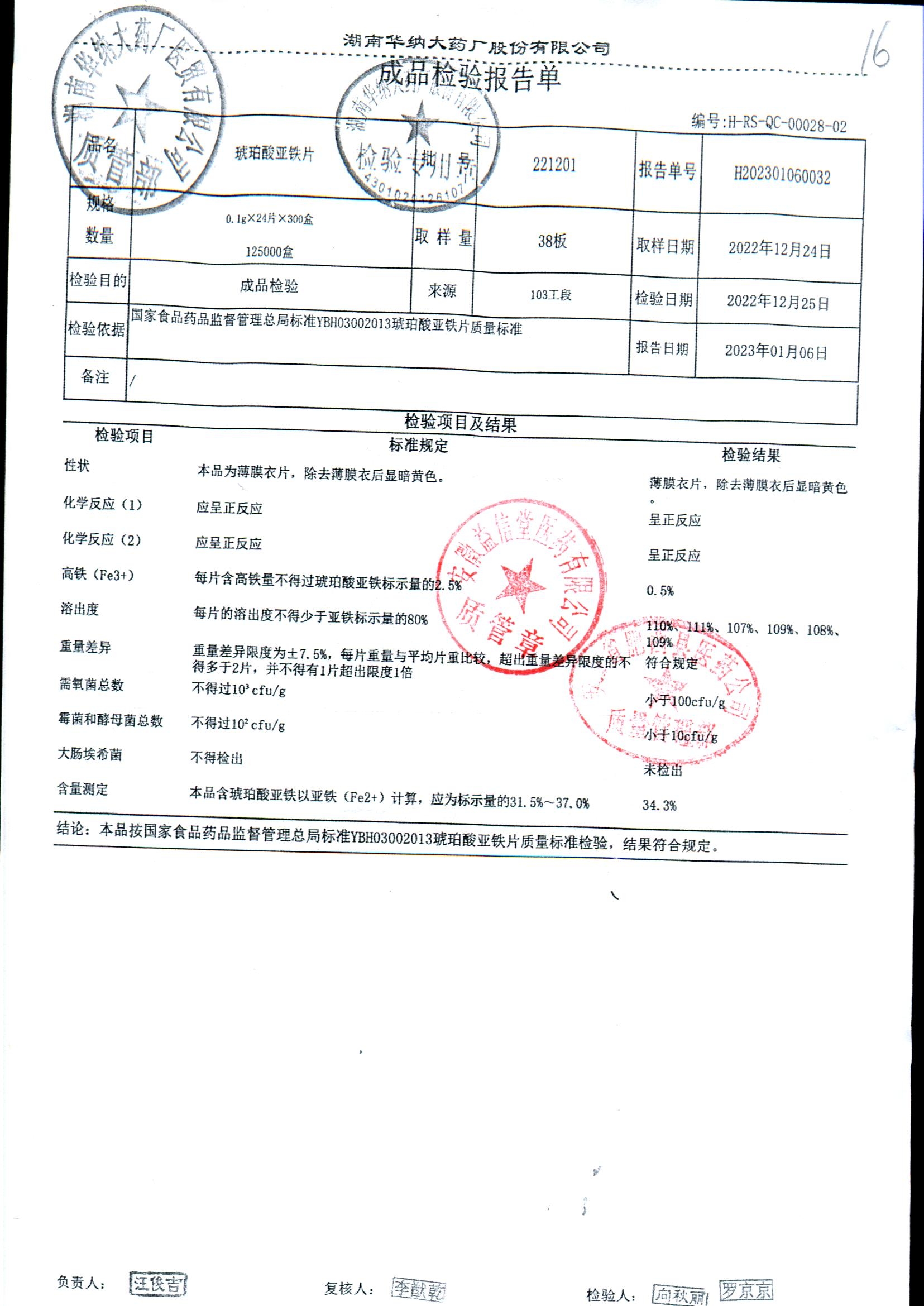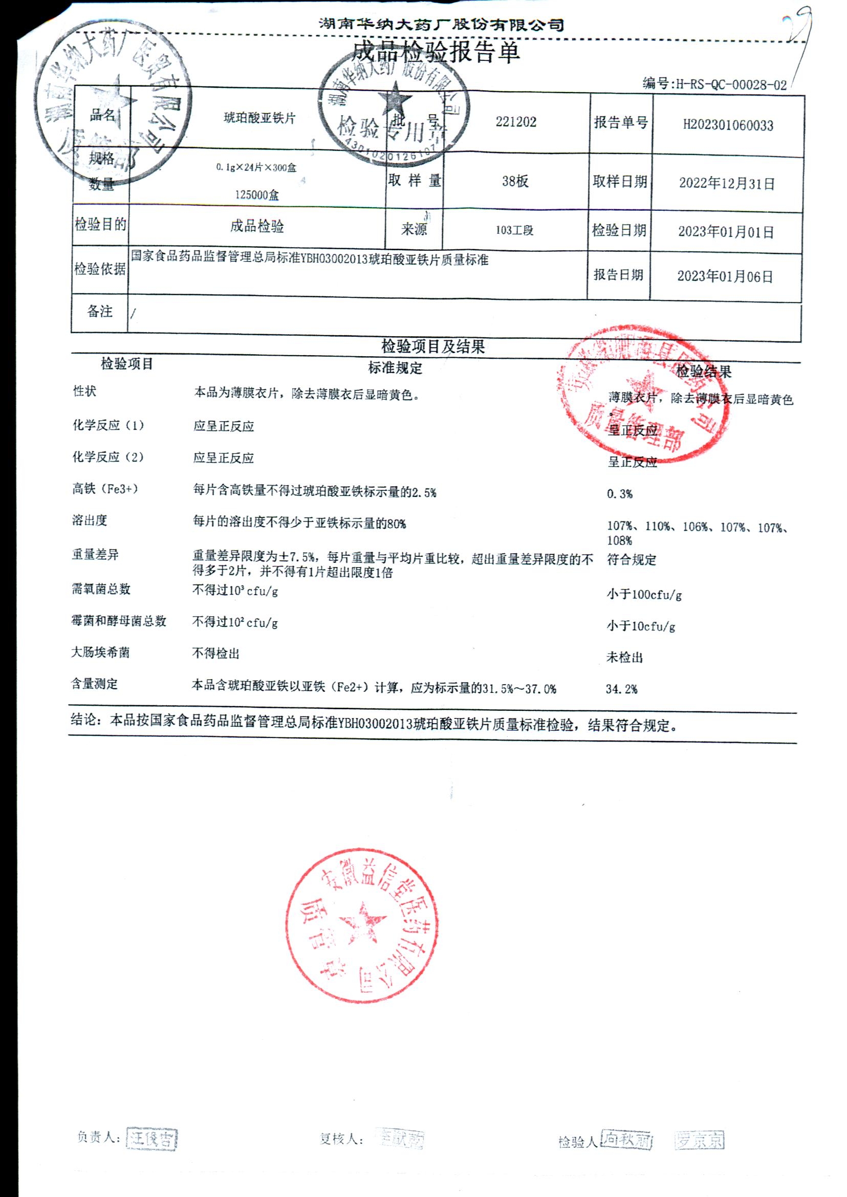 琥珀酸亚铁片 | 0.1g*24片 | 210201 | 查看详情 |